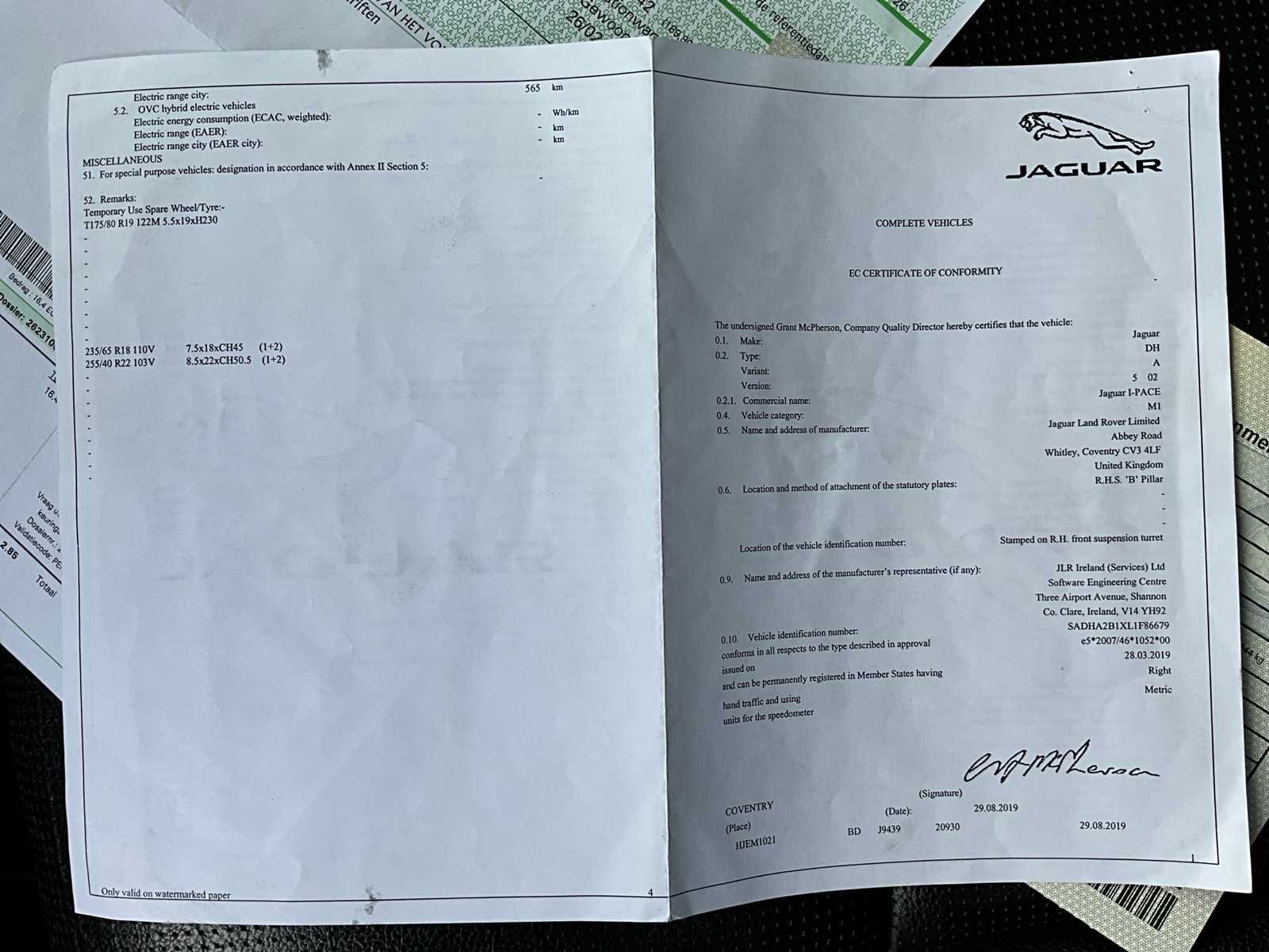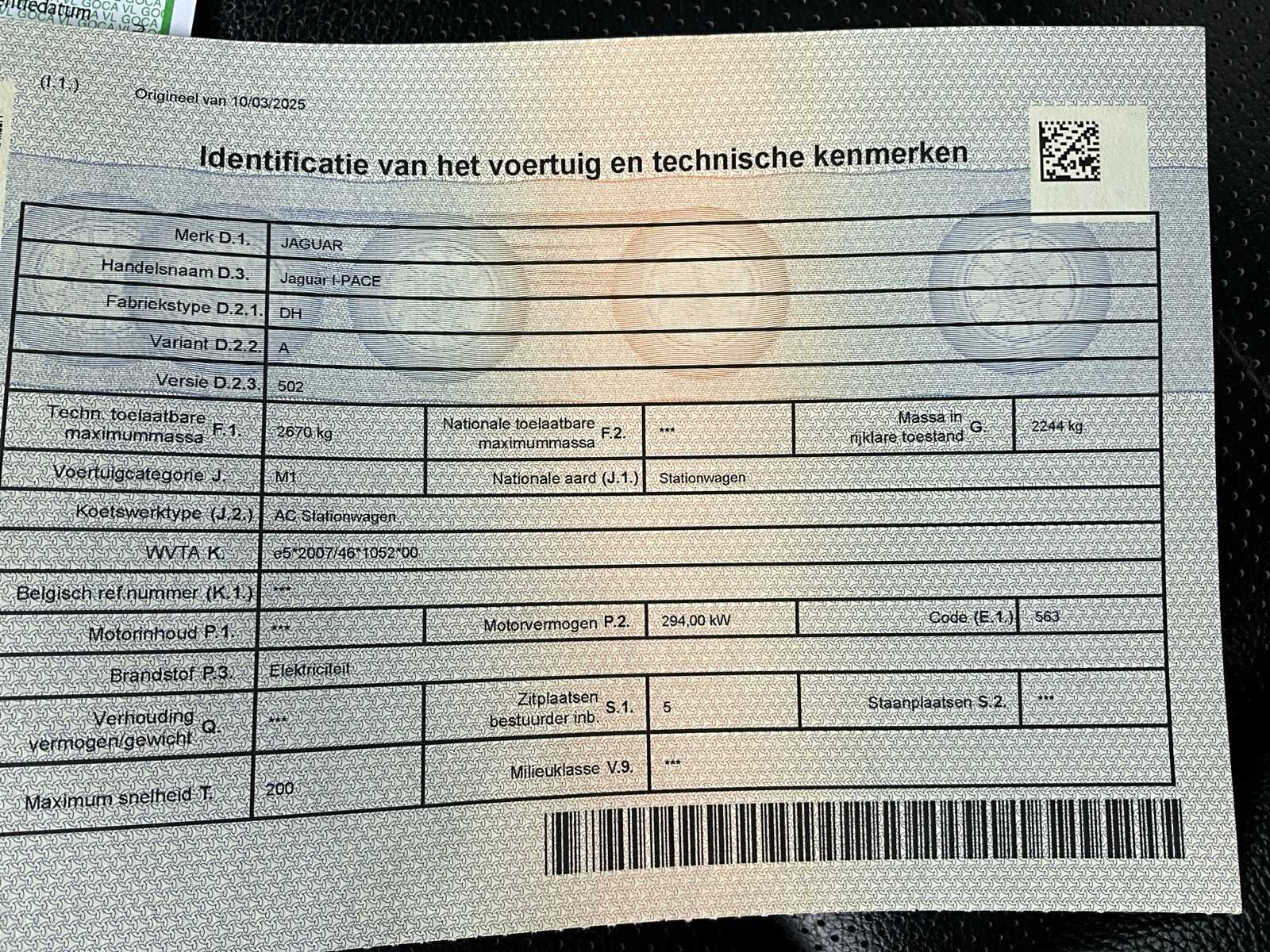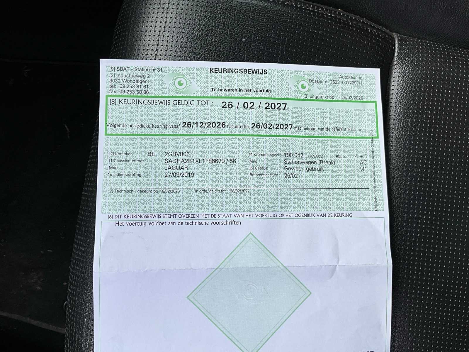 Net blanco groen gekeurd. Merk: Jaguar Model: EV400 I-pace Bouwjaar: 2019 Afgelezen kilometerstand: 190566km Vermogen (kW): 294kW Brandstof: elektrisch Chassisnummer: SADHA2B1XL1F86679 Datum eerste toelating: 27/09/2019 Transmissie: Automaat Aantal sleutels: 2 Nationaliteit documenten: Belgisch Start en rijdt: Ja startinformatie : Start en rijdt Inschrijvingsbewijs - deel 1 : Aanwezig Inschrijvingsbewijs - deel 2: Aanwezig