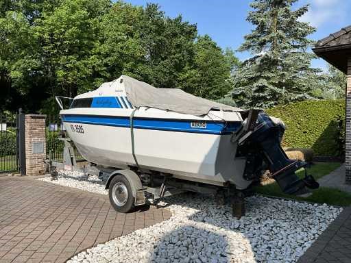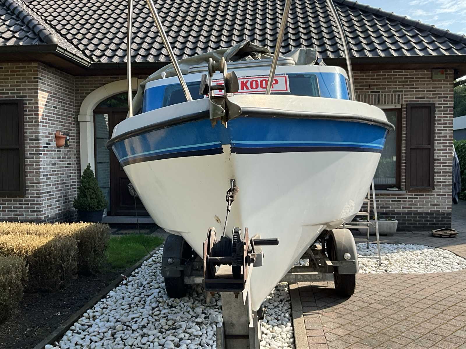 Bekro Triara motorboot uit 1991 Batterij niet aanwezig van de motor. Inclusief trailer. Met 3 benzinetanks erbij 60 pk. Boot 6 m. Boot + trailer 6,5 m. Inclusief compas,dieptemeter en fishfinder. Urenteller niet afleesbaar maar heel weinig gebruikt. Komt af van de eerste eigenaar. Merk: Bekro Type: Triara Rompmateriaal: Polyester Brandstof: Benzine Bouwjaar: 1991 Trailer merk + type: Louben 321 Lengte over alles: 650.00m Chassisnummer trailer: 4046
