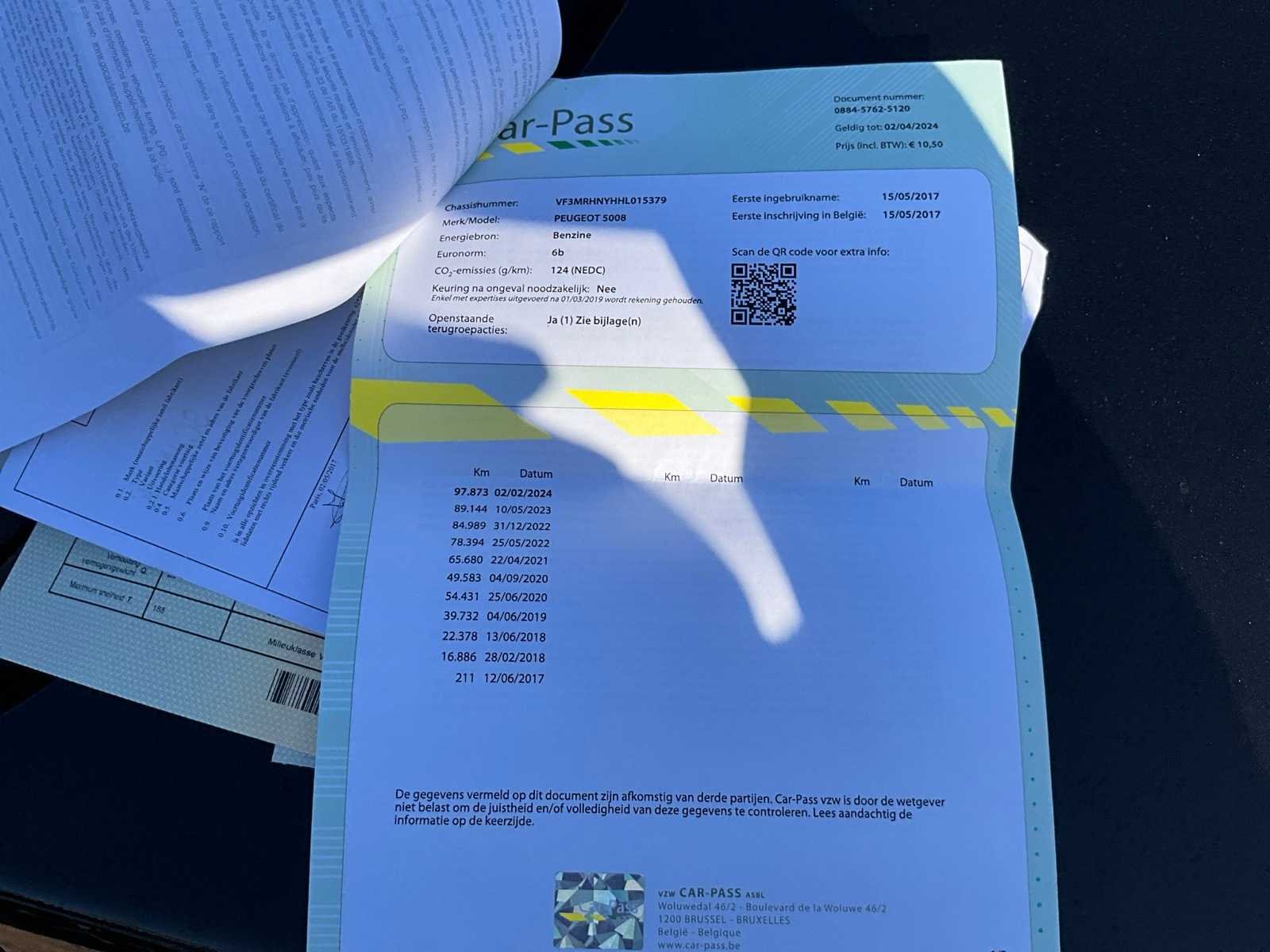 Merk: Peugeot Model: 5008 Bouwjaar: 2017 Afgelezen kilometerstand: 131344km Cilinderinhoud: 1199cc Vermogen (kW): 96kW Brandstof: Benzine Chassisnummer: VF3MRHNYHHL015379 Datum eerste toelating: 15/05/2017 Aantal zitplaatsen: 5 Transmissie: Automaat Emissieklasse: Euro 6b Aantal deuren: 5 Aantal sleutels: 2 Start en rijdt: Ja startinformatie : Start & rijdt Vavato voert geen technische keuring uit.: true Airconditioning: true Navigatie: true Inschrijvingsbewijs - deel 1 : Aanwezig Inschrijvingsbewijs - deel 2: Aanwezig
