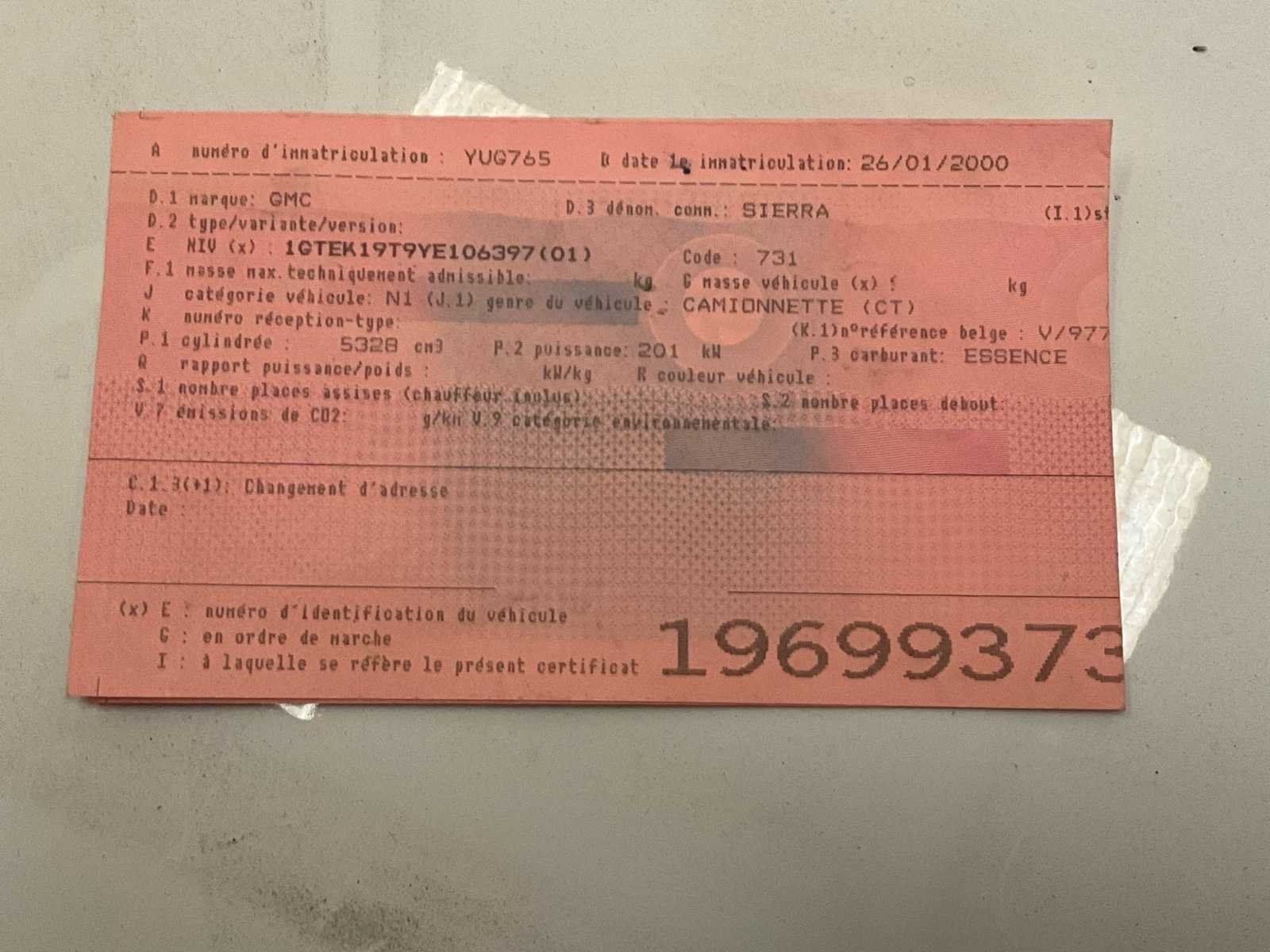 Documenten aanwezig Merk: GMC Type: Siërra Bouwjaar: 2000 Chassisnummer: 1GTEK19T9YE106397(01) Afgelezen kilometerstand: 210000 Brandstof: Benzine Aantal zitplaatsen: 5