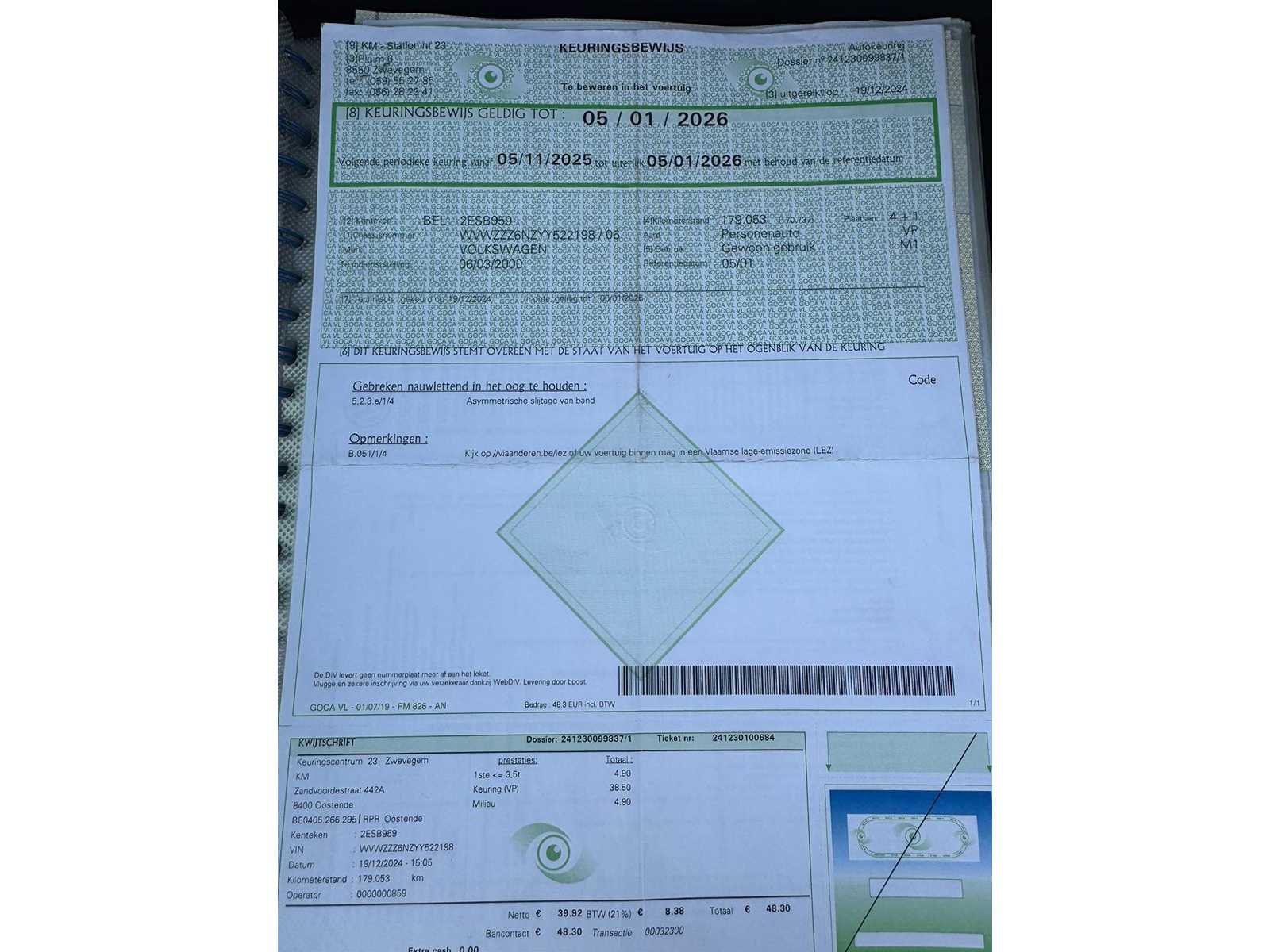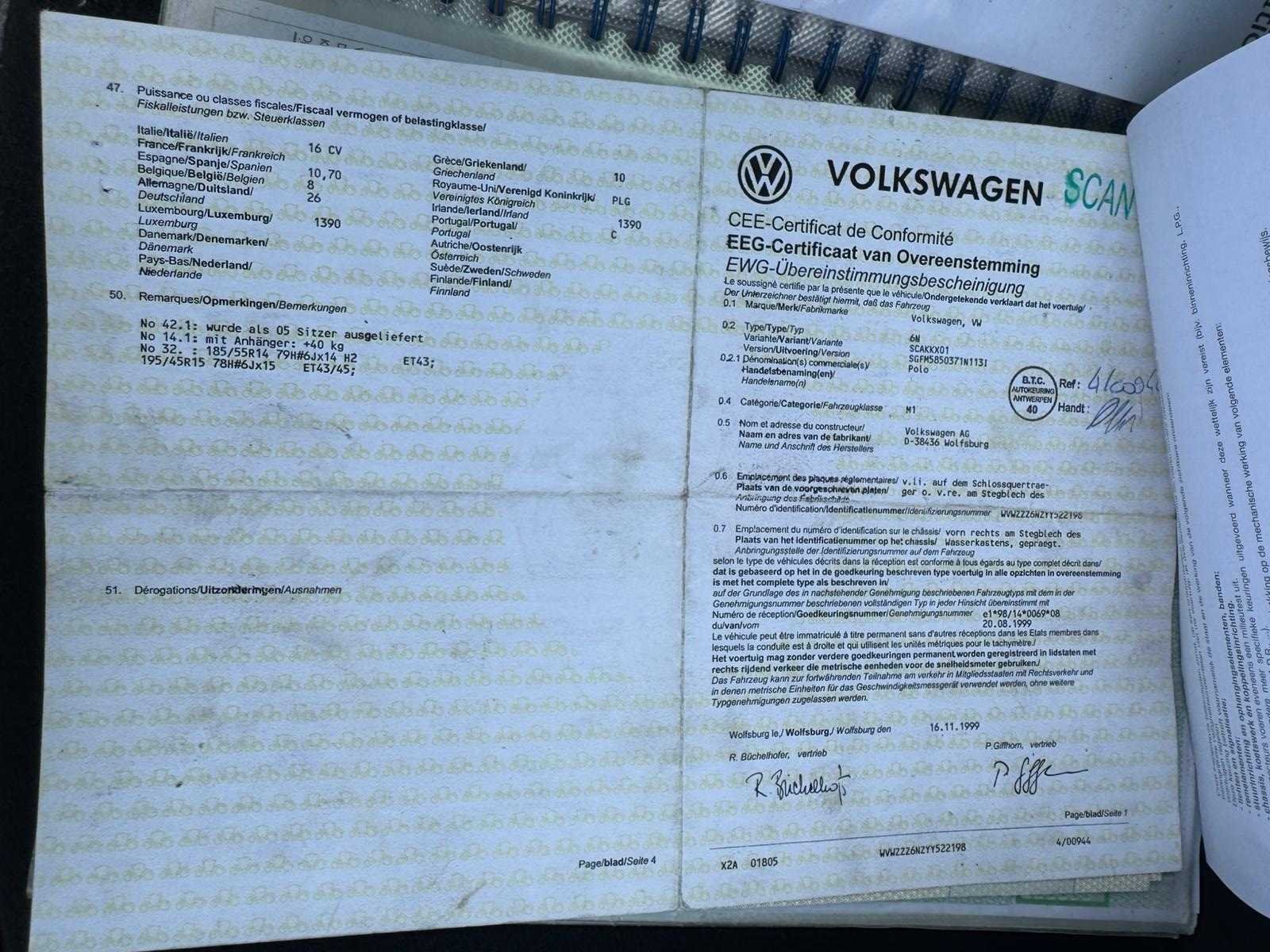 Start en rijd maar is werk aan de wagen. Knoppen zijn weg , versnellingen slepen soms door. Deur passagier gaat niet open van buitenkant, wel binnen kant Merk: Volkswagen Model: Polo Type: 6N Bouwjaar: 2000 Afgelezen kilometerstand: 179053km Cilinderinhoud: 1390cc Vermogen (kW): 44kW Brandstof: benzine Chassisnummer: WVWZZZ6NZY5522198 Datum eerste toelating: 06/03/2000 Vermogen (pk): 60hp Transmissie: manueel Emissieklasse: euro 3 Ledig gewicht: 980kg Nationaliteit documenten: BE CO2-uitstoot NEDC: 154 Gelijkvormigheidsattest aanwezig: true Start en rijdt: ja Keuringsrapport geldig tot: 05/01/2026 Vavato voert geen technische keuring uit.: true Inschrijvingsbewijs - deel 1 : ok Inschrijvingsbewijs - deel 2: ok