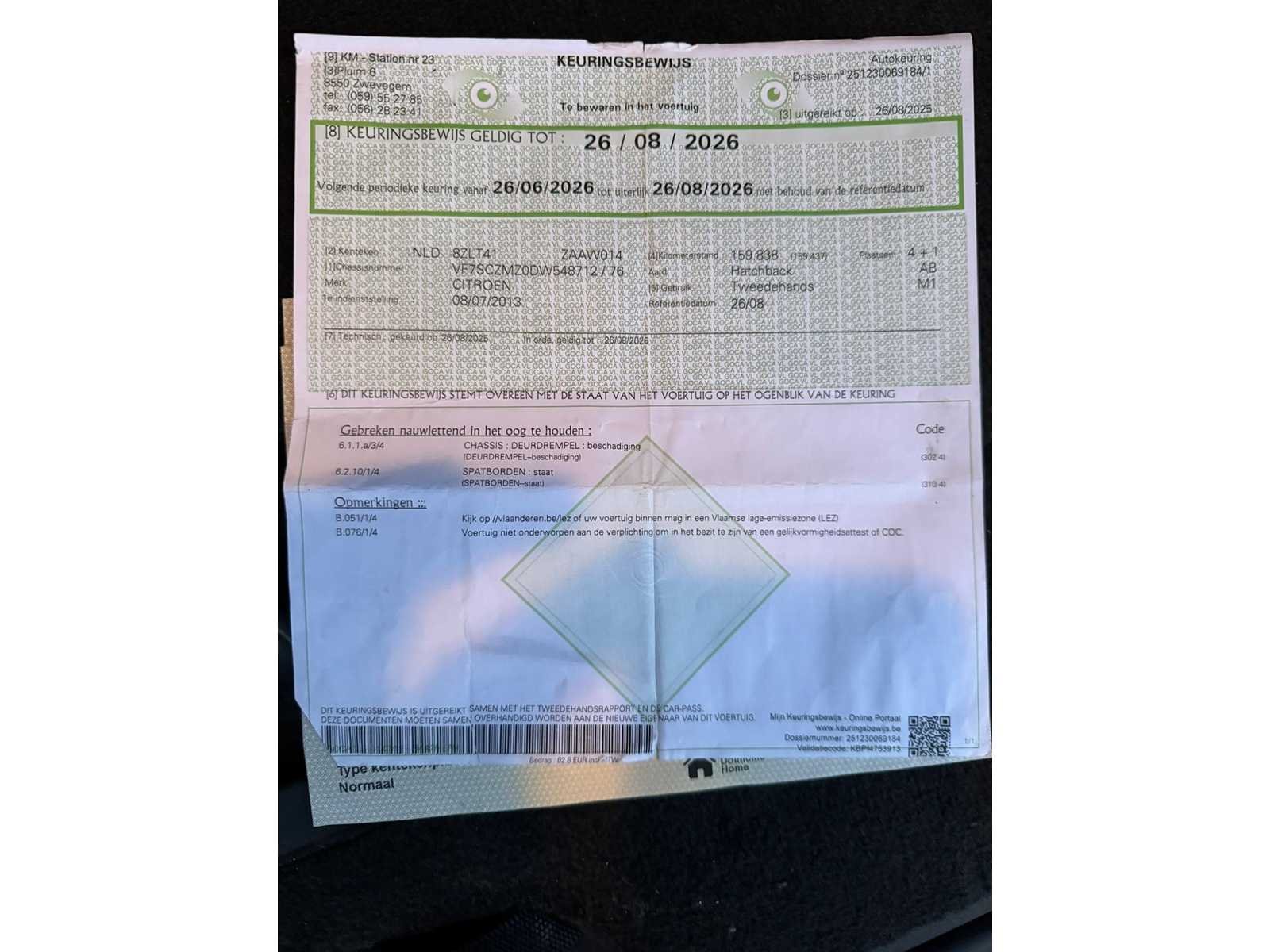 Start en rijd enkel bobijn na te zien want staat een tijdje stil ! Merk: Citroën Model: C3 Bouwjaar: 2013 Afgelezen kilometerstand: 178306km Cilinderinhoud: 999cc Vermogen (kW): 50kW Brandstof: Benzine Chassisnummer: VF7SCZMZ0DW548712 Laadvermogen: 380kg Datum eerste toelating: 08/07/2013 Vermogen (pk): 68hp Transmissie: Manueel Emissieklasse: euro 5B Aantal deuren: 5 Ledig gewicht: 1120kg Nationaliteit documenten: BE Start en rijdt: ja Keuringsrapport geldig tot: 26/08/2026 Vavato voert geen technische keuring uit.: true Inschrijvingsbewijs - deel 1 : ok Inschrijvingsbewijs - deel 2: ok