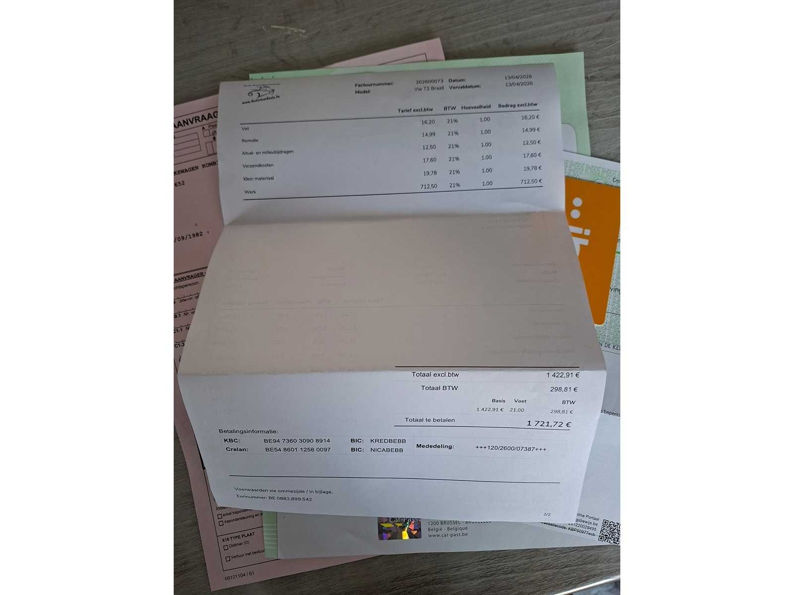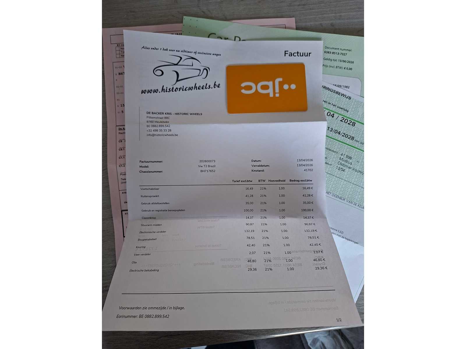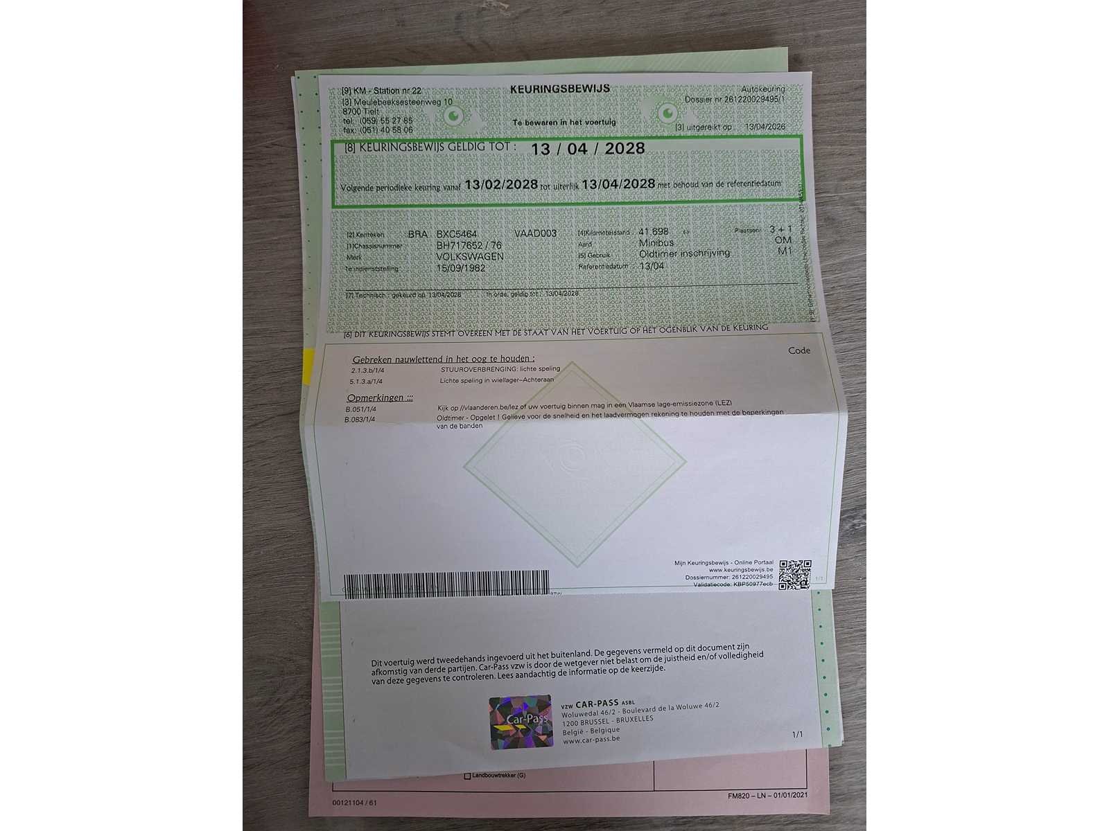 VOLKSWAGEN T2 CAMPER -SLAAPBED -POP OUT ROOF VOOR MEER RUIMTE -DAKREKJES -TECHNISCH NAGEZIEN EN GEKEURD FACTUUR AANWEZIG (veel vernieuwd en nagezien) -GEKEURD OLDTIMER VOOR VERKOOP KLAAR VOOR BELGISCHE INSCHRIJVING! -VOOR BUITENLANDSE KOPERS KAN BELGISCH INSCHRIJVINGSBEWIJS VOORZIEN WORDEN OM INSCHRIJVING IN BUITENLAND MAKKELIJKER TE LATEN VERLOPEN. Merk: VOLKSWAGEN Type: T2 CAMPER OLDTIMER Bouwjaar: 1982 Chassisnummer: BH717652 Afgelezen kilometerstand: 41701 Brandstof: BENZINE Datum eerste inschrijving: 15/09/1982 Boorddocumenten aanwezig?: true Nationaliteit documenten: BELGISCHE Kentekenpapieren compleet?: true Carrosserie: CAMPER Aandrijving: ACHTER Transmissie: MANUEEL Aantal deuren: 4 Aantal zitplaatsen: 4 Aantal sleutels: 2 Startinformatie: JA Kleur: beige Cilinderinhoud: 1500 Inschrijvingsbewijs - deel 1 : AANWEZIG Inschrijvingsbewijs - deel 2: AANWEZIG