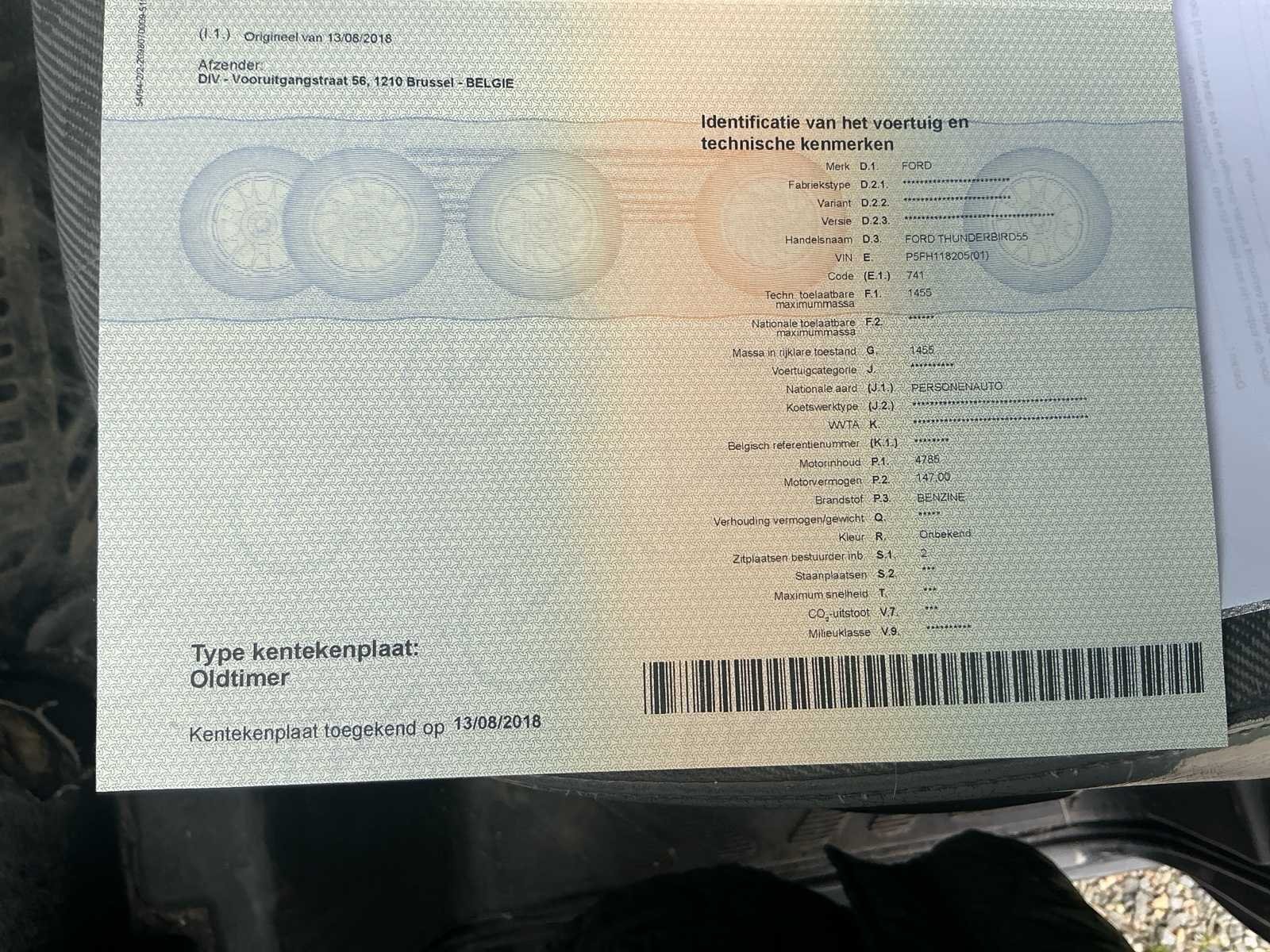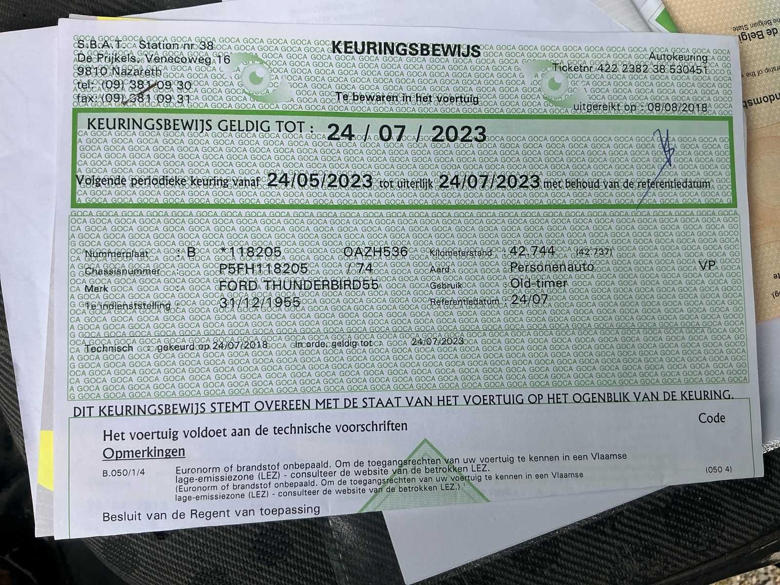 Ophaallocatie is te Wortegem-Petegem ! Kenteken: OAZL093 Merk: 1955 Ford Type: Thunderbird 55 Bouwjaar: 1955 Chassisnummer: P5FH118205 Brandstof: Benzine Datum eerste inschrijving: 31/12/1955 Boorddocumenten aanwezig?: true Kentekenpapieren compleet?: true Vermogen (kW): 147kW Aantal deuren: 2 Aantal zitplaatsen: 2 Startinformatie: Start en rijdt Cilinderinhoud: 4785 Inschrijvingsbewijs - deel 1 : Aanwezig Inschrijvingsbewijs - deel 2: Aanwezig