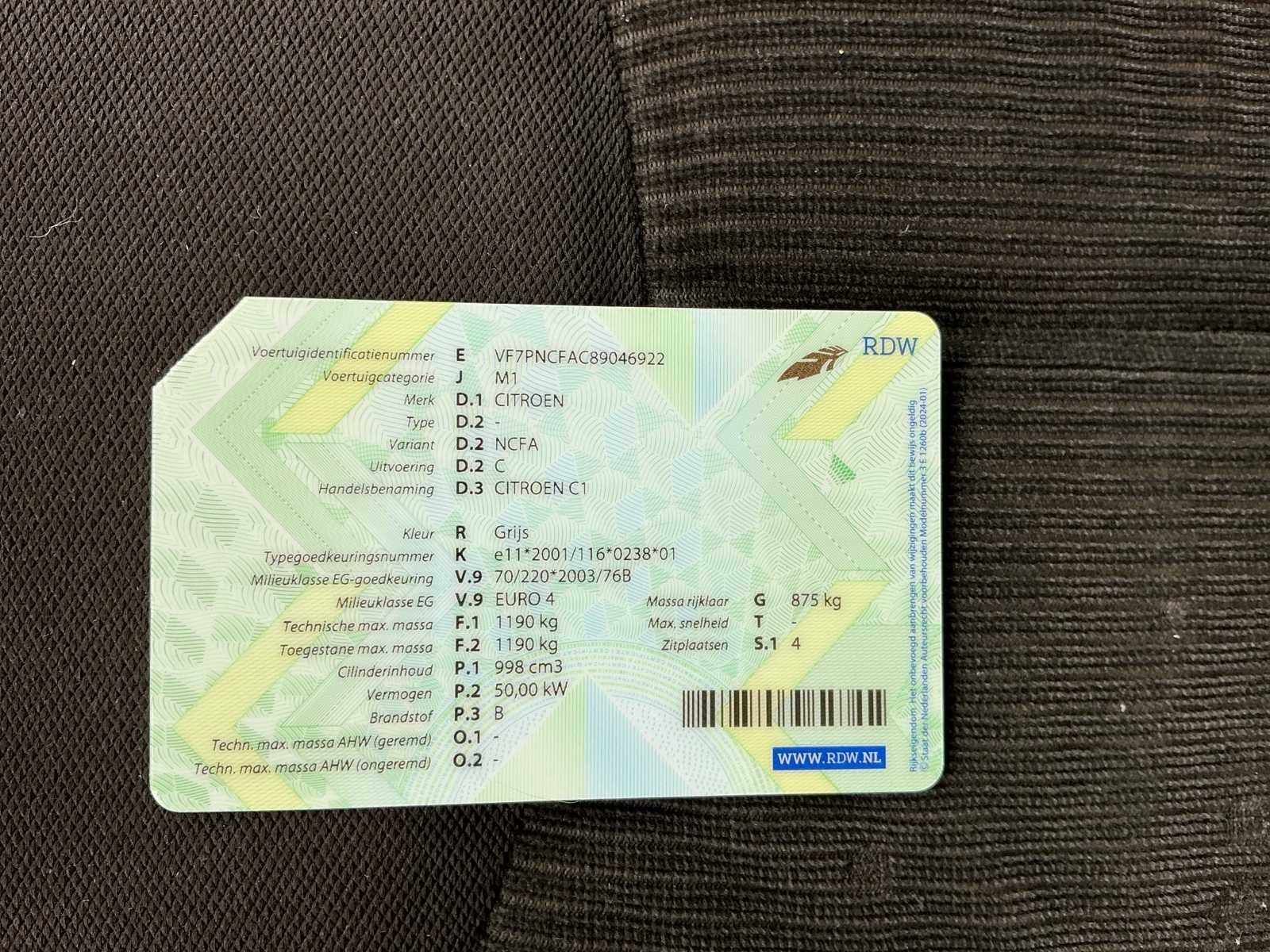 Citroen C1 Airco Elektrischramen Barst in voorruit - passagierskant Merk: Citroen Model: C1 Bouwjaar: 2006 Afgelezen kilometerstand: 181850km Cilinderinhoud: 998cc Vermogen (kW): 50kW Brandstof: Benzine Chassisnummer: VF7PNCFAC89046922 Datum eerste toelating: 7/4/2006 Datum eerste toelating (NL): 7/4/2006 APK vervaldatum: 26/09/2026 Aantal zitplaatsen: 5 Kleur: Grijs Aantal deuren: 5 Aantal sleutels: 1 Nationaliteit documenten: Nederlands Start en rijdt: Ja Andere boorddocumenten: E705 Self drive export possible : true Vavato voert geen technische keuring uit.: true Airconditioning: true Inschrijvingsbewijs - deel 1 : Ja Inschrijvingsbewijs - deel 2: Ja