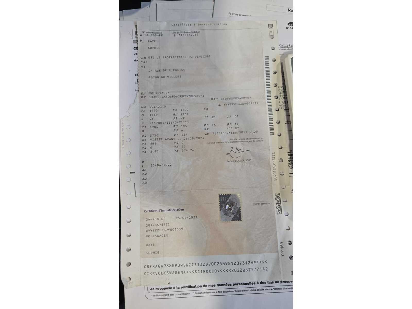 **VOLKSWAGEN SCIROCCO R – 2,0 TFSI – 265 pk – DSG – 2012** Volkswagen-merk, Scirocco R-model, uitgerust met een 2,0 TFSI benzinemotor van 195 kW (265 pk), met automatische versnellingsbak (DSG) en 4Motion vierwielaandrijving. Eerste registratie op de weg: 31/07/2012 Kilometerstand: 208.715 km Chassisnummer (VIN): WVWZZZ13ZDV002539 Voertuigregistratie: Frans Aantal toetsen: 1 --- ### Algemene staat **Lichaam :** Krassen, stoten en stoten zijn zichtbaar op verschillende elementen. Depressie met lakdefect op de rechterachterspatbord. Algemene slijtage past bij de kilometerstand. **Interieur :** Zeer vies interieur. Versleten bekleding met flinke scheuren op de bestuurdersstoel. Sporen van vocht en vuil. **Zichtbare apparatuur (niet getest) :** R sportstoelen, multifunctioneel stuurwiel, automatische klimaatregeling, multimediasysteem, achteruitrijradar, lichtmetalen velgen. --- ### Technische informatie * Brandstof: Benzine * Cilinderinhoud: 1984 cm³ * Vermogen: 195 kW (265 pk) * Transmissie: 4Motion * Versnellingsbak: Automatisch. --- ### Observaties Ideaal voor een professional of ervaren persoon. Herstel- of doorverkoopproject. Non Merk: Volkswagen Model: SCIROCCO R Type: 2.0 TFSI Bouwjaar: 2012 Afgelezen kilometerstand: 208720km Cilinderinhoud: 1984cc Vermogen (kW): 195kW Brandstof: Benzine Chassisnummer: WVWZZZ13ZDV002539 Datum eerste toelating: 2012 Vermogen (pk): 265hp Aandrijving: Links Aantal zitplaatsen: 5 Kleur: Grijs Transmissie: Automaat Aantal sleutels: 1 Nationaliteit documenten: Engels Gelijkvormigheidsattest aanwezig: true Vavato voert geen technische keuring uit.: true Airconditioning: true