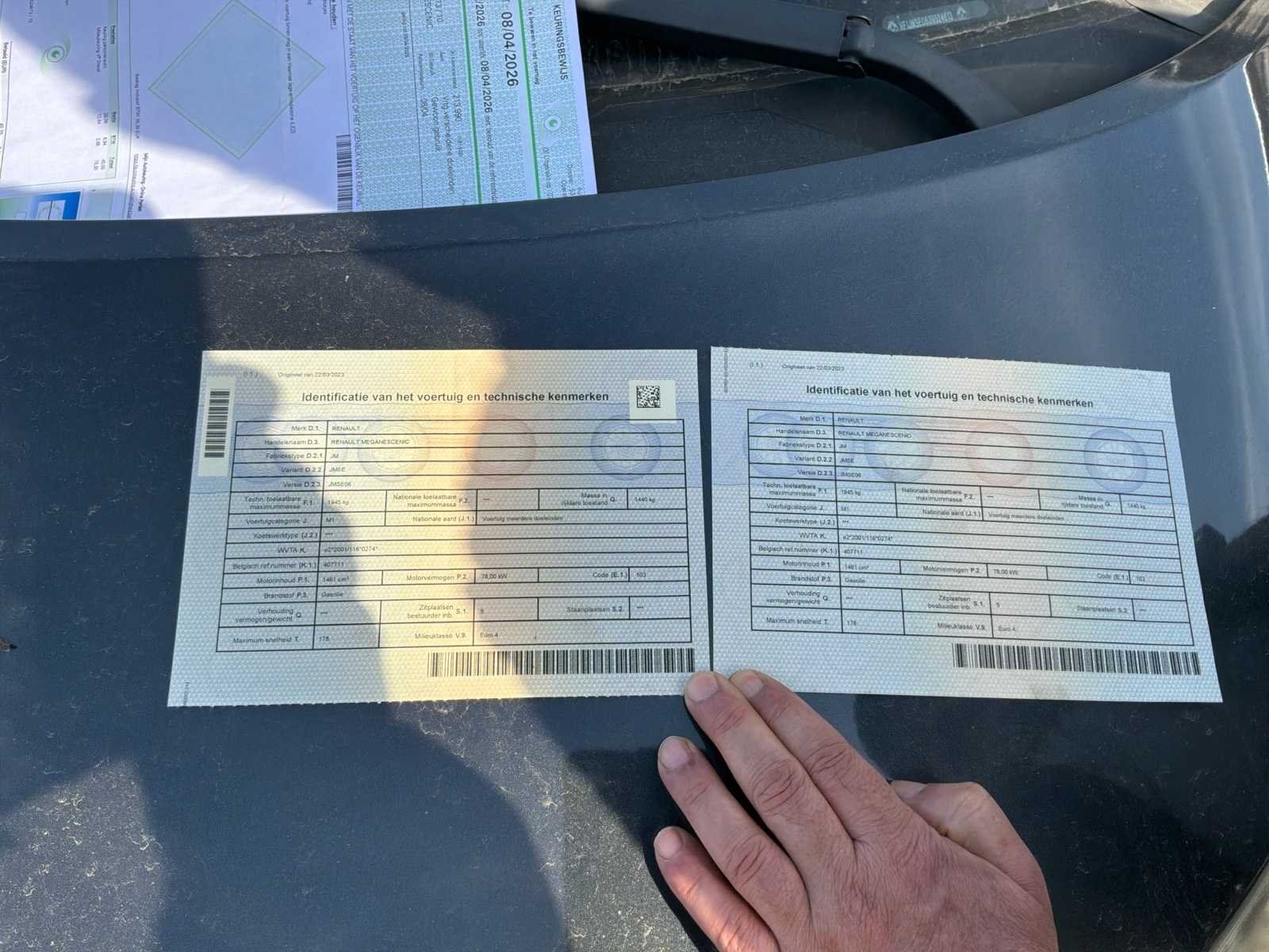 Merk: Renault Model: Mégane Type: Scenic Bouwjaar: 2008 Afgelezen kilometerstand: 229980km Cilinderinhoud: 1945cc Vermogen (kW): 1945kW Brandstof: Diesel Chassisnummer: VF1JMSE0639524613 Datum eerste toelating: 08/04/2008 APK vervaldatum: 08/04/08 Energielabel: Euro 4 Aantal zitplaatsen: 5 Kleur: Zwart Transmissie: Handboek Stuurwiel: Links Aantal deuren: 5 Nationaliteit documenten: België Gelijkvormigheidsattest aanwezig: true Carpass: true Vavato voert geen technische keuring uit.: true Airconditioning: true Inschrijvingsbewijs - deel 1 : Oké Inschrijvingsbewijs - deel 2: Oké