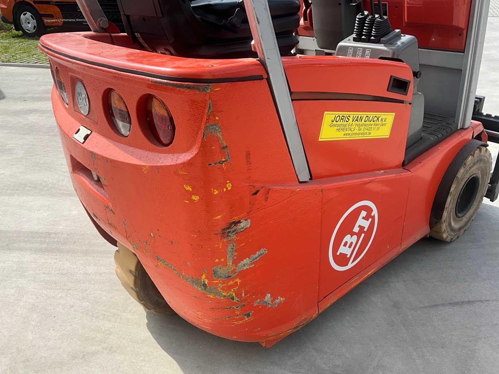Afgelezen tellerstand: 2762h, Max cap: 1250kg, max hoogte 4500mm, Compleet met lader Belatron 24V-65A, Zonder sleutel Merk: BT Type: C3E130R Bouwjaar: 2007 Brandstof: Elektrisch Mast: Triple Soort band: Volrubber banden Aantal wielen: 3 Afgelezen urenstand: 2762 Accu lader: true Side-shift: true Triple mast: true Hefvermogen: 1250kg Max. hefhoogte: 4500mm Vol rubber banden: true Minimale doorrijhoogte: 2050mm