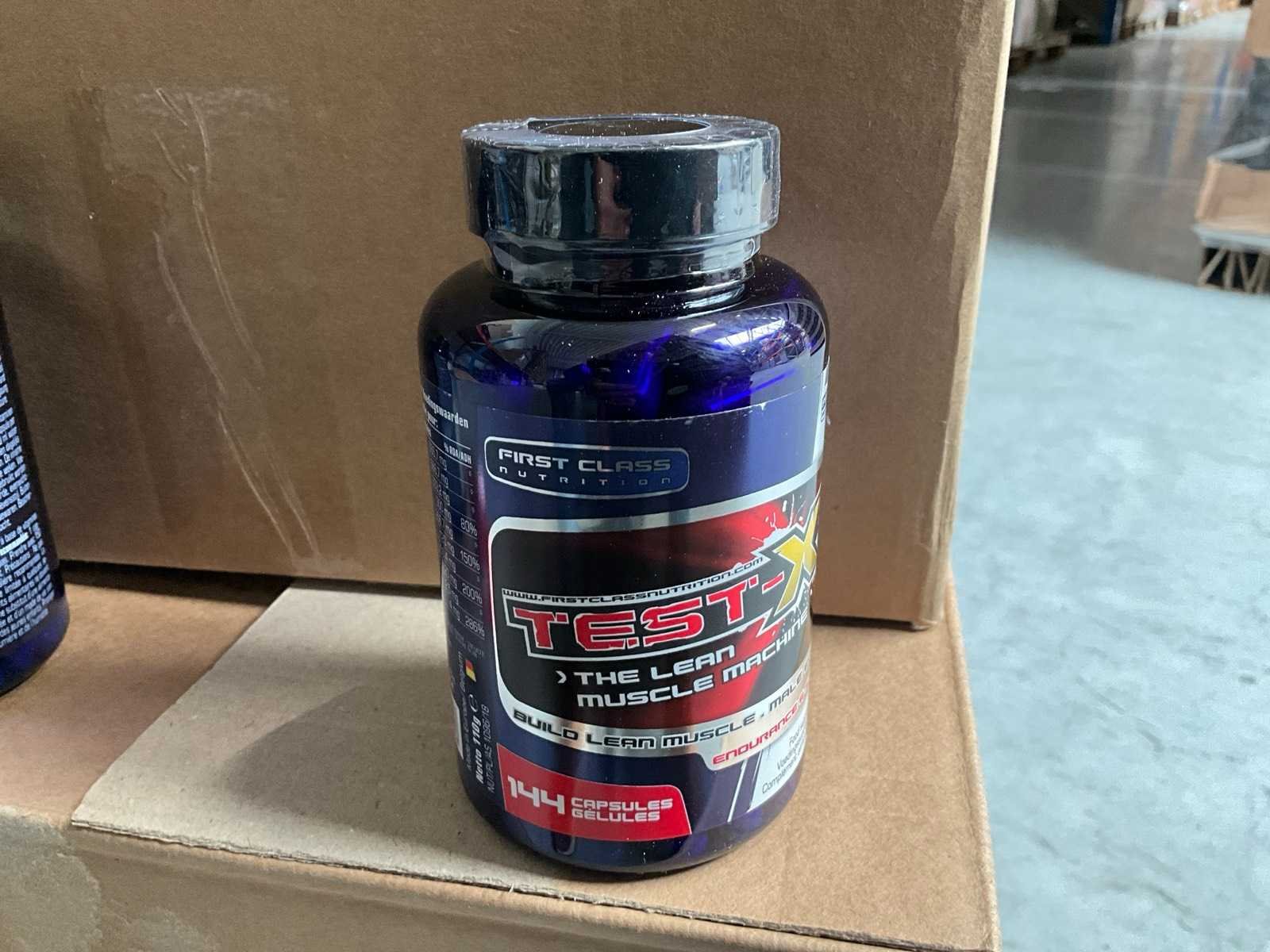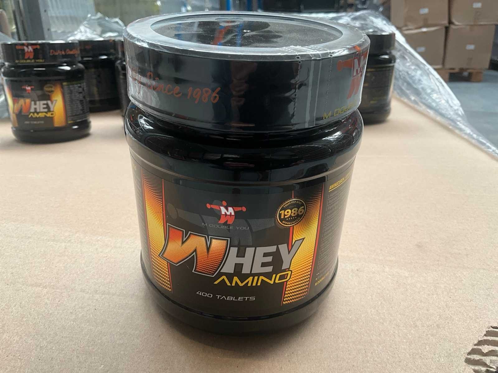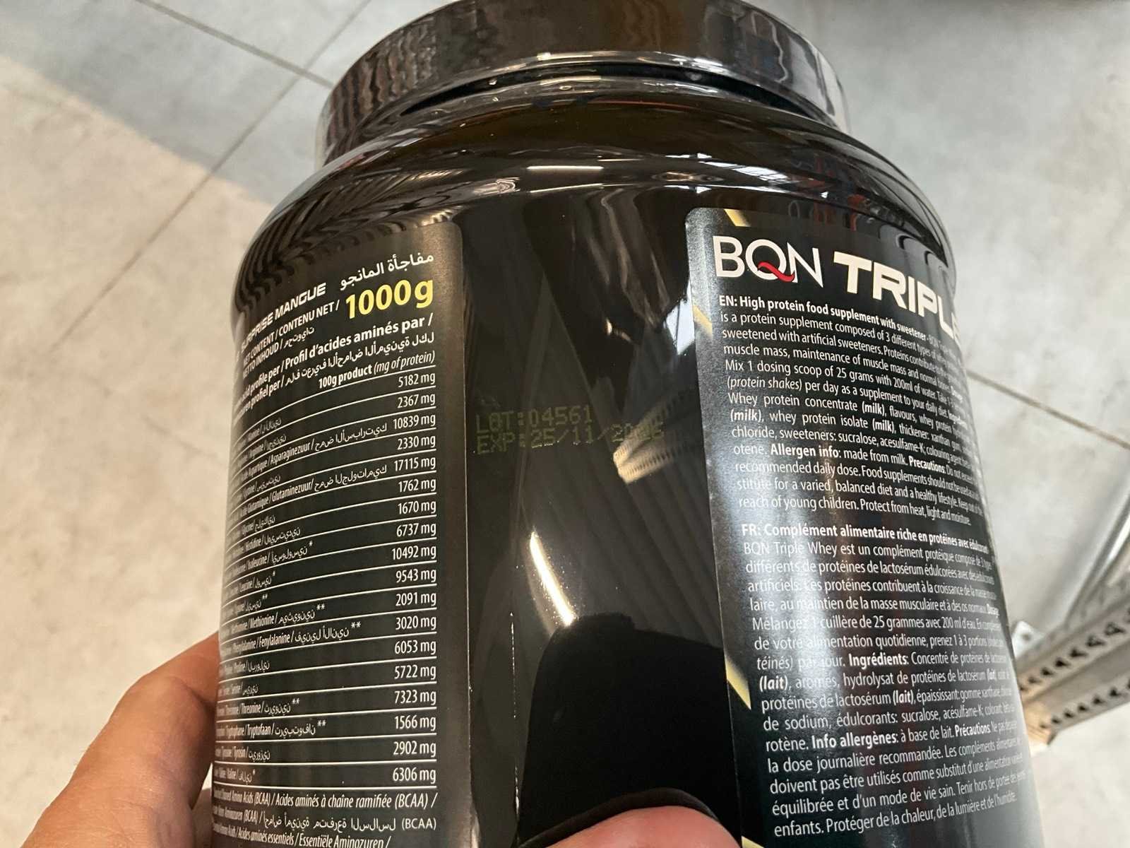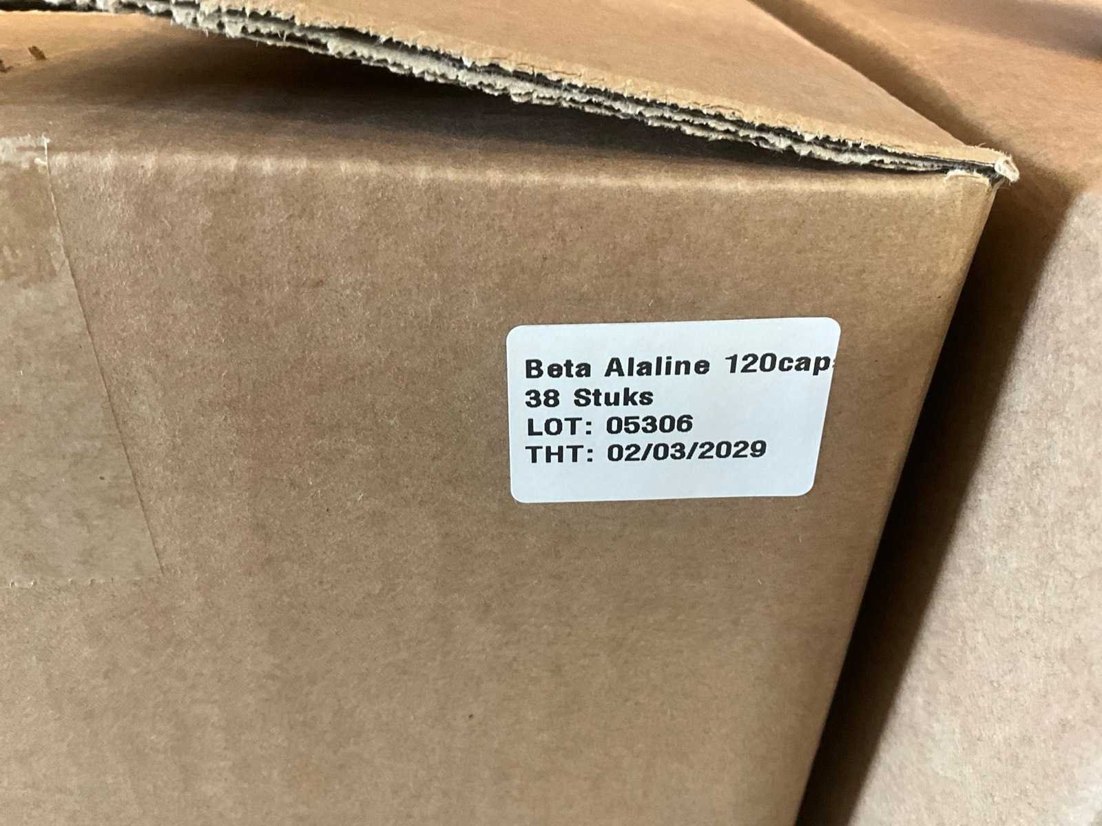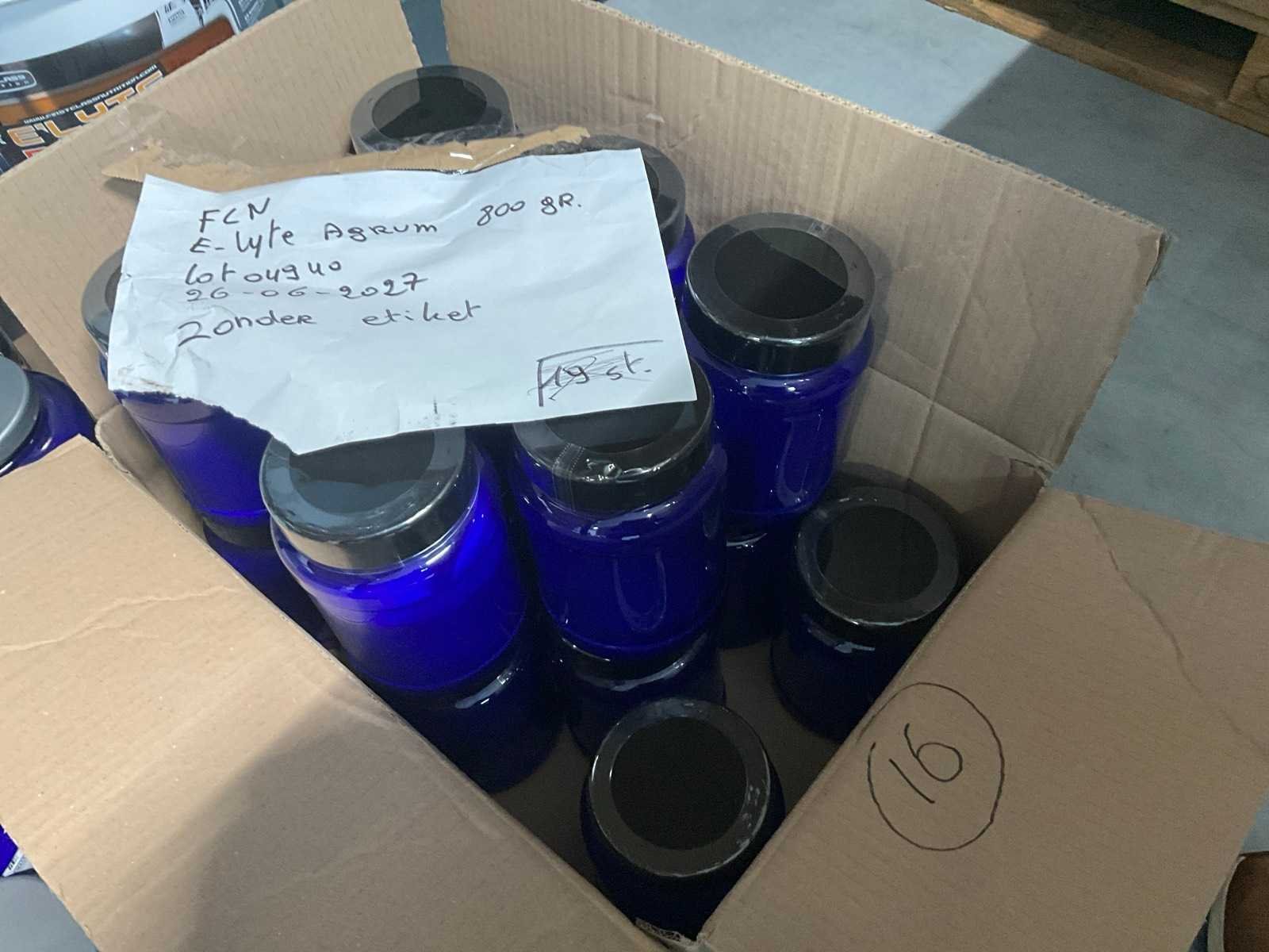 Circa 190 stuks, waaronder: 34x BQN Triple Whey 1000g cookies & cream 86x BQN Triple Whey 1000g strawberry 90x BQN Triple Whey 1000g vanilla 39x BQN Triple Whey 1000g mango surprise 50x First Class Nutrition 900g chocolate 18x First Class Nutrition 2000g chocolate 113x BQN Triple Whey 1000g chocolate 45x M Double You 360g Glutamine powder 23x diverse WCUP sports drinks 19x First Class Nutrition Elyte Drink 2000g 16x First Class Nutrition Elyte Drink 800g zonder etiket 37x First Class Nutrition Test-X 144 capsules 30x First Class Nutrition Premium Multivit 60 capsules 6x 12x 40ml diverse WCUP gels 3x 12 electrolyte tablets ( 12stuks ) waaronder 1 aangesproken 1x 20 x 30g WCUP sport nougat 7x First Class Nutrition Elyte Drink 5kg 207 x Bèta Alaline 120 caps 109x M Double You Whey Amino 400 tablets Liggende op 10 pallets Gewicht: 1000g