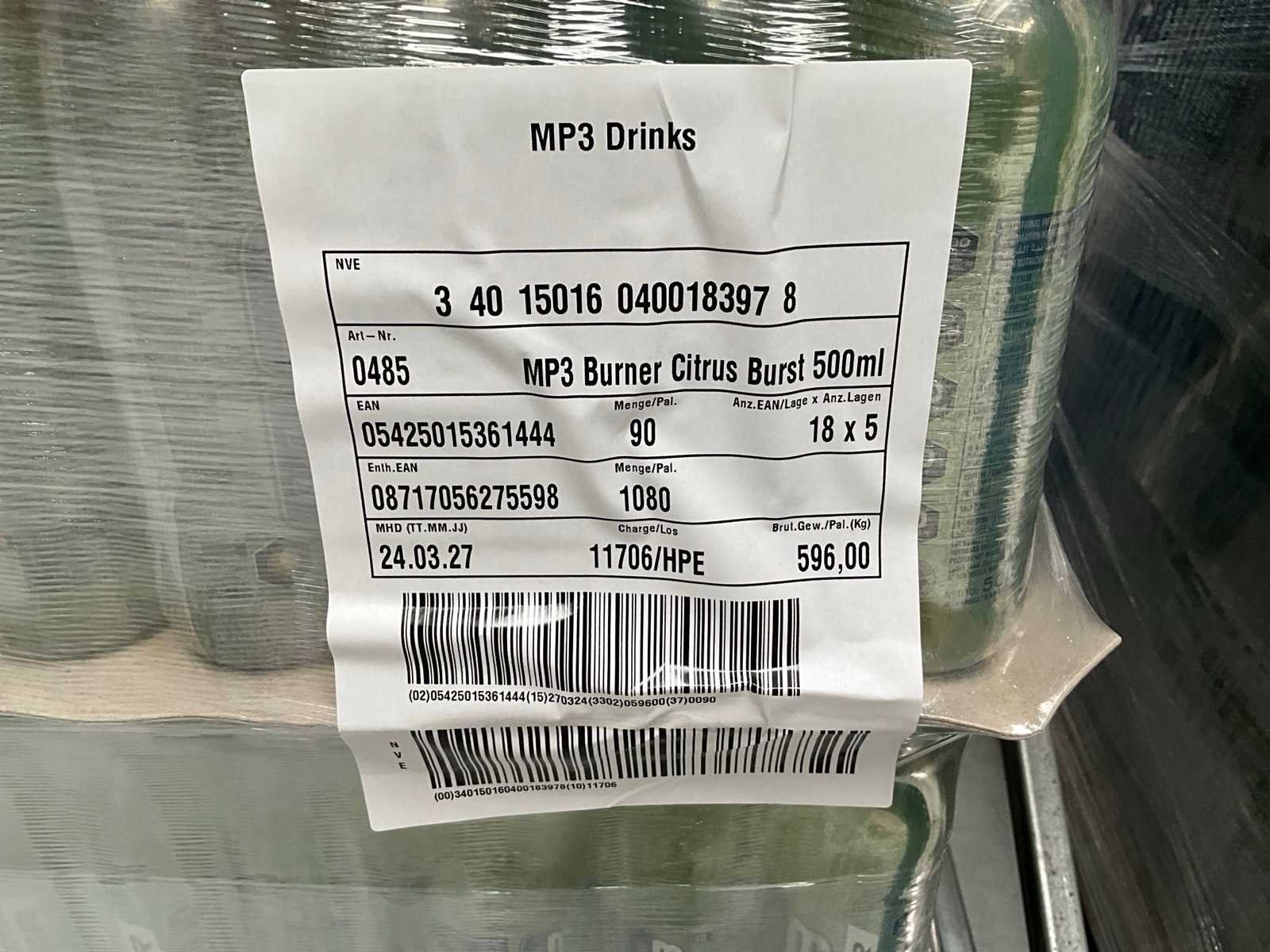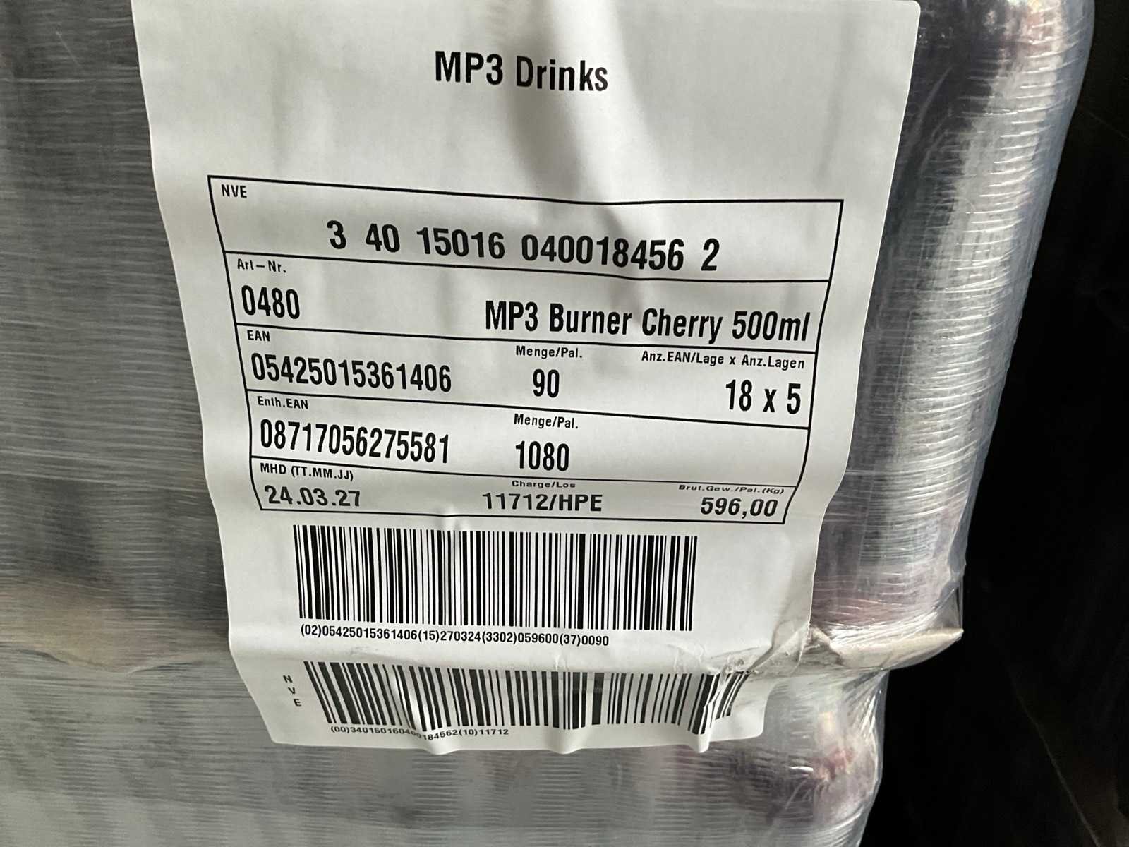 Bestaande uit: 5184x Burner Citrus 5184x Bunner Wild Cherry Liggende op 19 pallets Merk: MP3 Drinks