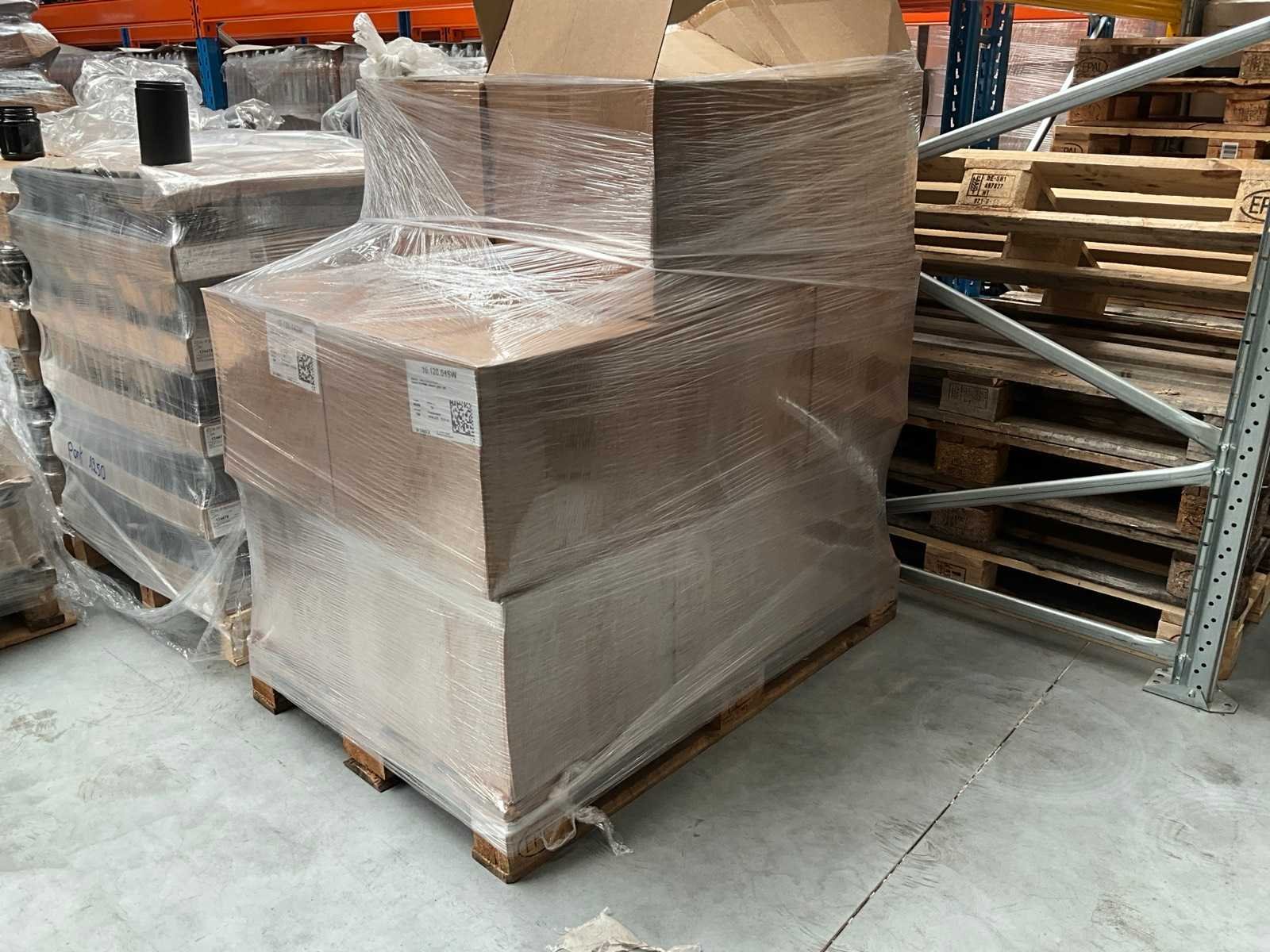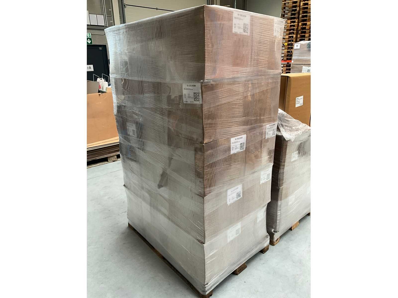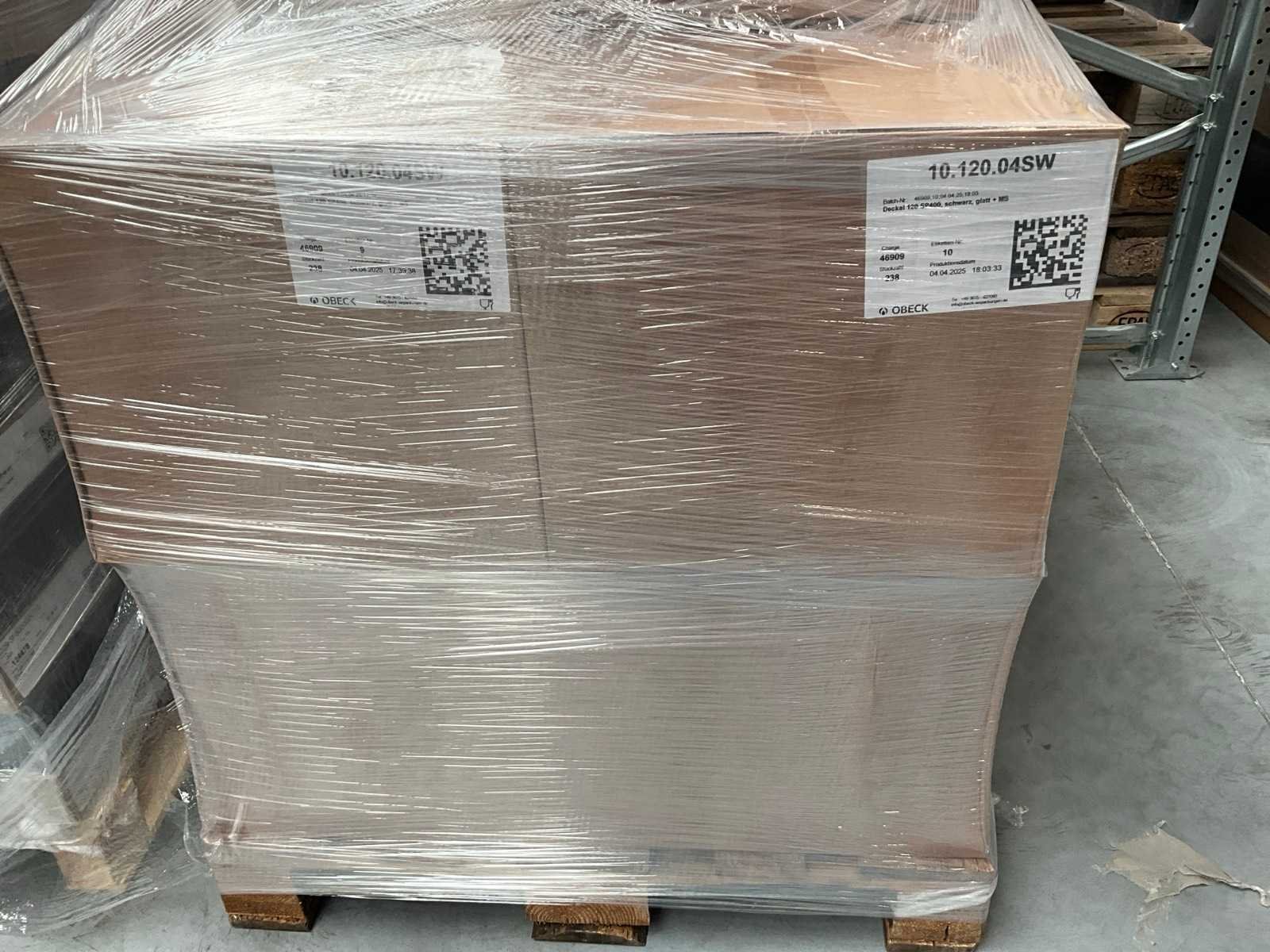 Liggende in 23 omdozen op 2 pallets, waarvan 1 doos aangesproken. Merk: Obeck Model: 10.120.04SW Product type: Deckel 120 SP400 Kleur: Zwart