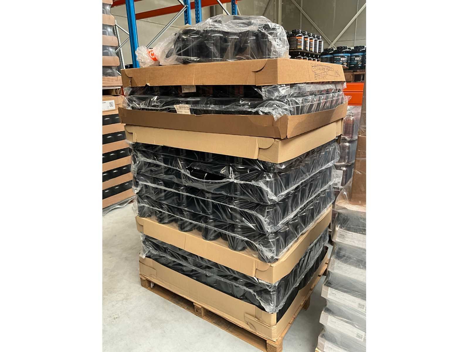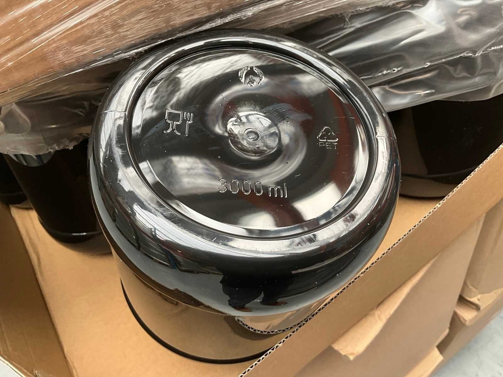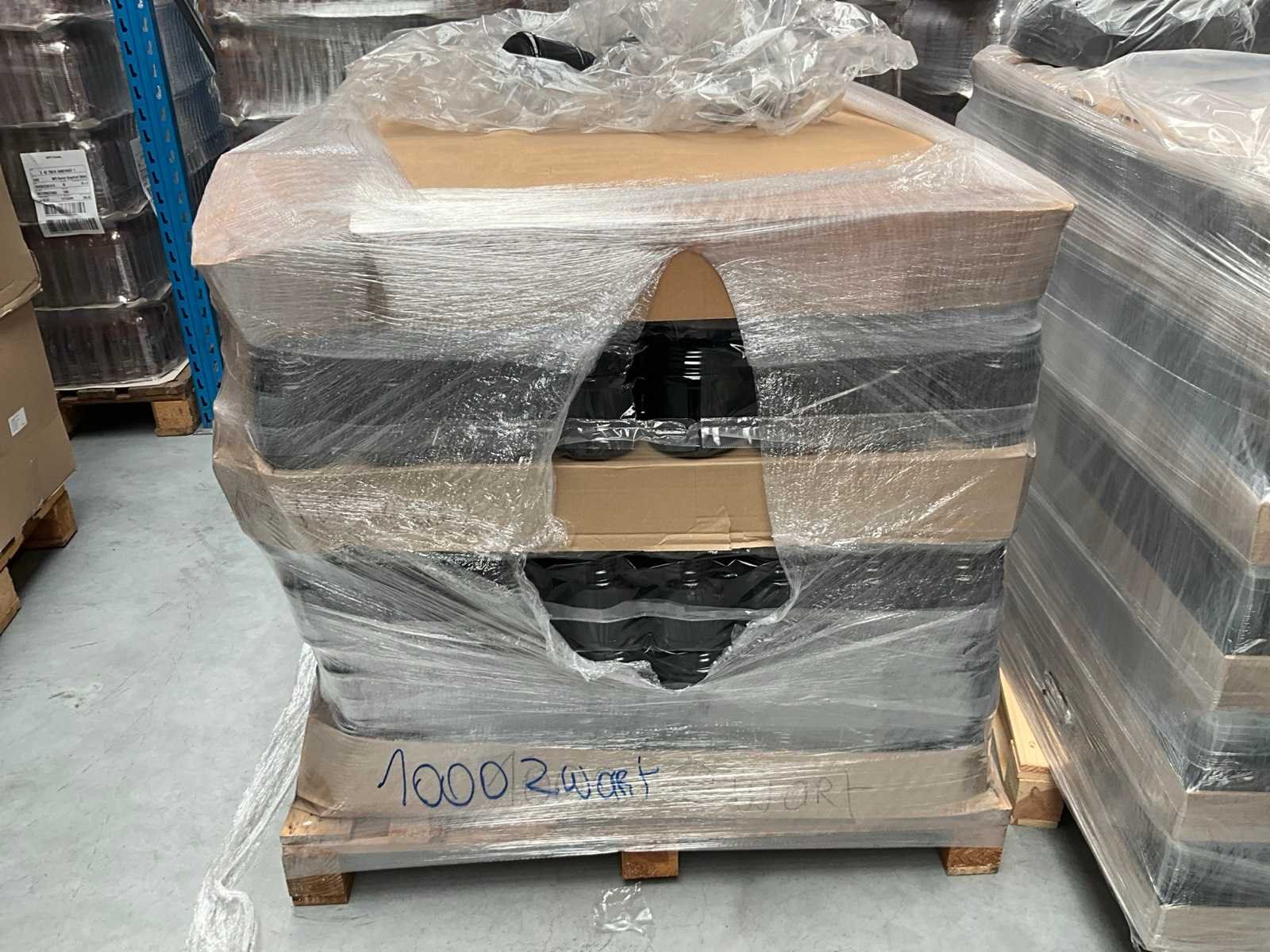 Waaronder Obeck, Pont en Alpha packaging circa: 81x matzwarte pot 1500ml 440x matzwarte pot 1250 ml 580x glanzend zwart 1000ml Enige potten glanzend zwart 3000ml 504x shaker 600ml 220x cylindrical jar 1250ml 1440 100mm matzwarte deksels 747 x 1500ml transparant 32x 2000ml matzwart compleet met 260 deksels 440x 1250 ml matzwart Liggende op 8 pallets Merk: Obeck