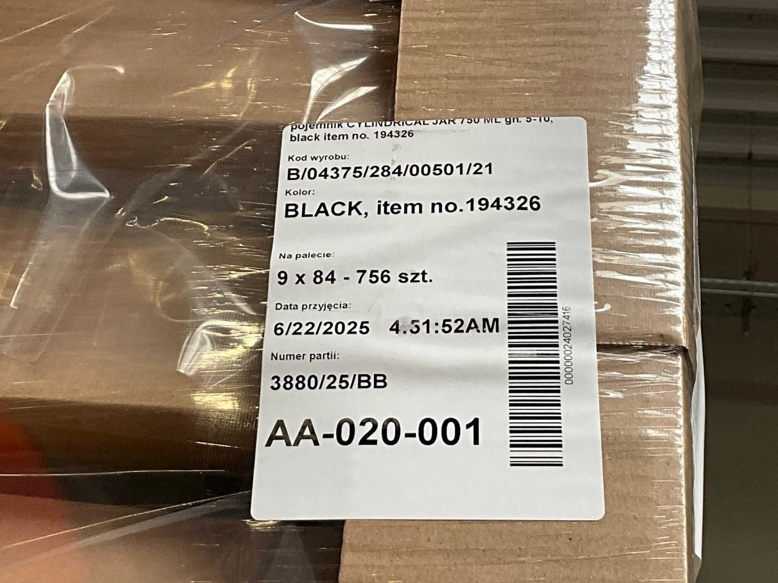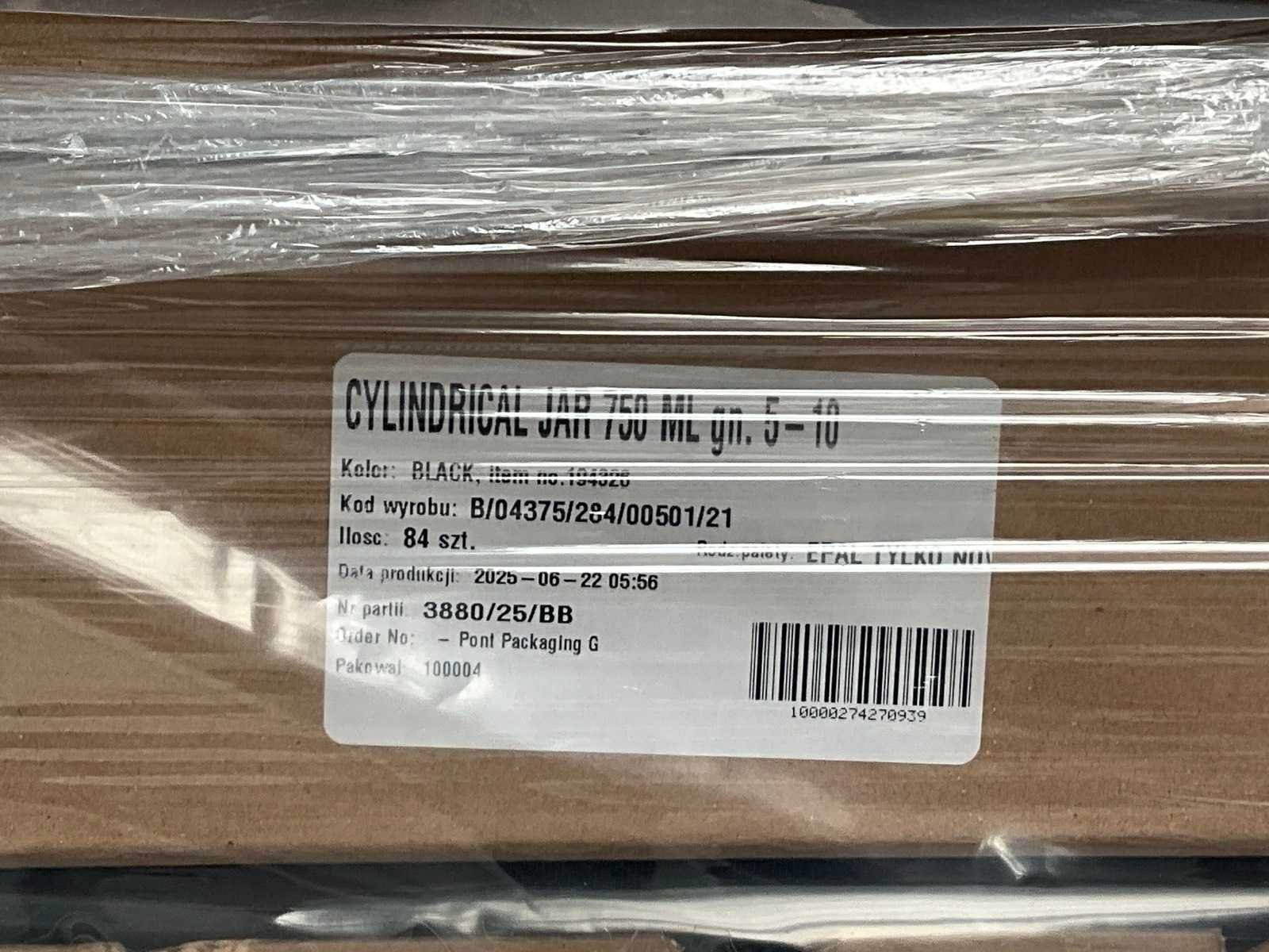 Liggende op 3 pallets Merk: Pont Product type: Cylindrical jar 750ml GN.5-10 Kleur: Mat zwart