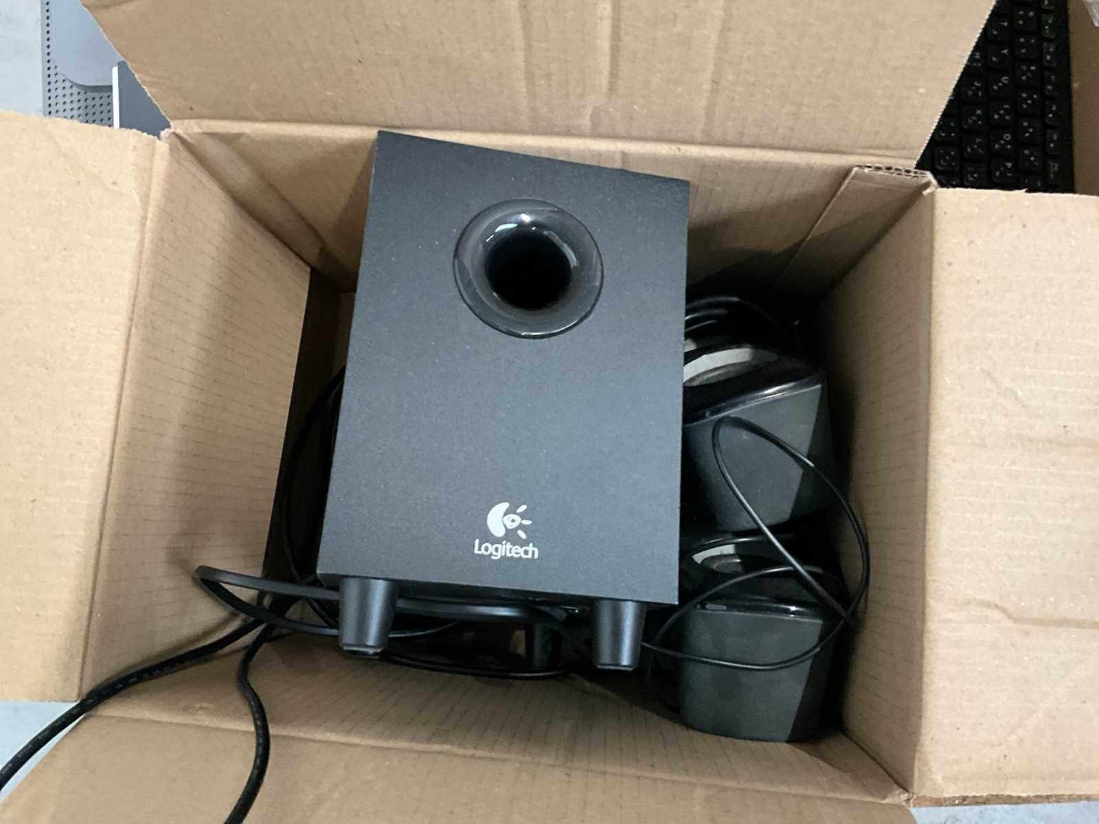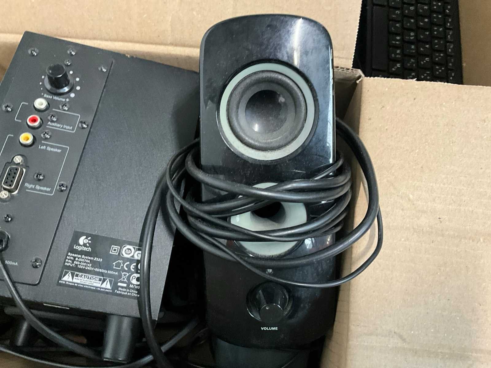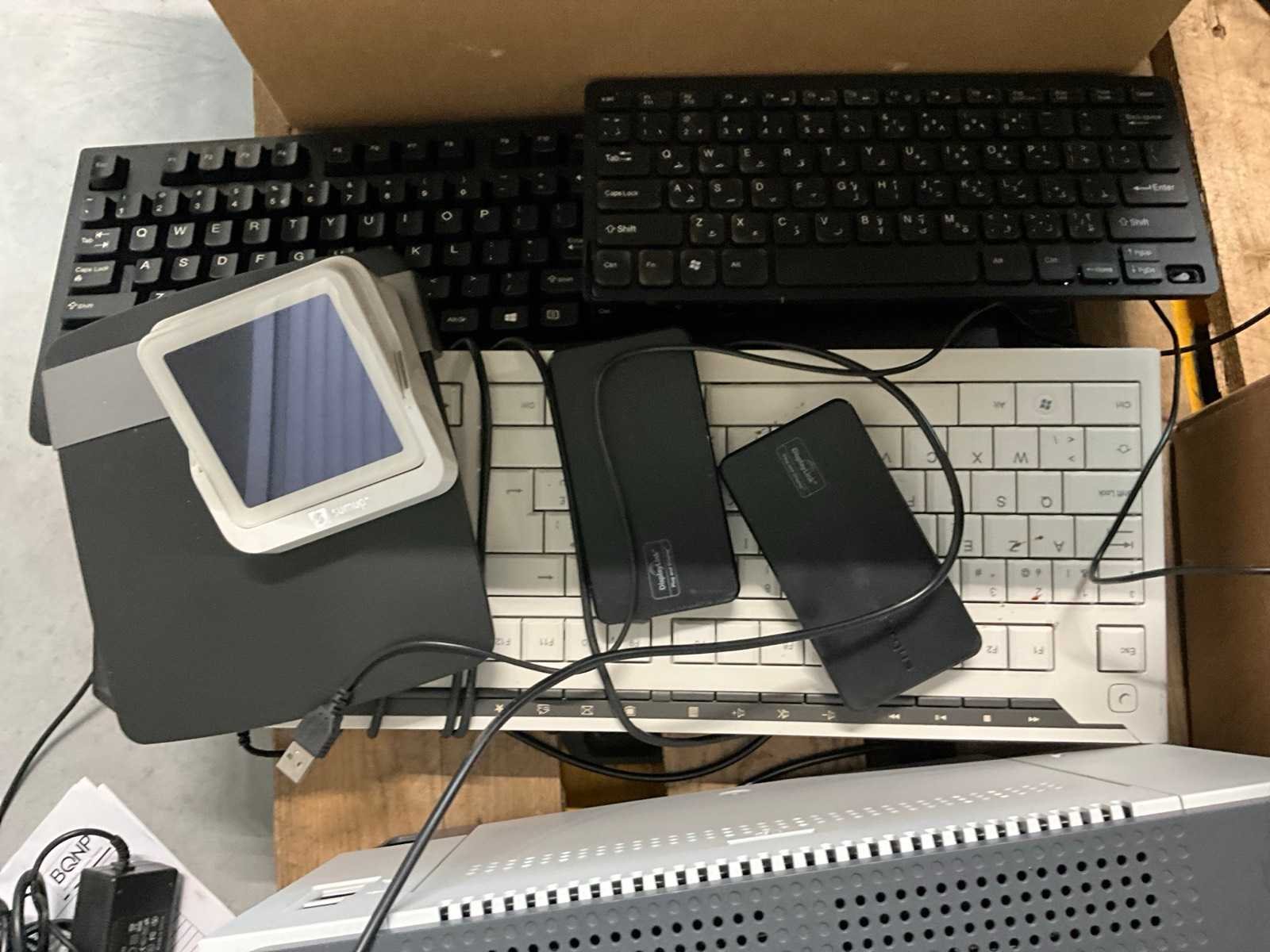 Waaronder bestaande uit: 2 luidsprekers compleet met Subwoofer Logitech, 3 bewakingscamera's TAPO, 1 inktjetprinter HP, MO,ITOR philips, papierversnipperaar Rodahle, microketen Sony, 3x handscanner datalogic voorzien van 1 lader en houder, enige diverse toetsenborden, etc, Liggende op 1 pallet Type: Partij