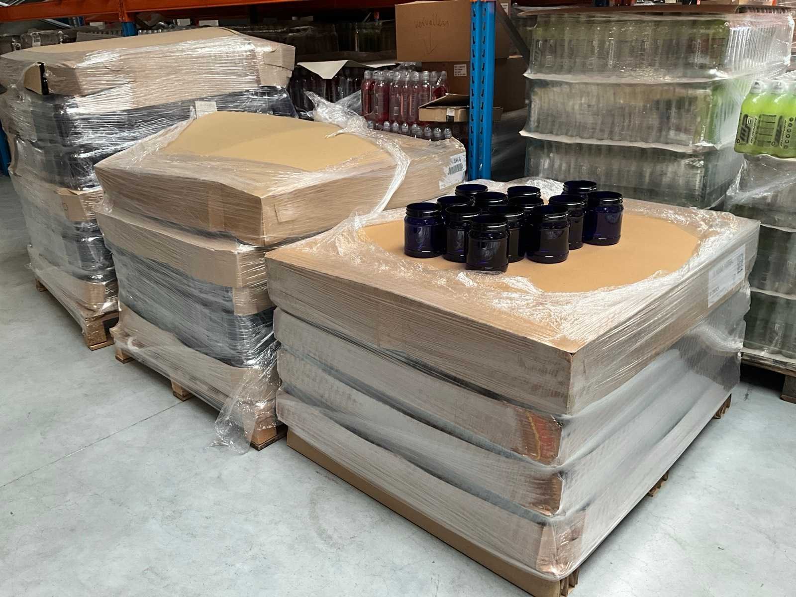 Waaronder 1000 en 1500ml Liggende op 3 pallets Merk: Partij Obeck Product type: PET Blauw