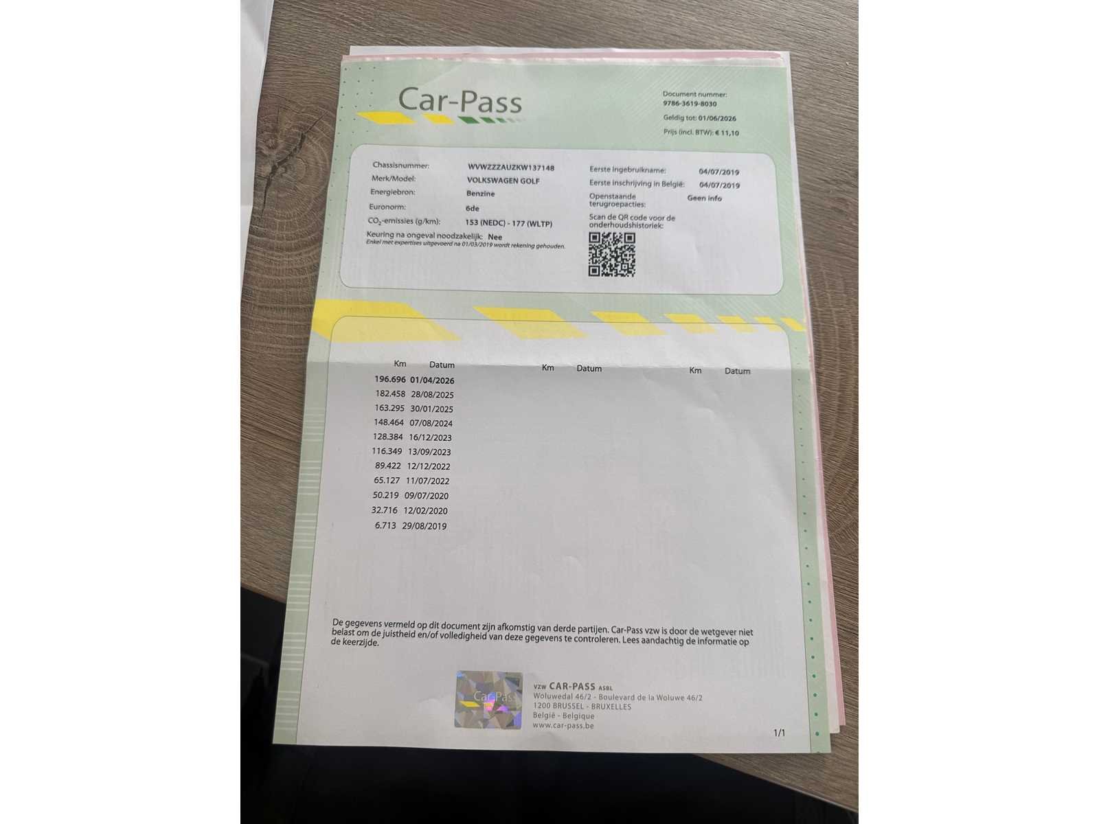 VOLKSWAGEN GOLF GTI TCR NET ONDERHOUD GEHAD START EN RIJD GOED ORIGNEEL BELGISCHE VOERTUIG BOORDDOCUMENTEN COMPLEET Merk: VOLKSWAGEN Model: GOLF GTI Type: GTI TCR Bouwjaar: 2019 Afgelezen kilometerstand: 196700km Cilinderinhoud: 1998cc Vermogen (kW): 213kW Brandstof: BENZINE Chassisnummer: WVWZZZAUZKW137148 Datum eerste toelating: 04-07-2018 Aandrijving: VOORWIEL Aantal zitplaatsen: 5 Kleur: GRIJS Transmissie: AUTOMAAT Emissieklasse: 6 Aantal deuren: 5 Aantal sleutels: 1 Nationaliteit documenten: BELGIE Gelijkvormigheidsattest aanwezig: true Carpass: true Start en rijdt: JA Keuringsrapport geldig tot: 01-04-2027 Andere boorddocumenten: COMPLEET startinformatie : JA Airconditioning: true Navigatie: true Inschrijvingsbewijs - deel 1 : AANWEZIG Inschrijvingsbewijs - deel 2: AANWEZIG