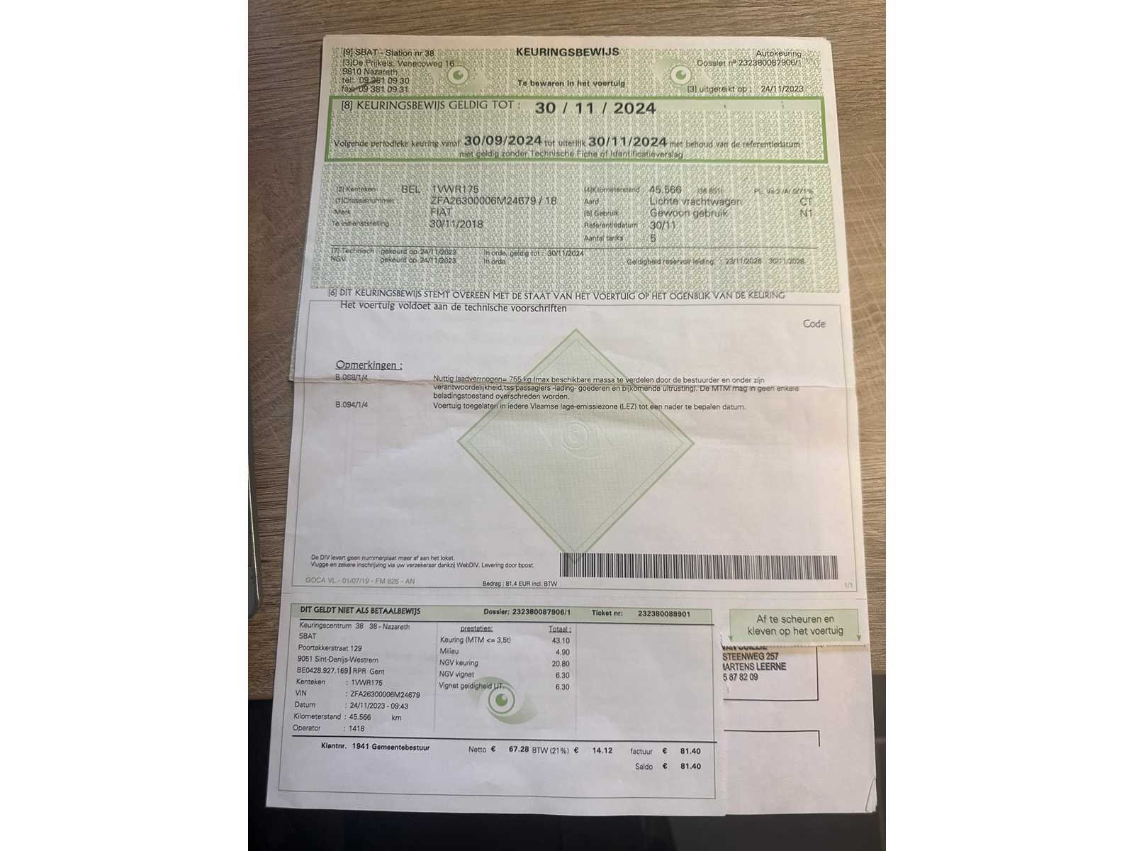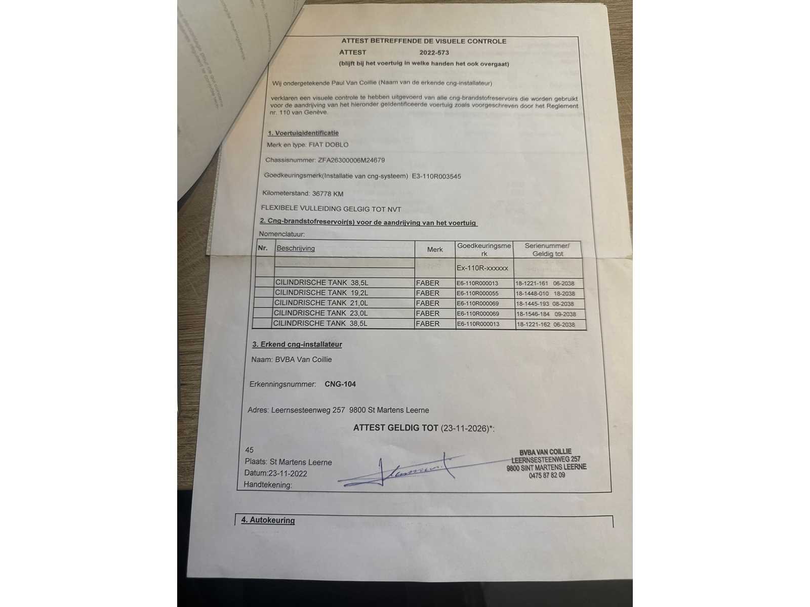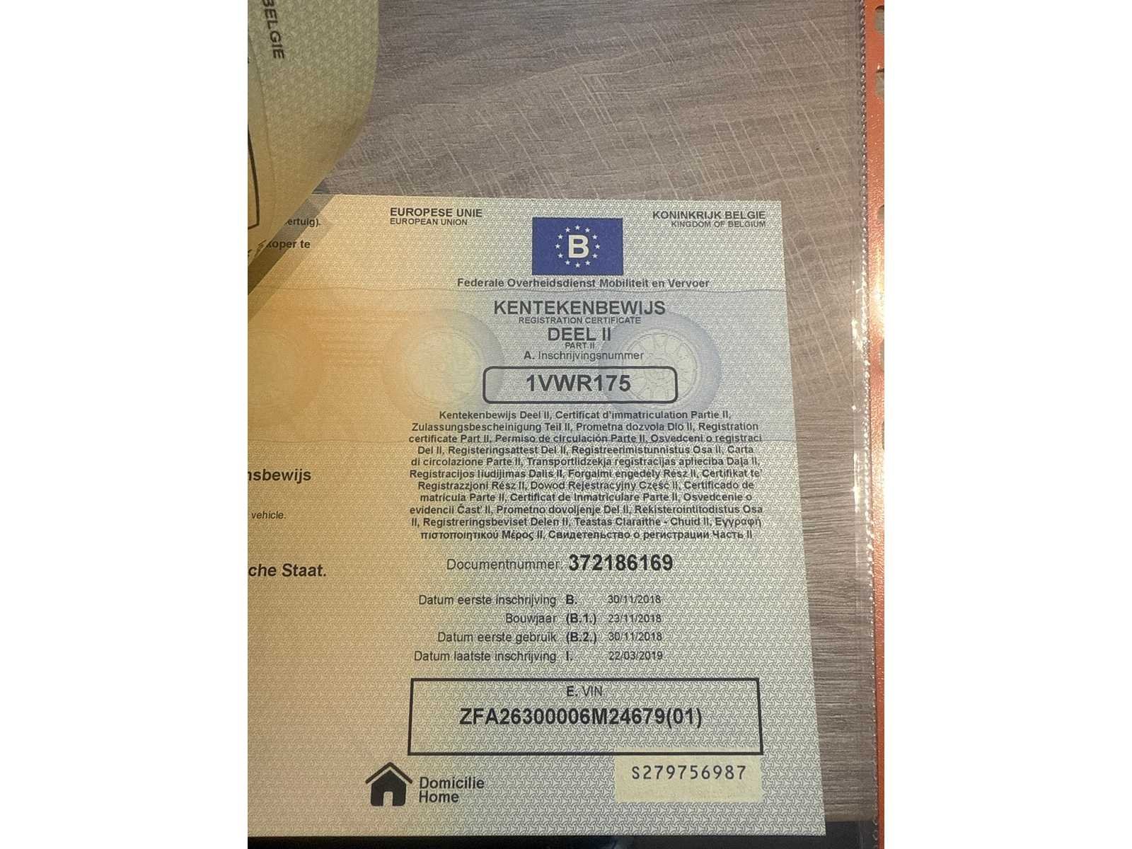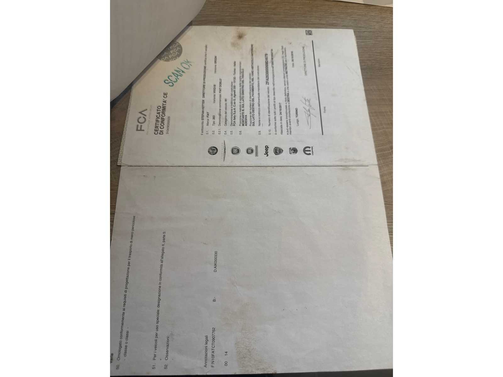 PERFECTE STAAT 1 STE EIGENAAR GROOT ONDERHOUD GEHAD FACTUUR AANWEZIG BOORDDOCUMENTEN AANWEZIG Merk: FIAT Model: DOBLO Type: CNG Bouwjaar: 2018 Afgelezen kilometerstand: 53000km Cilinderinhoud: 1400cc Vermogen (kW): 88kW Brandstof: BENZINE & CNG Chassisnummer: ZFA26300006M24679 Datum eerste toelating: 30-11-2018 Kleur: WIT Transmissie: MANUEEL Emissieklasse: 6 Aantal deuren: 3 Aantal sleutels: 3 Nationaliteit documenten: BELGIE Gelijkvormigheidsattest aanwezig: true Carpass: true Start en rijdt: JA Keuringsrapport geldig tot: 30-11-2024 Andere boorddocumenten: COMPLEET startinformatie : JA Inschrijvingsbewijs - deel 1 : AANWEZIG Inschrijvingsbewijs - deel 2: AANWEZIG