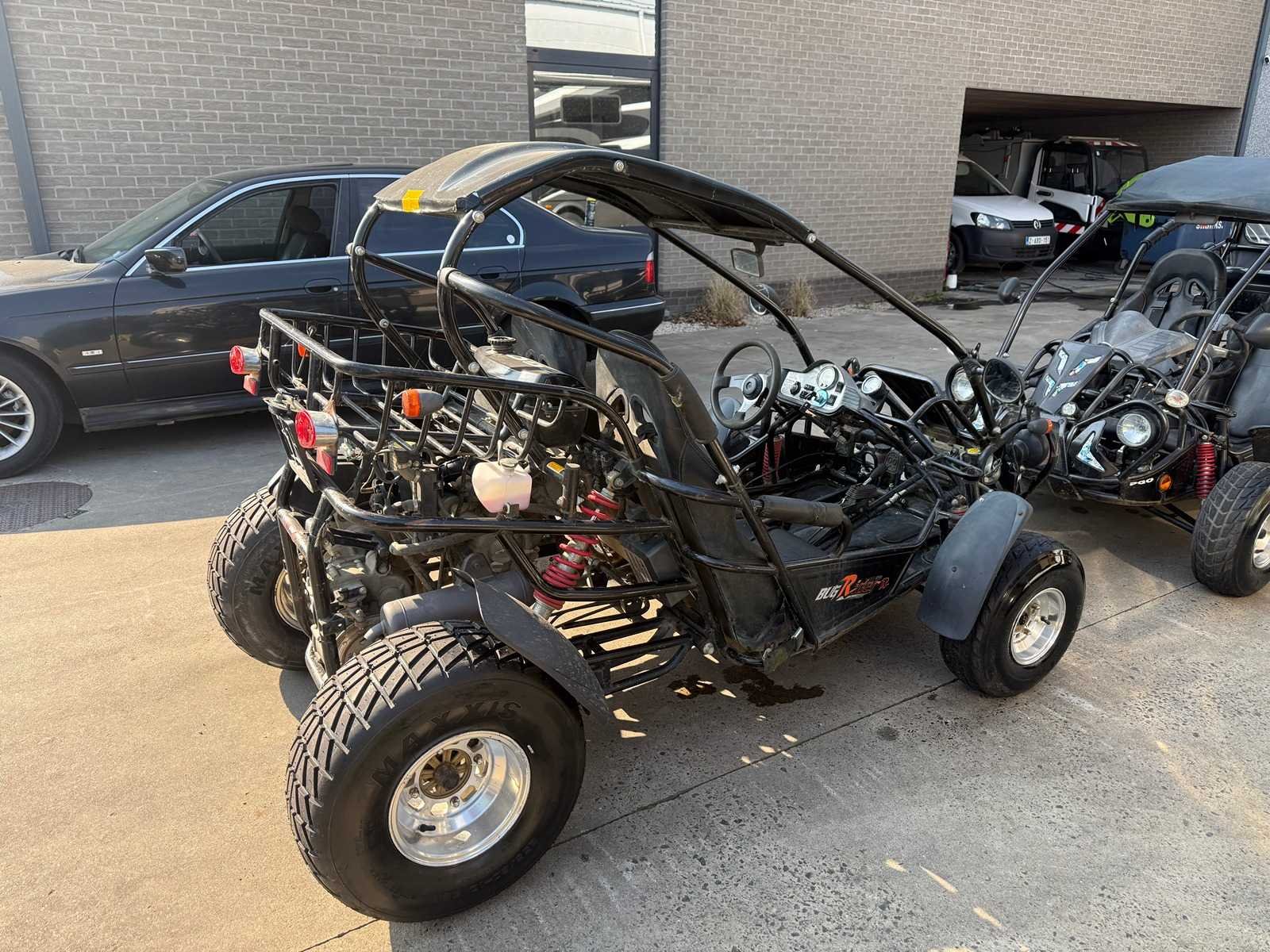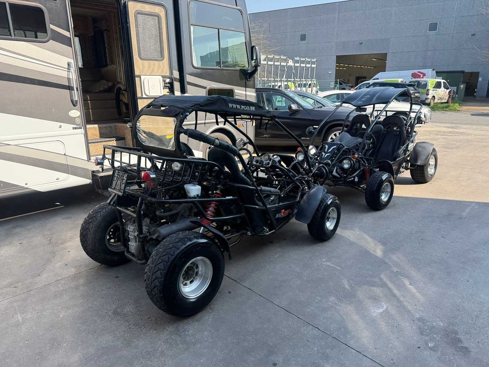 2 X BUGGY'S MET BIJHORENDE AANHANGWAGEN 1 BUGGY CHASSISNUMMER : RFVBRB25061004900 ( 15-09-2006 bouwjaar ) 2 BUGGY CHASSISNUMMER : RFVBRB25061004911 ( 10-01-2007 bouwjaar ) Beiden starten en rijden en hebben nieuwe batterijen gekregen Onderhoud kan wel aanbevelen worden , staan al even stil Bijhorende aanhangwagen bijgeleverd op foto Beiden hebben boorddocumenten ( Attest verlies inschrijvingsbewijs Politie ) Merk: PGO Model: BUG RIDER Product type: BR250 Aantal sleutels: 1 Transmissie: AUTOMAAT Datum eerste toelating: 15-09-2006 Bouwjaar: 2006 Cilinderinhoud: 250cc Brandstof: BENZINE