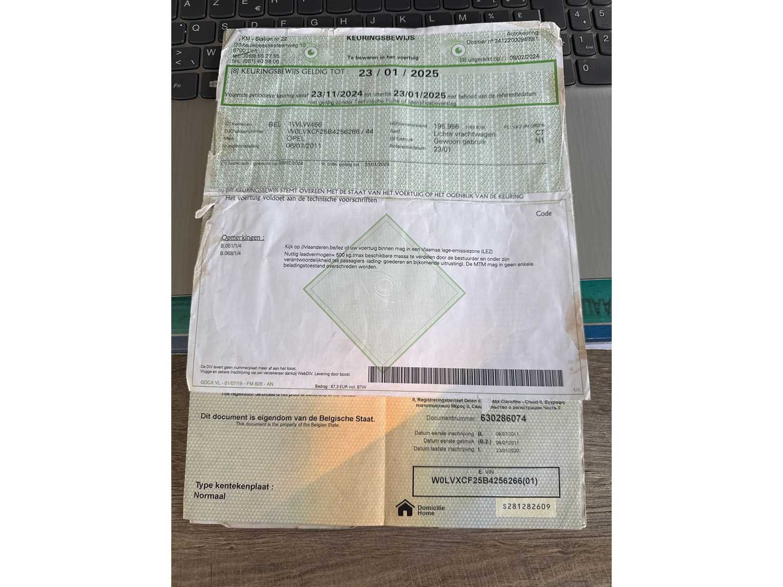 WATERPOMP LEKT Merk: OPEL Model: COMBO Bouwjaar: 2011 Afgelezen kilometerstand: 204000km Cilinderinhoud: 1248cc Vermogen (kW): 55kW Brandstof: DIESEL Chassisnummer: W0LVXCF25B4256266 Datum eerste toelating: 06-07-2011 Kleur: BLAUW Transmissie: MANUEEL Emissieklasse: 4 Aantal sleutels: 1 Nationaliteit documenten: BELGIE Gelijkvormigheidsattest aanwezig: true Carpass: true Start en rijdt: JA Andere boorddocumenten: JA startinformatie : JA Inschrijvingsbewijs - deel 1 : AANWEZIG Inschrijvingsbewijs - deel 2: AANWEZIG