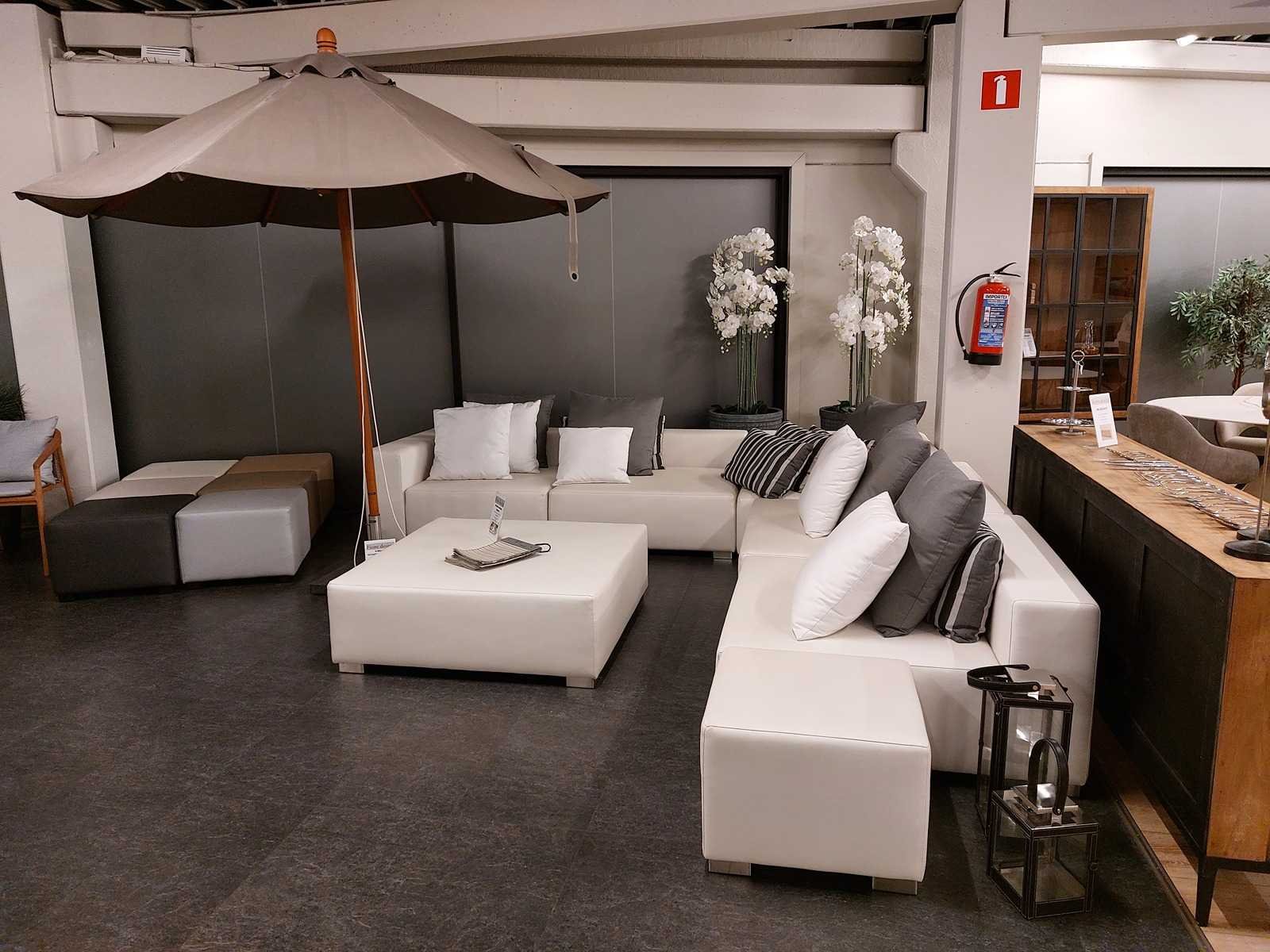 Lounge 220cm op 220cm donker grijs poef: 55x55 op 43 cm hoogte
