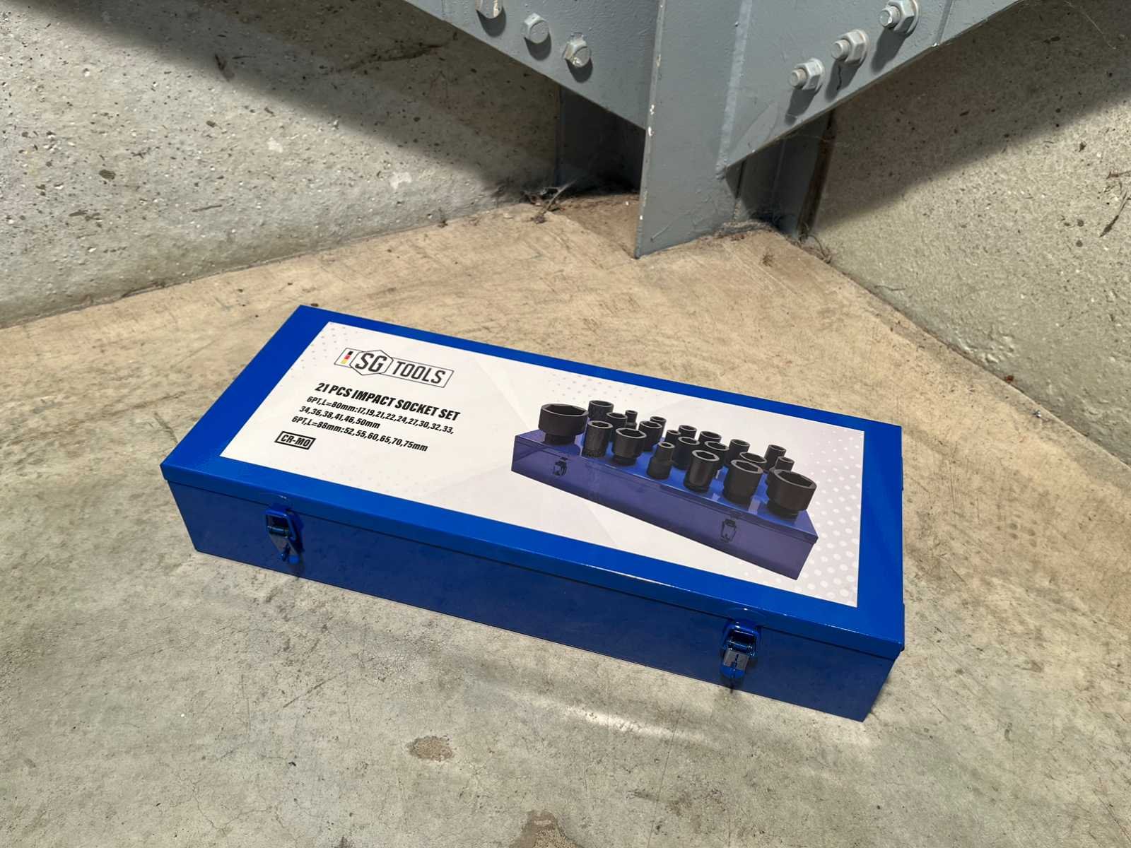 <li><b>21-delige set krachtdoppen</b></li> <li><b>materiaal:</b> ChromeMolybdeen (CrMo / CroMo / Chromoly)</li> <li><b>koffer:</b> metalen koffer met handvaten</li> <li><b>opname doppen:</b> 1” inch</li> <li><b>metrische maten:</b> 17 / 19 / 21 / 22 / 24 / 27 / 30 / 32 / 33 / 34 / 36 / 38 / 41 / 46 / 50 / 52 / 55 / 60 / 65 / 70 / 75</li> <li><b>staat:</b> ongebruikt in de originele verpakking</li> Merk: Stahlgruppe Met koffer: true Delig: 21 Opname “: 1'' Krachtdop uitvoering: true