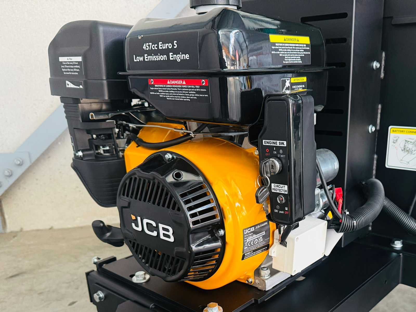<ul> <li><strong>houthakselaar</strong></li> <li><strong>motor:</strong> JCB-E460PE benzinemotor</li> <li><strong>motortype:</strong> 4-takt OHV, 1-cilinder</li> <li><strong>motorinhoud:</strong> 457 cc</li> <li><strong>motorvermogen:</strong> 15 pk</li> <li><strong>starten:</strong> elektrische start en trekstarter</li> <li><strong>aandrijving:</strong> riemaandrijving</li> <li><strong>hakmethode:</strong> vliegwielsysteem (schijfsysteem)</li> <li><strong>schijfdiameter:</strong> 600 mm</li> <li><strong>schijfsnelheid:</strong> 1800 rpm</li> <li><strong>messen:</strong> 2 hakmessen + 6 versnippermessen</li> <li><strong>max. takdiameter:</strong> 120 mm</li> <li><strong>invoeropening:</strong> 588 × 440 mm</li> <li><strong>invoerkanaal:</strong> 278 × 167 mm</li> <li><strong>uitwerpbuis:</strong> 360° draaibaar</li> <li><strong>veiligheid:</strong> noodstop</li> <li><strong>brandstof:</strong> benzine</li> <li><strong>brandstoftank:</strong> 6,5 liter</li> <li><strong>motorolie:</strong> SAE 30 / 15W40</li> <li><strong>oliecapaciteit:</strong> 1100 ml</li> <li><strong>onderstel:</strong> verrijdbaar chassis</li> <li><strong>wielen:</strong> luchtbanden</li> <li><strong>wieldiameter:</strong> 16 inch (400 mm)</li> <li><strong>trekinrichting:</strong> ATV-trekstang (niet wegtoegelaten)</li> <li><strong>geluidsniveau:</strong> 120 dB</li> <li><strong>afmetingen (L × B × H):</strong> 276 × 98 × 173 cm</li> <li><strong>gewicht netto:</strong> 260 kg</li> <li><strong>meegeleverd:</strong> handleiding en gereedschapsset</li> <li><strong>staat:</strong> ongebruikt, in houten kist</li> <li><strong>afmetingen kist:</strong> 114 x 80 x 115 cm</li> <li><strong>gewicht kist:</strong> 294 kg</li> </ul> Merk: JCB Type: CH150120PE