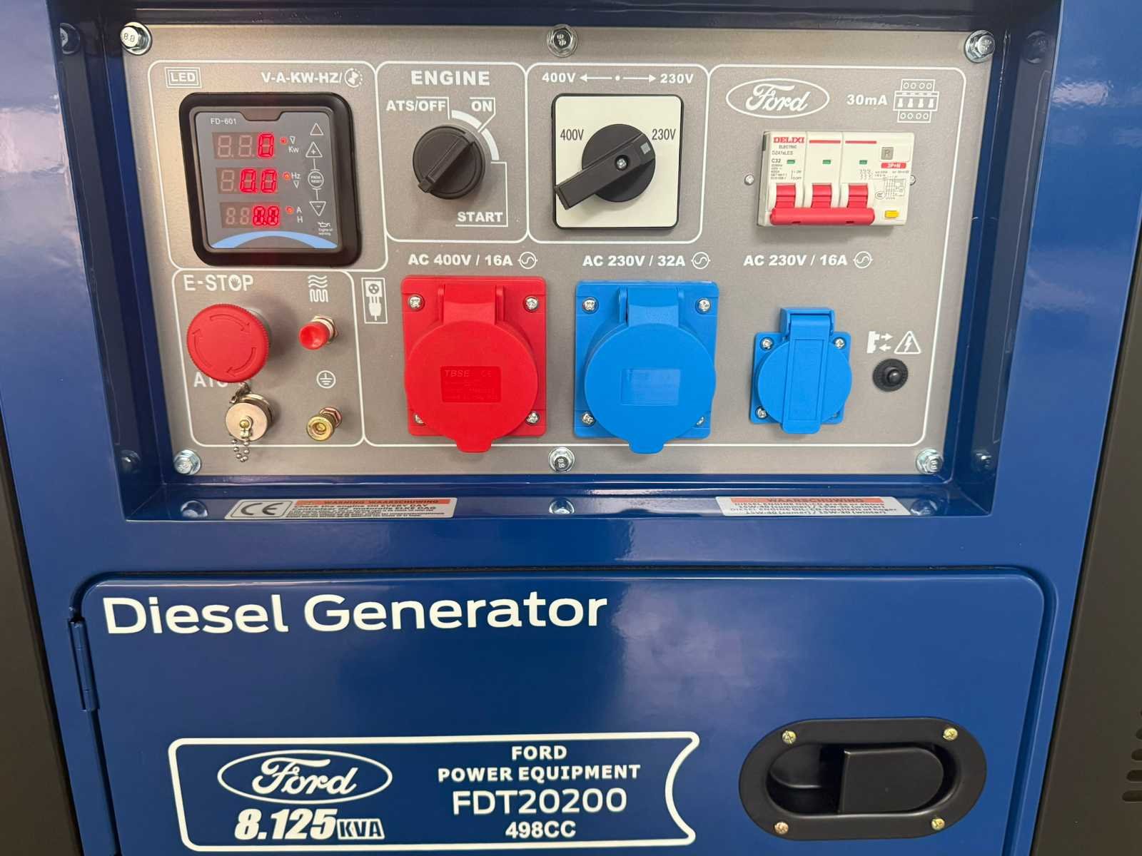 <li><strong>diesel stroomgenerator</strong></li> <li><strong>merk:</strong> Ford</li> <li><strong>vermogen:</strong> 8.125 kVA</li> <li><strong>motor:</strong> 498 cc dieselmotor</li> <li><strong>starten:</strong> elektrische startmotor</li> <li><strong>stopcontacten:</strong> <ul> <li>1 x 400 volt (CEE 3P+N+E)</li> <li>1 x 230 volt (CEE 2P+E)</li> <li>1 x 230 volt (CEE 7/3 – Schuko)</li> </ul> </li> <li><strong>beveiliging:</strong> zekeringautomaat en noodstop</li> <li><strong>behuizing:</strong> geluiddempende behuizing</li> <li><strong>display:</strong> LED-display</li> <li><strong>sleutels:</strong> 2 sleutels</li> <li><strong>gewicht:</strong> 165 kg</li> <li><strong>beschermingsgraad:</strong> IP44</li> <li><strong>staat:</strong> ongebruikt, in de originele verpakking</li> Merk: Ford Type: 8,125 kva