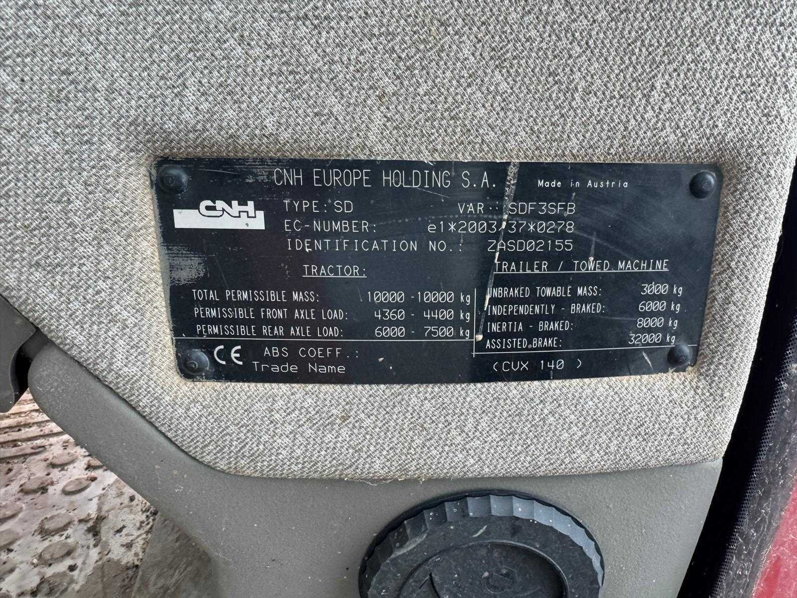 - Machine starts and drives good - With French registration papers Merk: Case Type: CVX140 Bouwjaar: 2010 Serienummer: ZASD02155 Motorvermogen (kW): 104kW Afgelezen urenstand: 9100 Versnellingsbaktype: Vario Aftakastoerental: 540-1000rpm Aantal hydraulische ventielen voor: 1 Aantal hydraulische ventielen achter: 3 Bandenmaat voor: 480/70R28 Bandenmaat achter: 520/85R38 Voorlader: true Fronthefinrichting: true Cabine: true Luchtgeveerde stoel: true Kentekenpapieren compleet?: true Chassisnummer: ZASD02155 Datum eerste toelating: 03/12/2010 Zelf rijdend exporteren: Mogelijk Leveringsvoorwaarden: Geladen op vrachtwagen