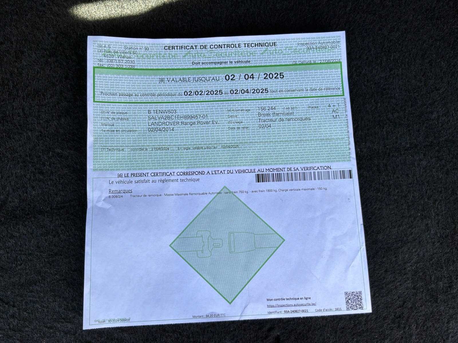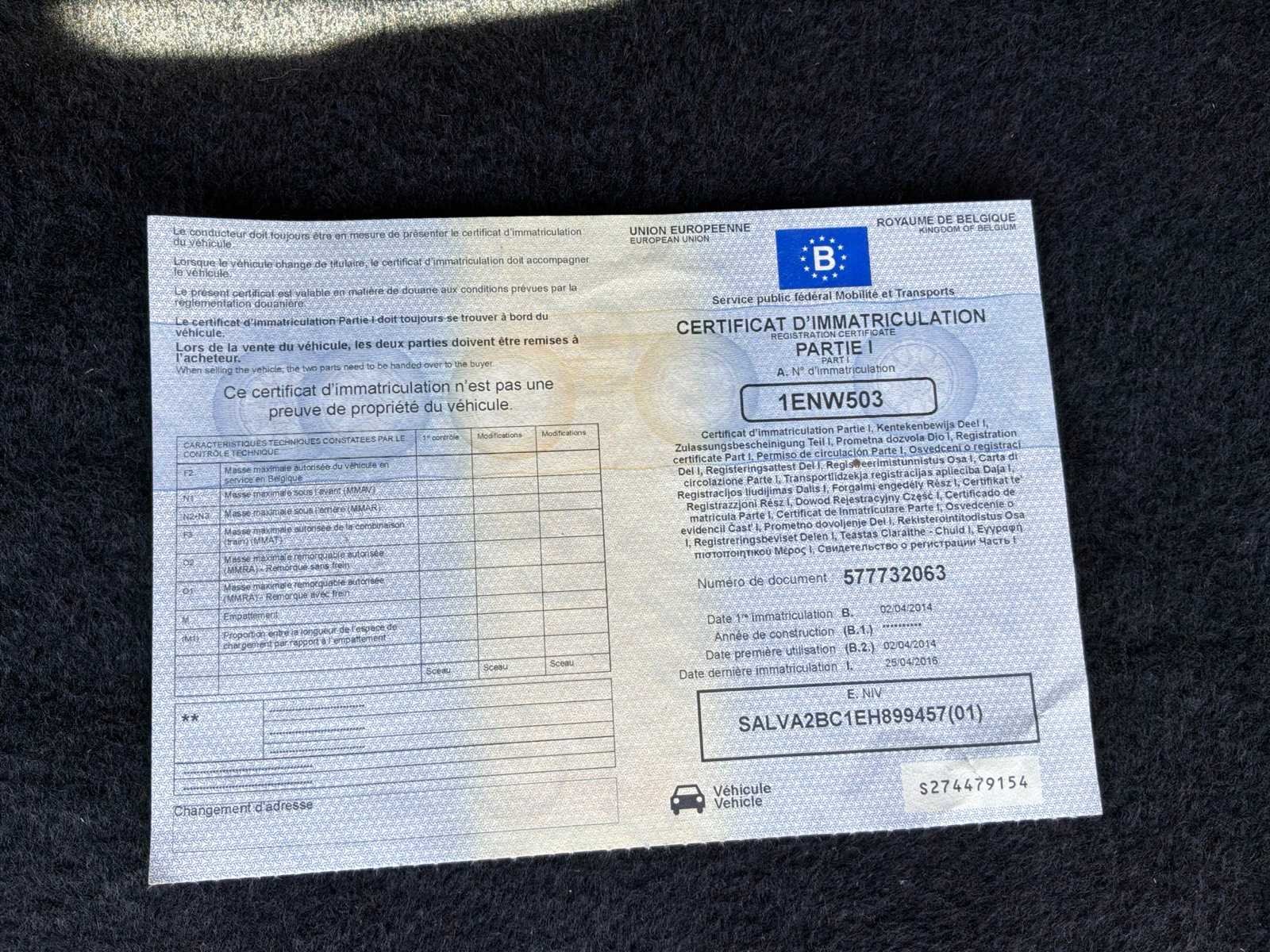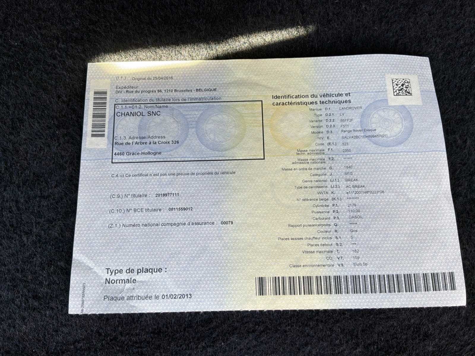 Merk: Range Rover Model: Evoque TD4 Afgelezen kilometerstand: 160304km Brandstof: diesel Chassisnummer: SALVA2BC1EH899457 Datum eerste toelating: 02/04/2014 Aantal zitplaatsen: 5 Transmissie: Automaat Emissieklasse: Euro 5b Aantal deuren: 5 Gelijkvormigheidsattest aanwezig: true Start en rijdt: Ja Vavato voert geen technische keuring uit.: true Leder bekleed: true Inschrijvingsbewijs - deel 1 : Aanwezig Inschrijvingsbewijs - deel 2: Aanwezig