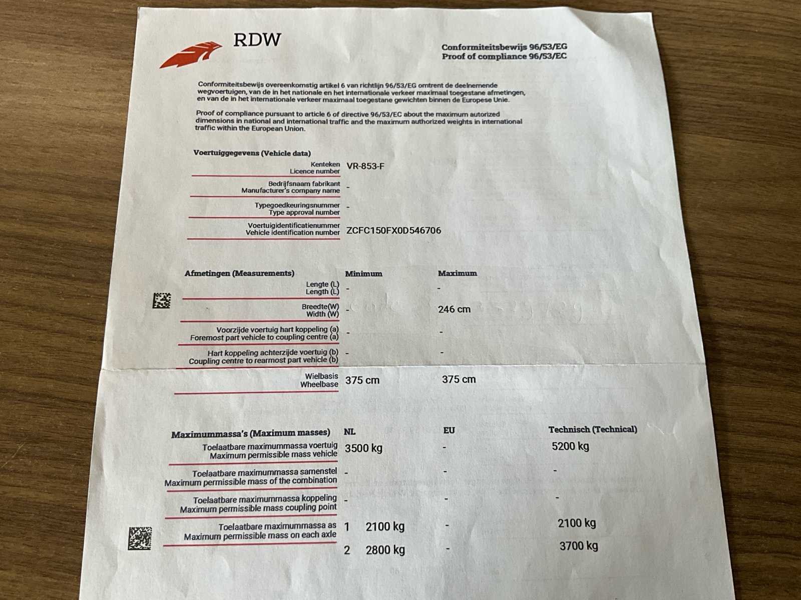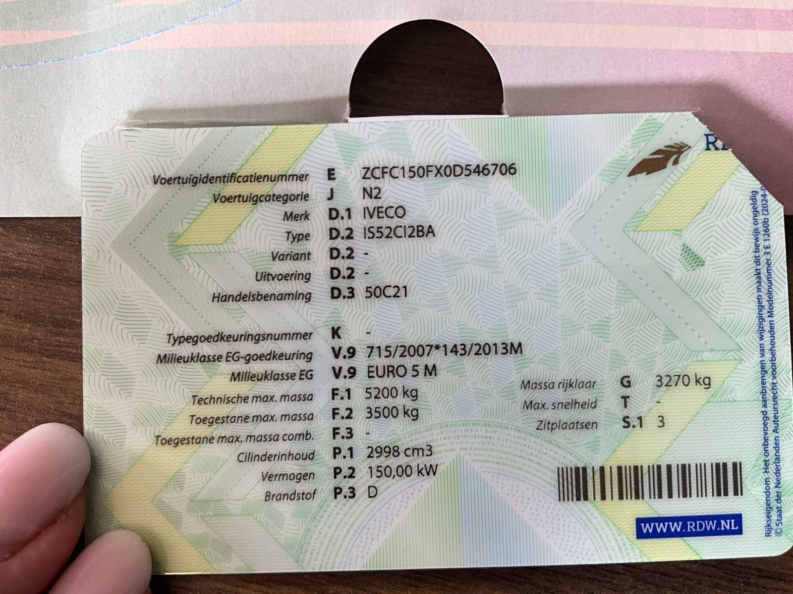 Lampje motor brandt om onbekende reden - gebruikssporen binnen en buiten (zie foto’s) - wagen start, rijdt, remt, pomp is functioneel Merk: Iveco Type: 50C21 Bouwjaar: 2015 Chassisnummer VIN: ZCFC150FX0D546706 Cilinderinhoud: 2998cc Datum eerste toelating (NL): 19/8/2015 Type transmissie: Automatisch Fuel Type: Diesel Totale afmeting Breedte: 246mm Afgelezen kilometerstand: 376158km Nationaliteit documenten: NL Kentekenpapieren compleet?: true Aantal zitplaatsen: 3 Automaat: true Diesel: true