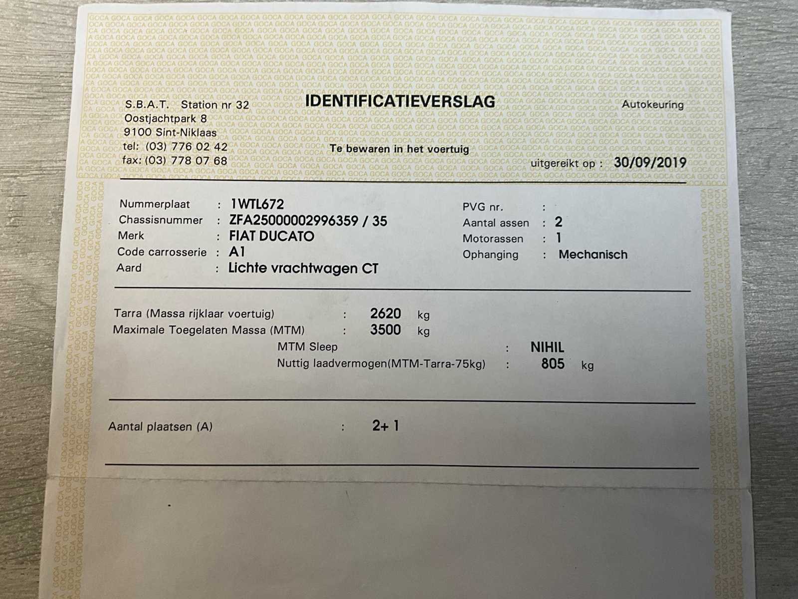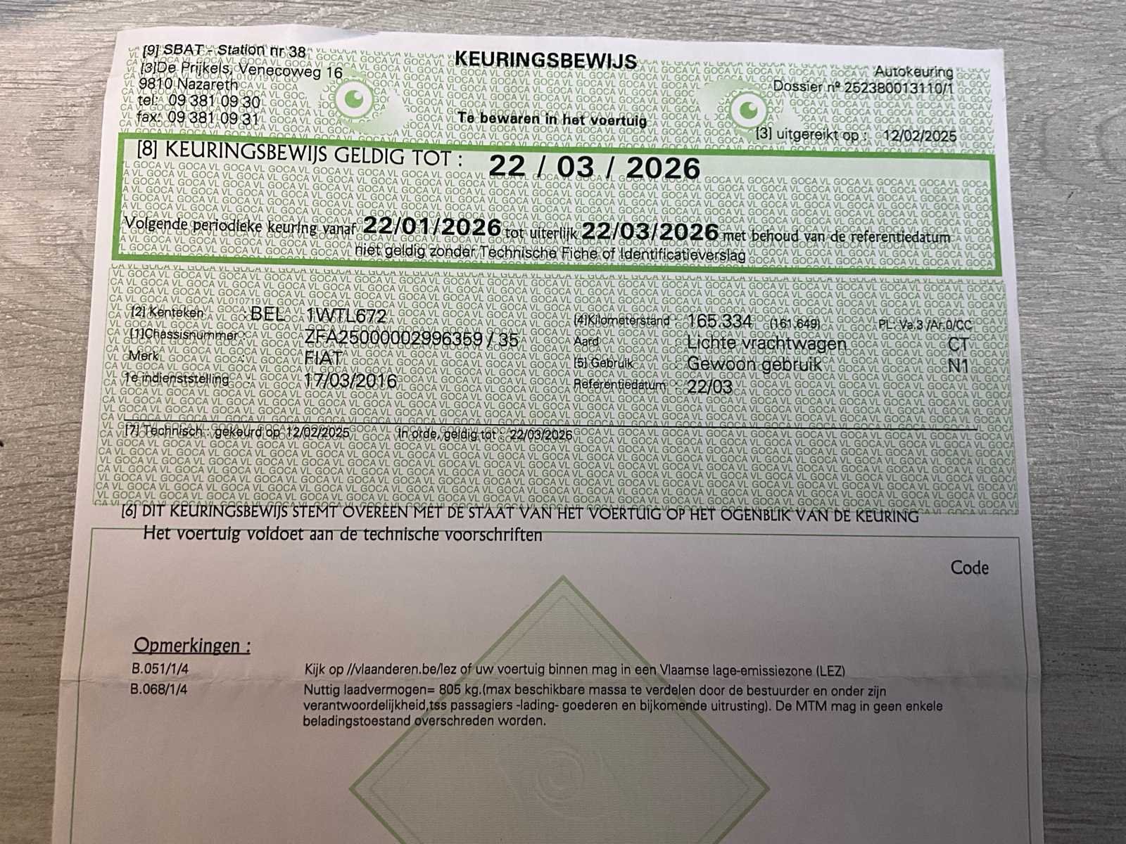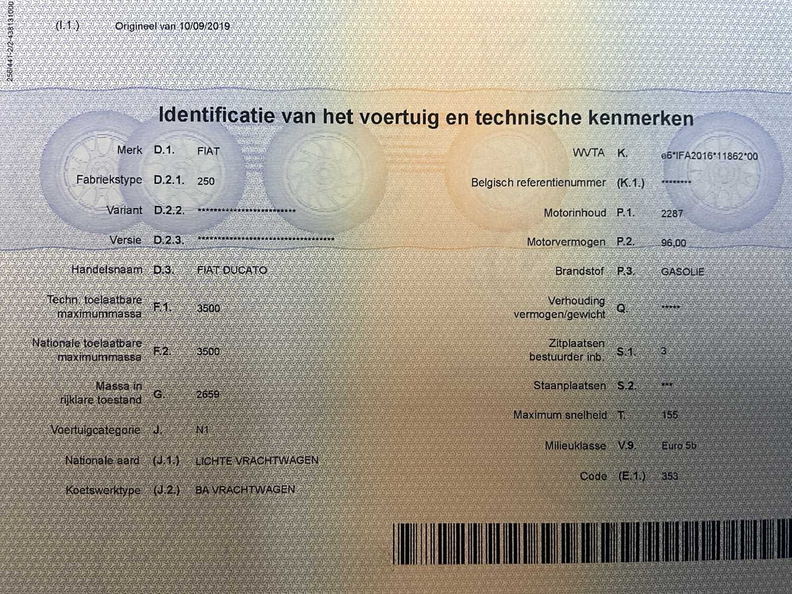 Luchtvering - werkende airco - start, rijdt en remt zeer vlot - lampje airbag & motor brandt (motorlampje brandt om onbekende reden) Merk: Fiat Model: Ducato Type: maxi - airco - luchtvering Bouwjaar: 2016 Afgelezen kilometerstand: 171220km Cilinderinhoud: 2287cc Vermogen (kW): 96kW Brandstof: diesel Chassisnummer: ZFA25000002996359 Laadvermogen: 805kg Datum eerste toelating: 17/3/2016 Aantal zitplaatsen: 3 Kleur: wit Transmissie: manueel Emissieklasse: Euro 5b Ledig gewicht: 2620kg Nationaliteit documenten: B Gelijkvormigheidsattest aanwezig: true Start en rijdt: ja Keuringsrapport geldig tot: 22/3/2026 Zichtbare schade: ja Vavato voert geen technische keuring uit.: true Airconditioning: true Luchtvering: true Inschrijvingsbewijs - deel 1 : aanwezig Inschrijvingsbewijs - deel 2: aanwezig