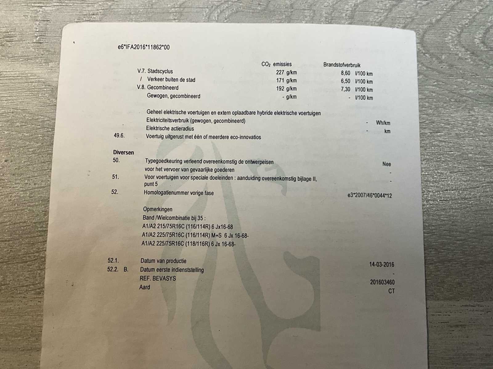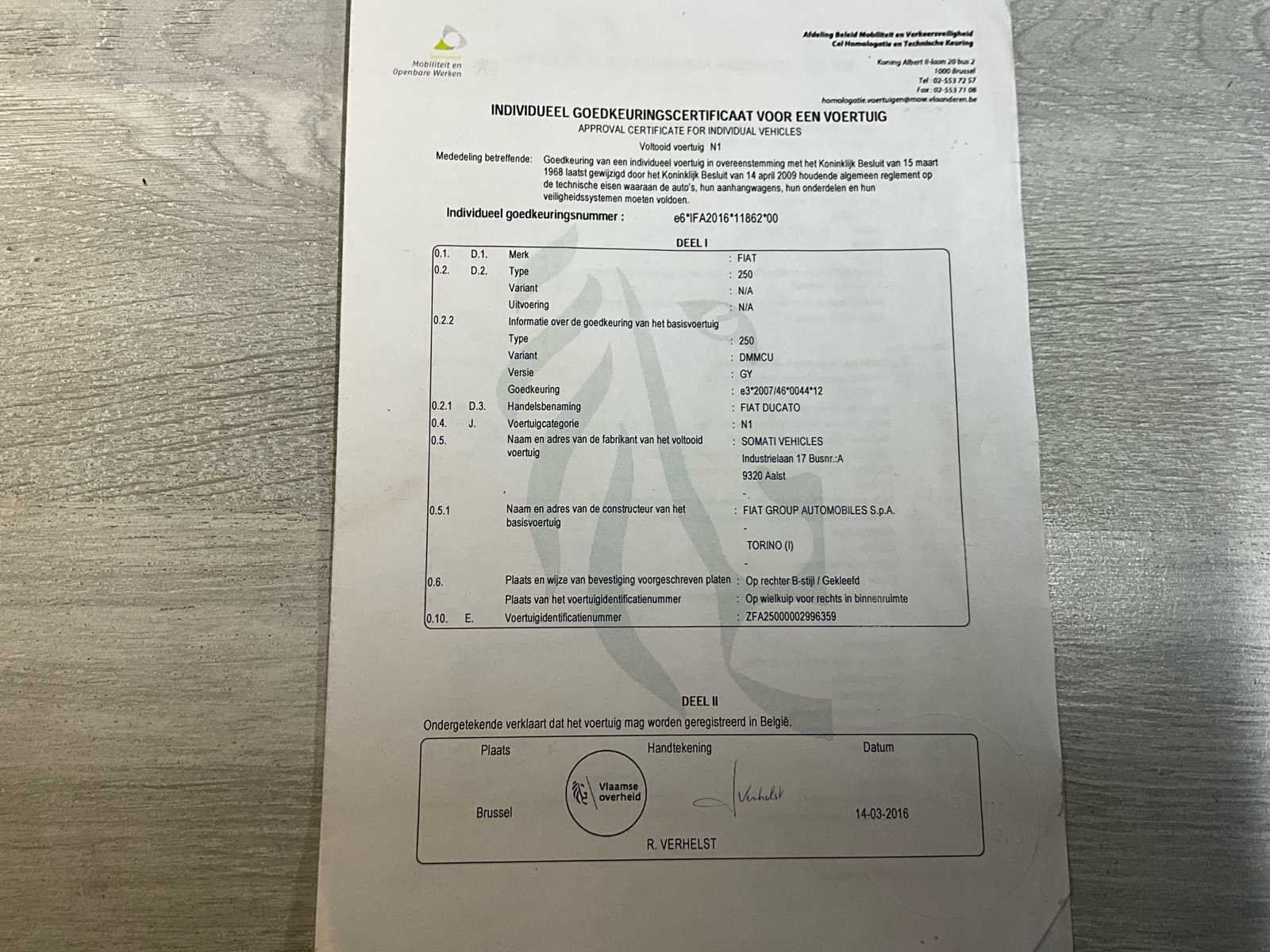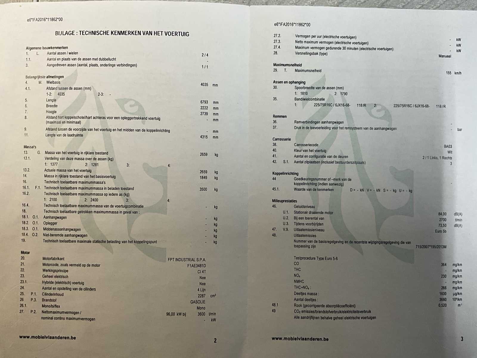 Luchtvering - werkende airco - start, rijdt en remt zeer vlot - lampje airbag & motor brandt (motorlampje brandt om onbekende reden) Merk: Fiat Model: Ducato Type: maxi - airco - luchtvering Bouwjaar: 2016 Afgelezen kilometerstand: 171220km Cilinderinhoud: 2287cc Vermogen (kW): 96kW Brandstof: diesel Chassisnummer: ZFA25000002996359 Laadvermogen: 805kg Datum eerste toelating: 17/3/2016 Aantal zitplaatsen: 3 Kleur: wit Transmissie: manueel Emissieklasse: Euro 5b Ledig gewicht: 2620kg Nationaliteit documenten: B Gelijkvormigheidsattest aanwezig: true Start en rijdt: ja Keuringsrapport geldig tot: 22/3/2026 Zichtbare schade: ja Vavato voert geen technische keuring uit.: true Airconditioning: true Luchtvering: true Inschrijvingsbewijs - deel 1 : aanwezig Inschrijvingsbewijs - deel 2: aanwezig