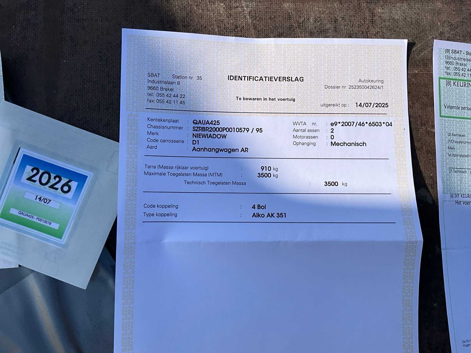 Aanhangwagen is op belgische papieren gezet en rijklaar voor belgische inschrijving! Hoogte laadbak : 40cm Merk: Niewiadow Type: BR3 Bouwjaar: 2024 Chassisnummer: SZRBR200P0010579 Aantal assen: 3 Laadbak afmeting l: 520cm Laadbak afmeting b: 225cm Ledig gewicht: 910kg Laadvermogen: 2590kg Datum eerste toelating: 25/03/2024 Kentekenpapieren compleet?: true Hoogte: 105cm Lengte: 660cm Breedte: 225cm Nationaliteit documenten: BE