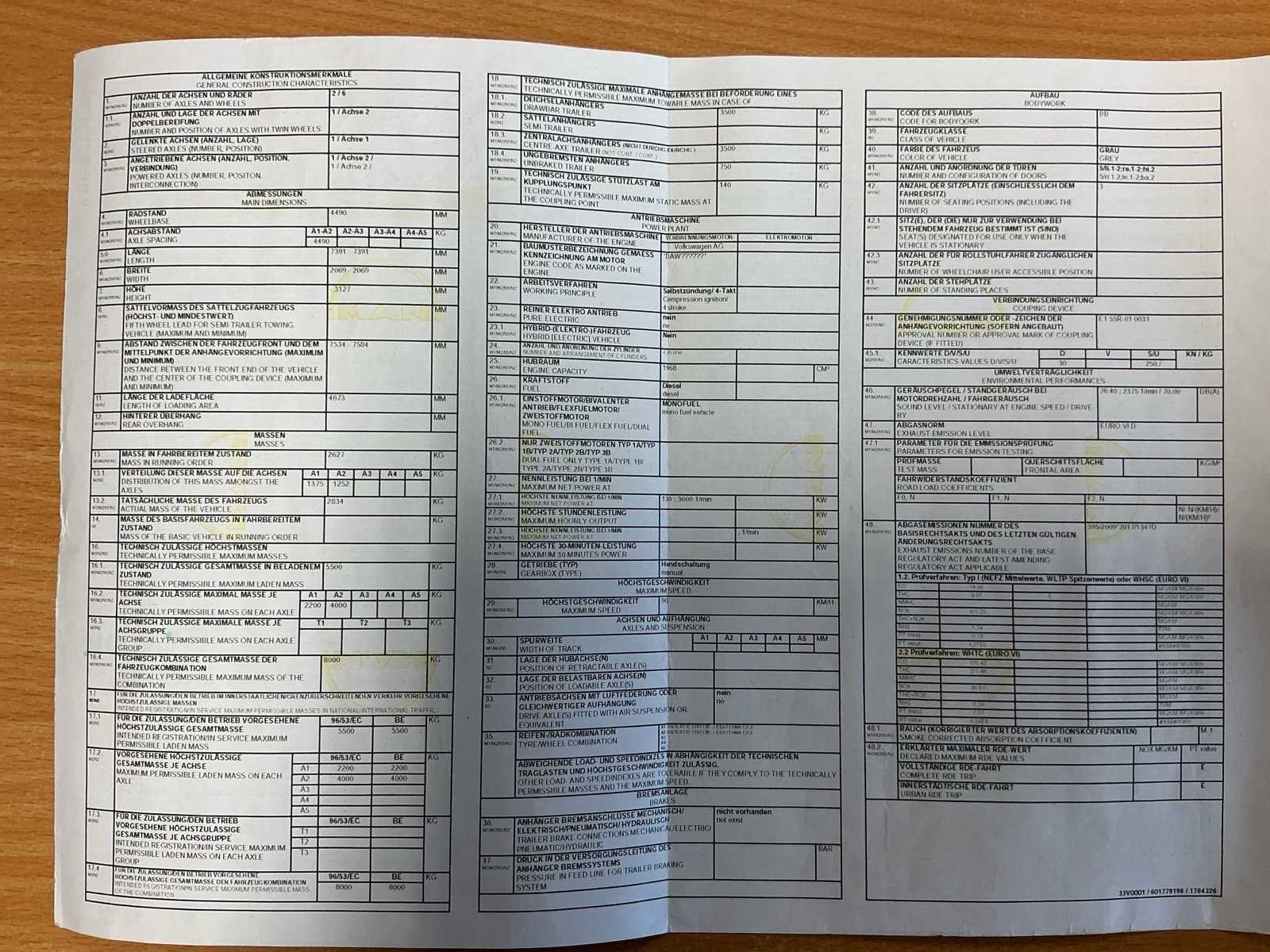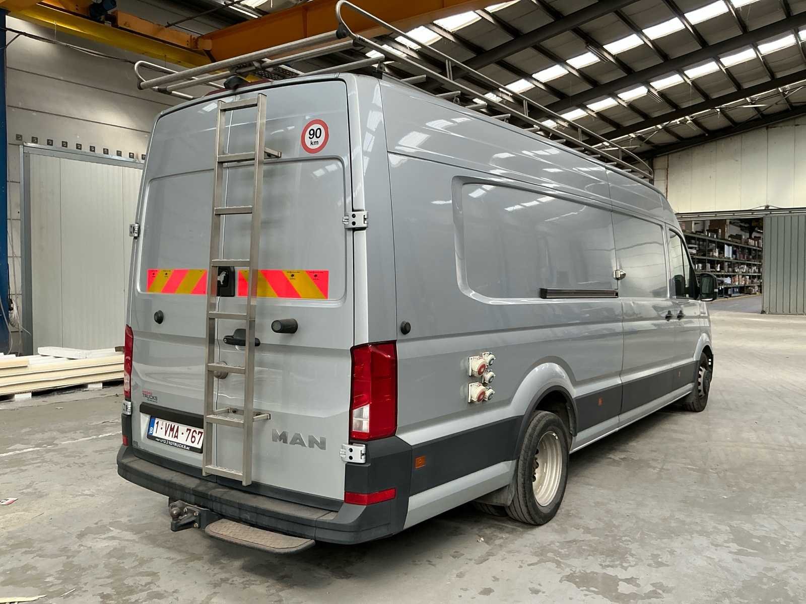 MAN TGE 6.180 Volledig voorzien van PTO instalatie 30 KVA( 2stopcontacten 32Amp & 16/ Amp) Ingerichte laadruimte Schroefbank aanwezig Deurbeveiligingssloten Tacho aanwezig Leder interieur Navigatie Airco Merk: MAN Type: 6.180 Model: TGE Bouwjaar: 2018 Chassisnummer: WMA33VUY9K9004163 Afgelezen kilometerstand: 108517km Cilinderinhoud: 1968cc Vermogen (kW): 130kW Brandstof: Diesel Datum eerste inschrijving: 24/12/2018 Datum eerste toelating: 24/12/2018 Transmissie: Handgeschakeld Aantal zitplaatsen: 3 Kleur: Grijs Nationaliteit documenten: Belgisch Stuurwiel: Links Aantal sleutels: 2 Kentekenpapieren compleet?: true Boorddocumenten aanwezig?: true Onderhoudshistorie: Ja Startinformatie: Start en rijd Self drive export possible : true