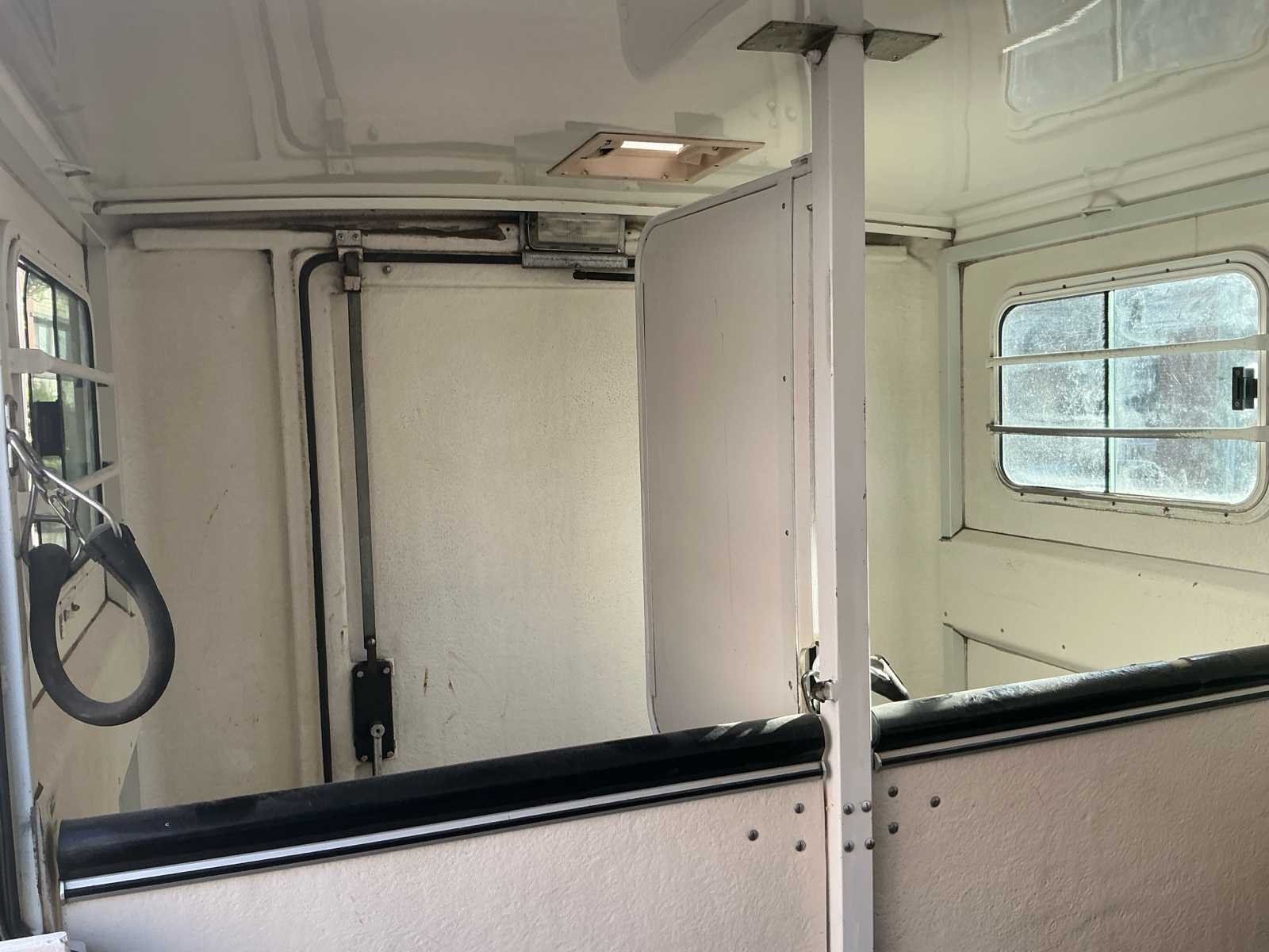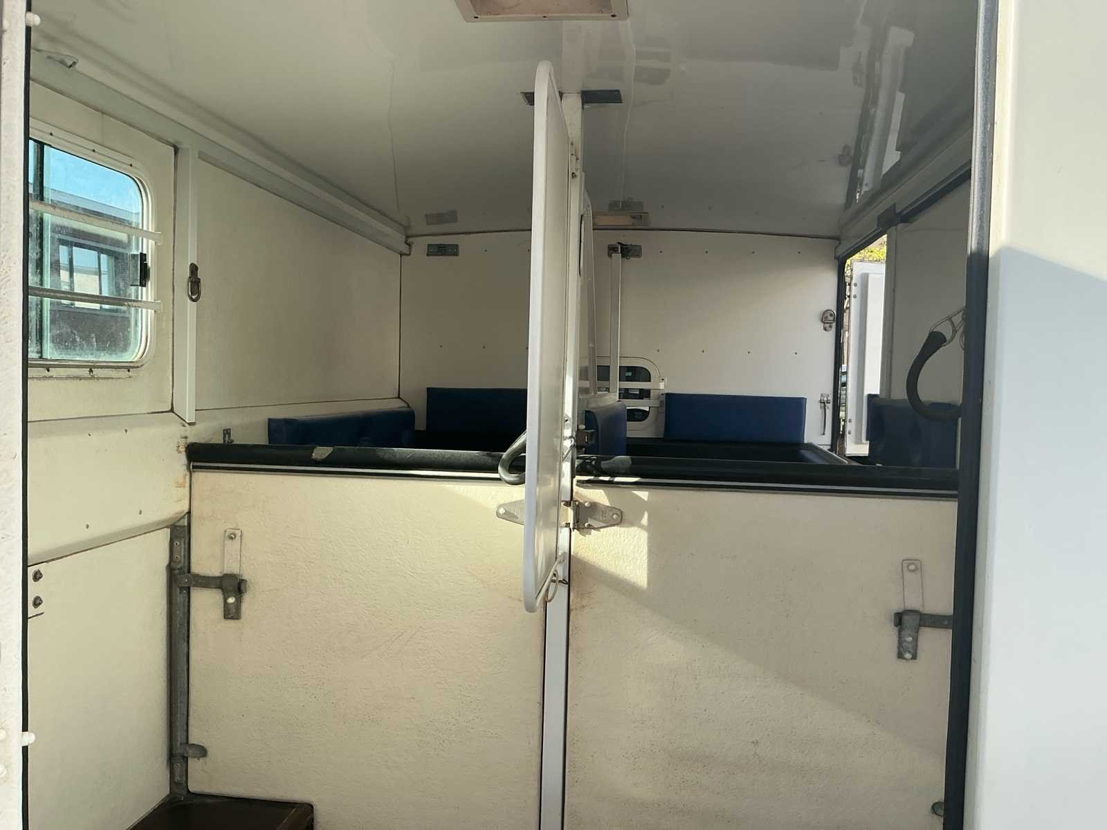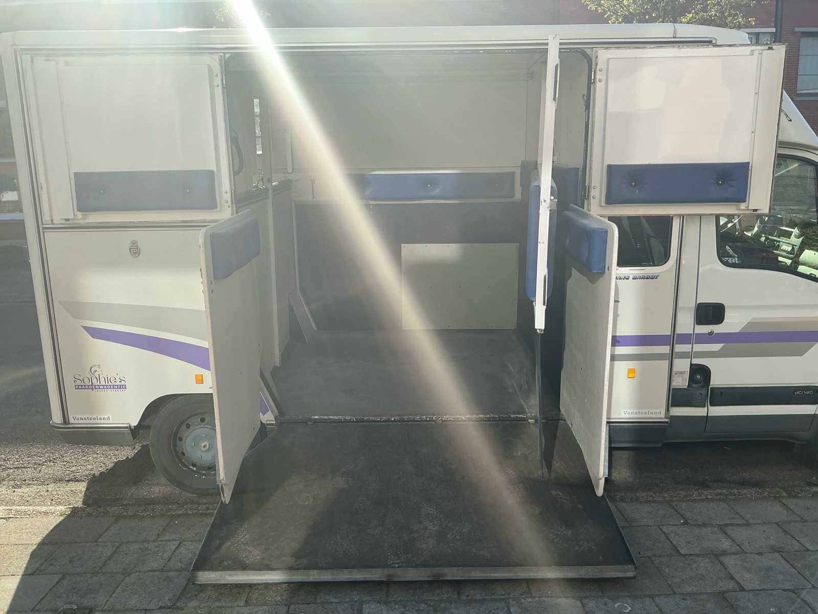 Mooie Renault Master paardenwagen te koop van de stevige en betrouwbare Franse opbouwer Barbot! Deze stevige en betrouwbare wagen is een Renault Master van 2004 met een 122××× kilometers op de teller. Cabine: - Beschikt over 5 zitplaatsen (dubbele cabine) - Nieuwe radio geiinstaleerd. - Electrische ruiten - Raampje naar het paardengedeelte. - Slaapruimte boven de cabine. - Reservewiel onder bank achteraan. Paardengedeelte: - Borstbalkuitvoering. - Grote scheidingswand zodat de paarden met hun hoofd niet aan elkaar kunnen (kan eraf gehaald worden) - 2 hekjes aan de zijkant makkelijk om alleen te kunnen laden (kan eraf gehaald worden) - Doorgang via de deurtjes van zadelkamer naar paardengedeelte. - 2 ventilatie luiken en 2 ramen aan de zijkant. - Laadvermogen 625 kg. - 2 opbergruimten in de zadelkamer. - Sulkyhaken (kan eraf gehaald worden) Super leuke stevige wagen die klaar is om op pad te gaan en leuke avonturen te beleven! De wagen is gekeurd voor verkoop en heeft een volledig onderhoud en nazicht bij de garage gekregen. Alsook voorraan 2 nieuwe banden gekregen en is er een nieuwe radio geiinstalleerd. Merk: Renautl Model: Master Bouwjaar: 2004 Afgelezen kilometerstand: 122403km Cilinderinhoud: 2953cc Vermogen (kW): 100kW Brandstof: Diesel Chassisnummer: VF1EDCSK631646732 Laadvermogen: 1262kg Datum eerste toelating: 01/06/2004 Vermogen (pk): 136hp Energielabel: Euro 3 Aandrijving: FWD Aantal zitplaatsen: 6 Kleur: Wit/paars Transmissie: Manueel Drive type: Front wheel USA titel: Neen Stuurwiel: Links Emissieklasse: Euro 3 Aantal deuren: 4 Aantal sleutels: 2 Ledig gewicht: 1738kg Carrosserie: Paardenvervoer Nationaliteit documenten: Belgische Gelijkvormigheidsattest aanwezig: true Carpass: true Start en rijdt: Ja Technische fiche: true Andere boorddocumenten: Neen startinformatie : Start en rijdt Zichtbare schade: Zie foto’s Self drive export possible : true Airconditioning: true Inschrijvingsbewijs - deel 1 : Aanwezig Inschrijvingsbewijs - deel 2: Aanwezig