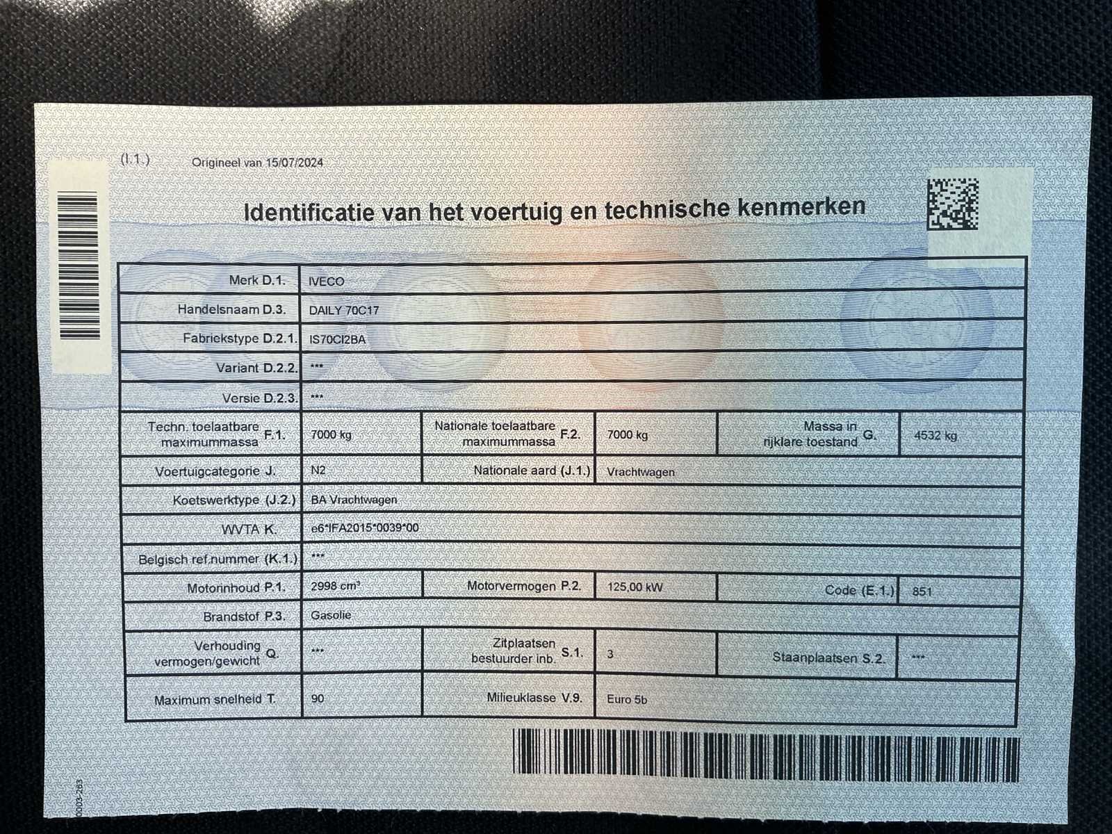 Wagen net op groot onderhoud geweest alle olie vervangen nieuwe filters nieuwe motorketting Wagen is rijklaar Beschikt over 400500 km Chassisnummer: ZCFC170C405011320 Merk: Iveco Model: Daily Product type: Takelwagen met plateau en bril Bouwjaar: 2015 Laadvermogen: 3400kg Vermogen (kW): 125kW Vermogen (pk): 170 Kleur: Geel Gewicht: 4500kg Lengte: 9000cm Breedte: 220cm Hoogte: 250cm Serienummer: ZCFC170C405011320