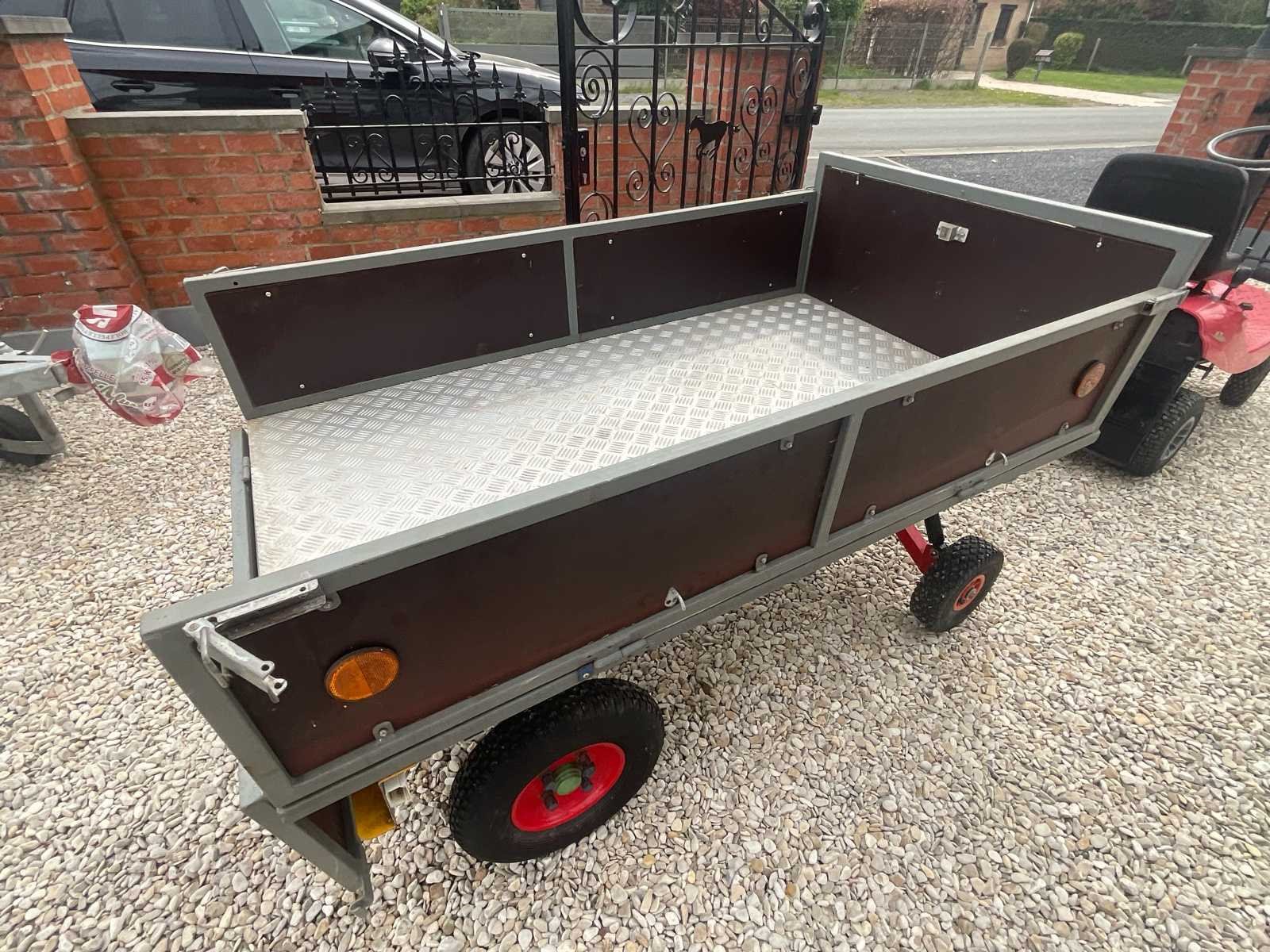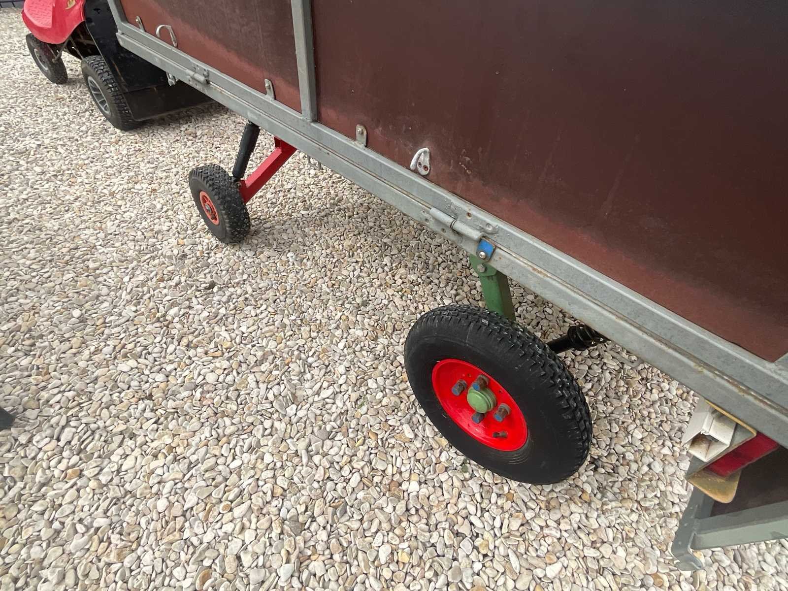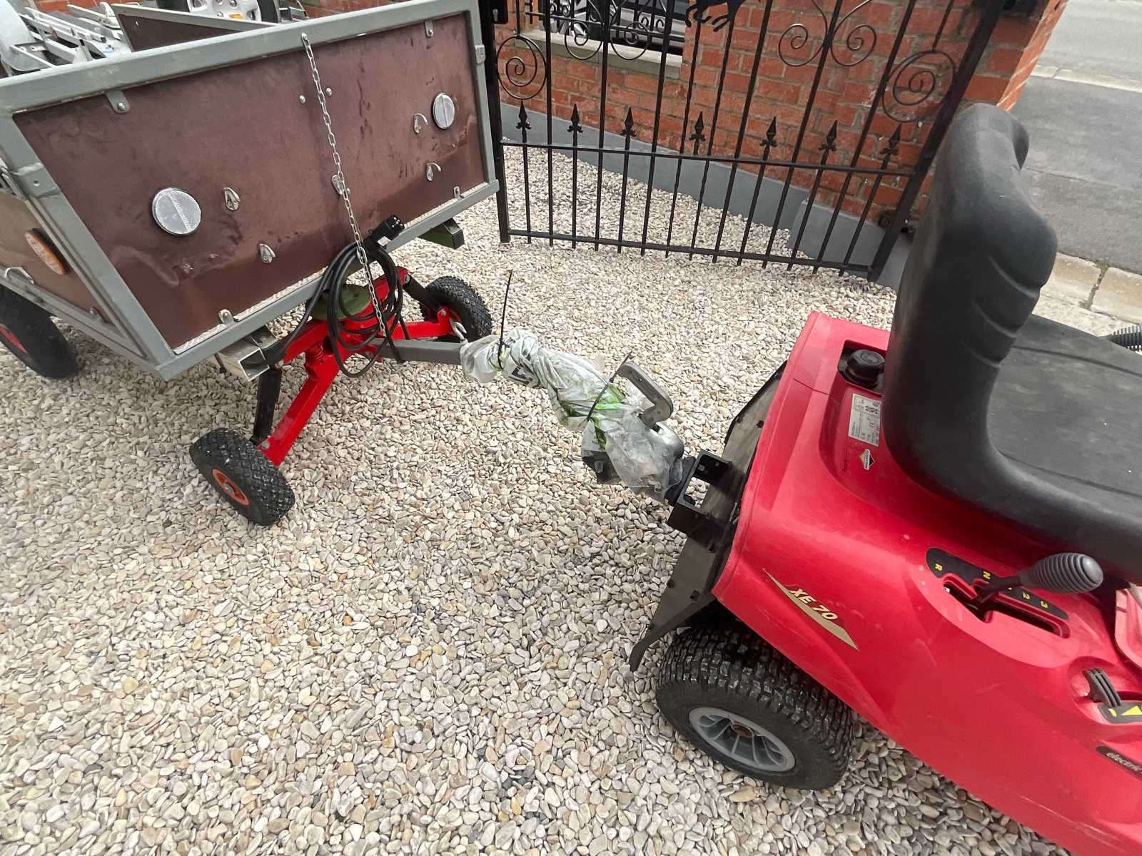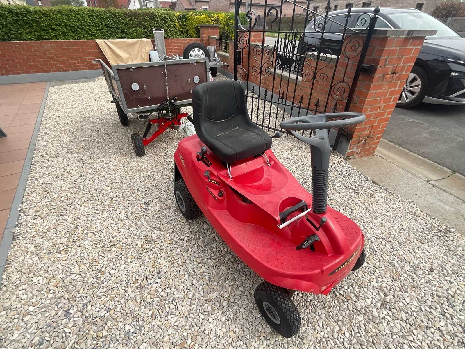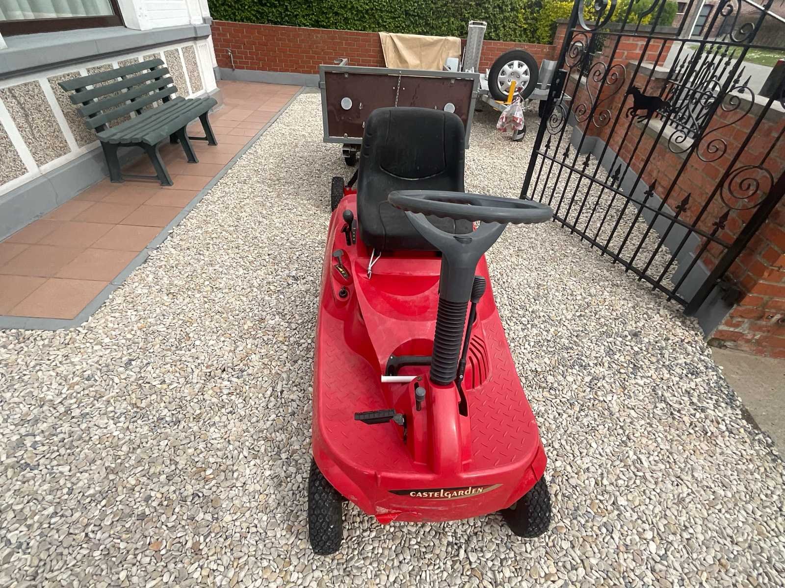 Castelgarden XE70 zitmaaier met aanhanger Castelgarden XE70 zitmaaier, uitgerust met een Briggs & Stratton-motor. Jaar: 2006 Vermogen: 11 kW Motormerk: Briggs & Stratton Mechanische transmissie Compact ontwerp geschikt voor gazononderhoud Grasverzamelaar niet aanwezig Algemene staat met tekenen van slijtage en gebruik (krassen, vuil). Opstart en werking niet getest. Verkocht met sleeptrailer: Metalen chassis Aluminium tray Vouwbare zijpanelen Wielen in goede staat Achterverlichting aanwezig Inclusief zeil. Belangrijke informatie: Verkoop zoals het is Geen garantie Er is geen technische inspectie uitgevoerd Plan voor een revisie vóór indienststelling Merk: Castelgarden Type: XE 70 Bouwjaar: 2006 Serienummer: 85877 Werkbreedte: 70cm Benzinemotor: true