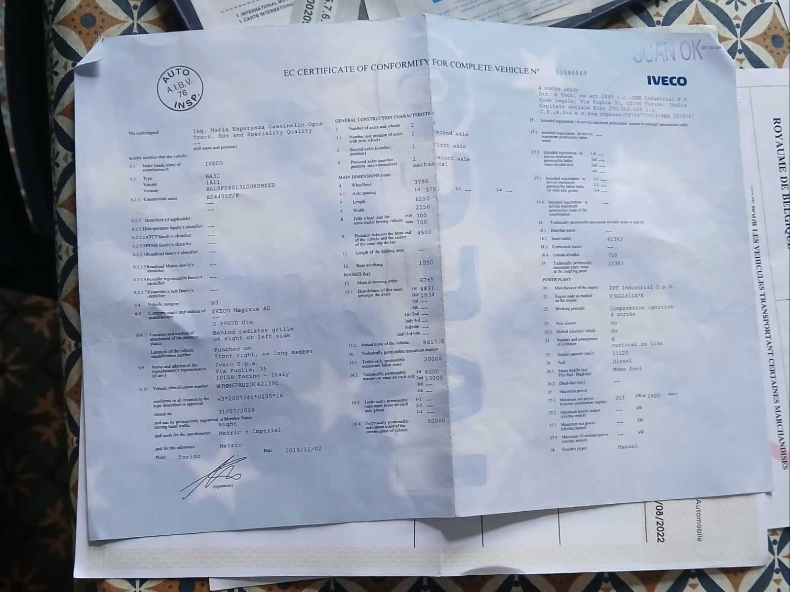 De Vrachtwagen start en rijdt enkele waarschuwingslampjes aan. Batterij dient gecontroleerd te worden. Hier en daar schades rondom, interieur wat vervuild. Merk: Iveco Type: Stralis AS440ST/P 4x2 Bouwjaar: 2019 Chassisnummer VIN: WJMM62AUZ0C421391 Cilinderinhoud: 11120cc Kilometerstand bij opname: 170000km Datum eerste toelating: 06/11/2019 Type transmissie: Automatisch Aantal assen: 2 Asconfiguratie: 4x2 Fuel Type: Diesel Emissieklasse: euro VI Slaapcabine: true Nationaliteit documenten: Belgisch Aantal zitplaatsen: 2