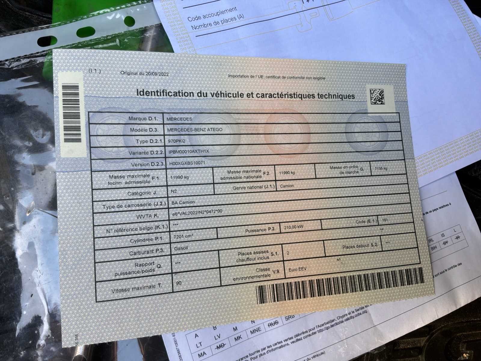 Merk: Mercedes Type: 940PK12 Bouwjaar: 2014 Chassisnummer VIN: WDB9702551L810447 Cilinderinhoud: 7201cc Datum eerste toelating: 20/01/2014 Aantal zitplaatsen: 2 Handgeschakelde versnellingsbak: true Diesel: true
