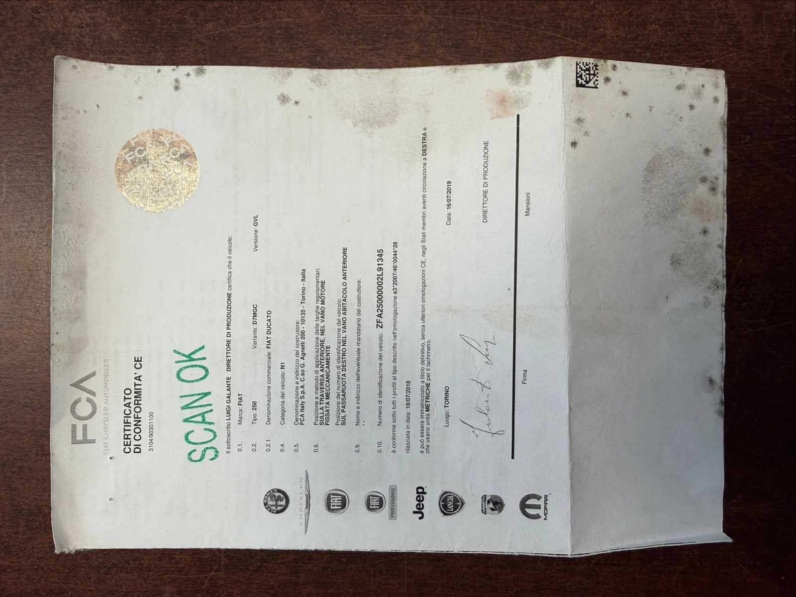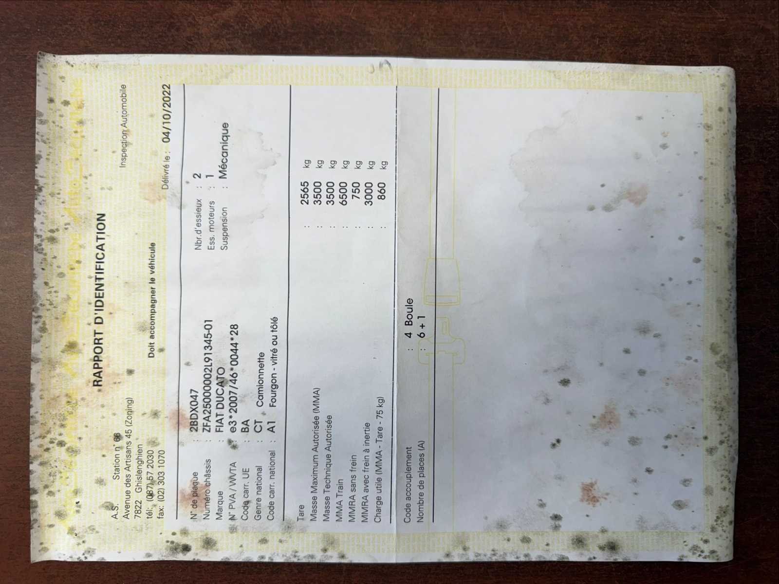 Merk: Fiat Type: 250 Model: Ducato Bouwjaar: 2019 Chassisnummer: 2FA25000002L91345 Afgelezen kilometerstand: 90000km Brandstof: Diesel Datum eerste inschrijving: 08/10/2019 APK vervaldatum: 14/10/25 Transmissie: Handboek Aantal zitplaatsen: 7 Kleur: Zwart Nationaliteit documenten: België Stuurwiel: Links Aantal deuren: 4 Aantal sleutels: 2 Emissieklasse: Euro 6b