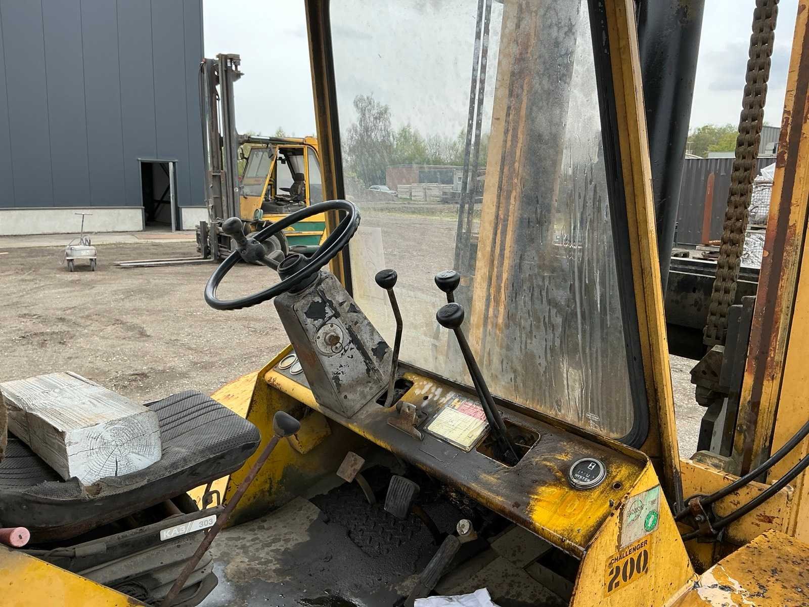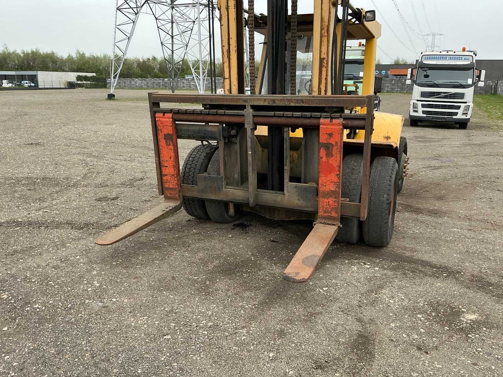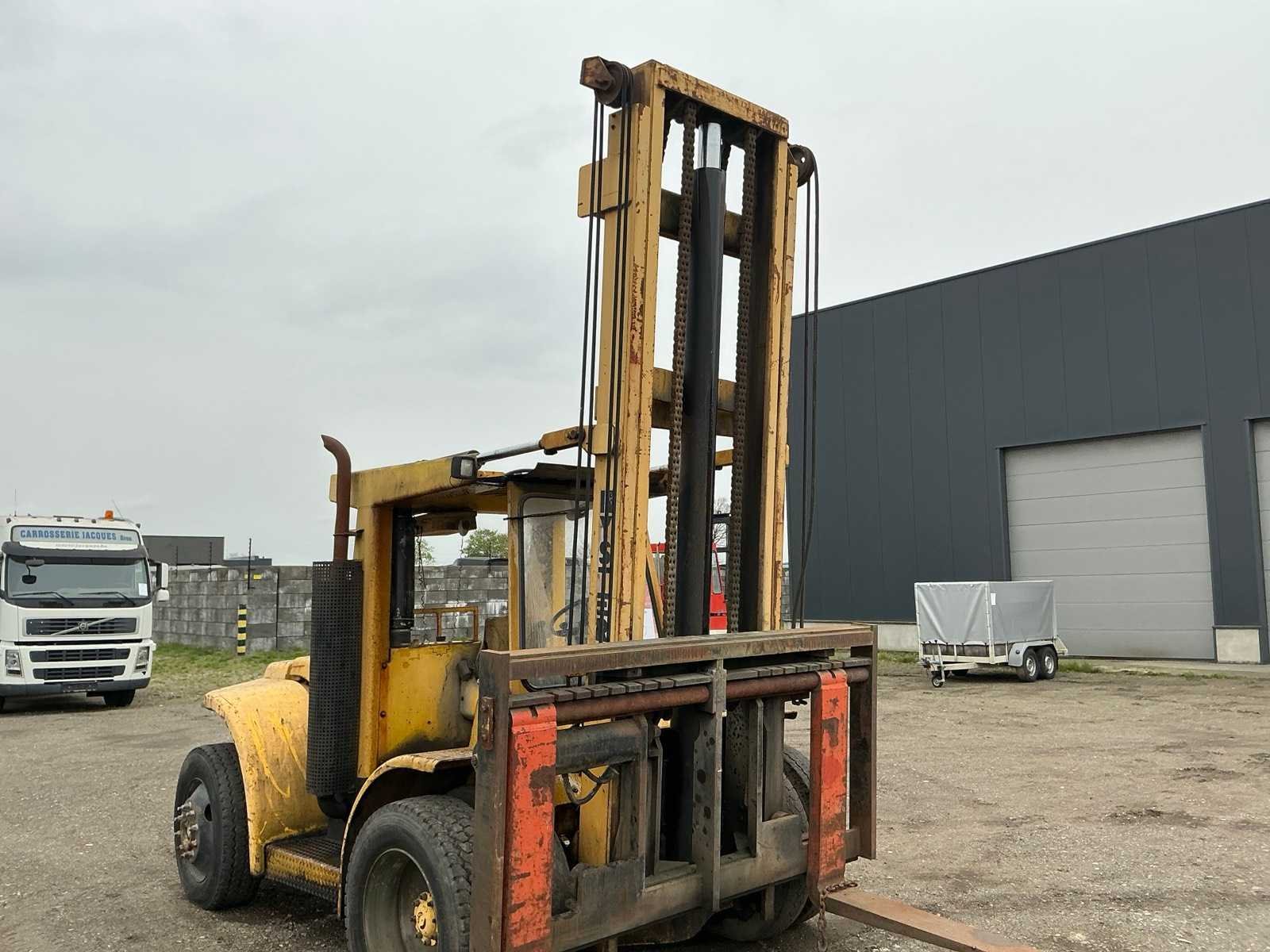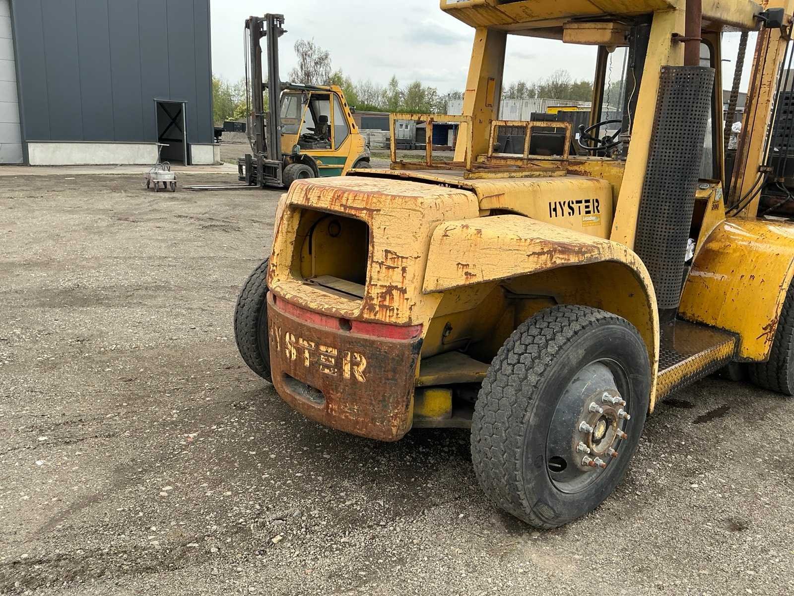 - olie lek cilinders. Merk: Hyster Type: H200HS Bouwjaar: 1979 Serienummer: C7A1622Z Brandstof: Diesel Duplex mast: true Eigen gewicht: 12075kg Hefvermogen: 8295kg Lepellengte: 1130mm Max. hefhoogte: 5400mm Minimale doorrijhoogte: 3920mm Totale afmeting Breedte: 2400mm Diesel: true