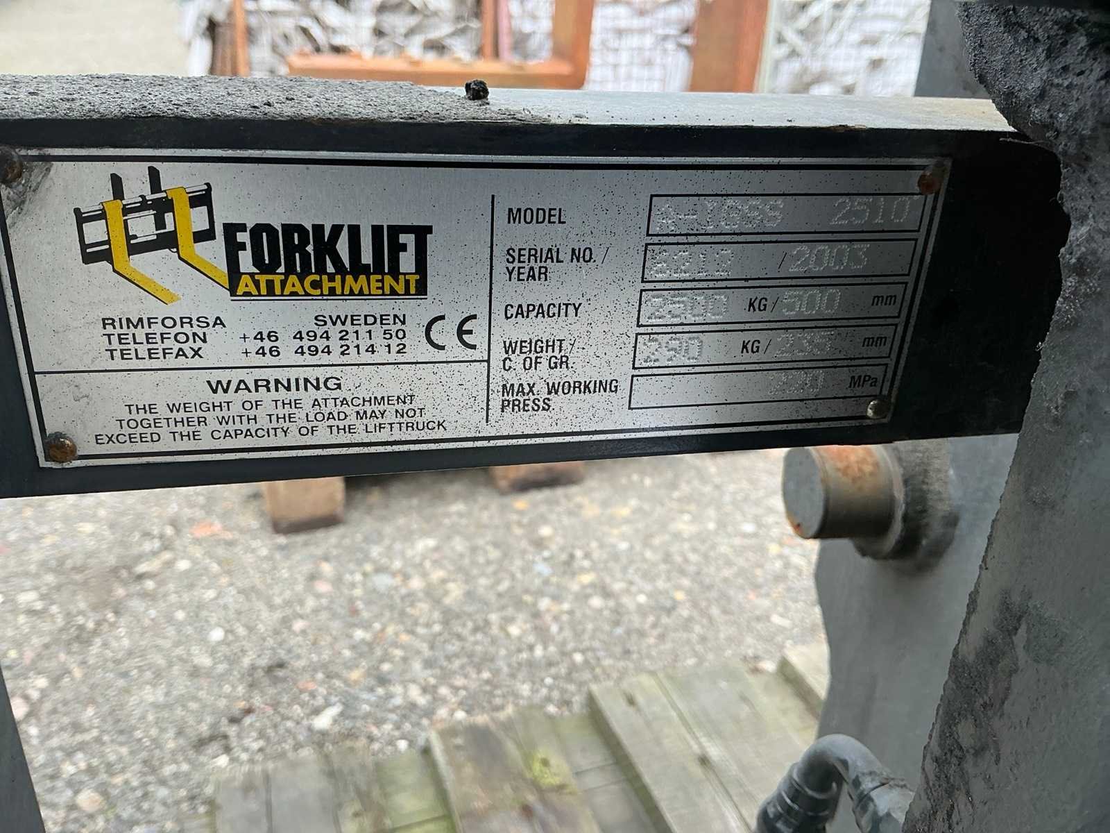 2003 forklift attachment a-igss 2510 vorkenbord