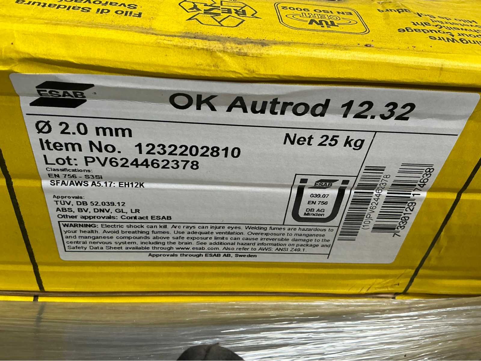 <Br> - Diameter: Ø 2.0 mm. - Gewicht: 25 kg per doos. Merk: Esab Type: OK Autrod 12.32