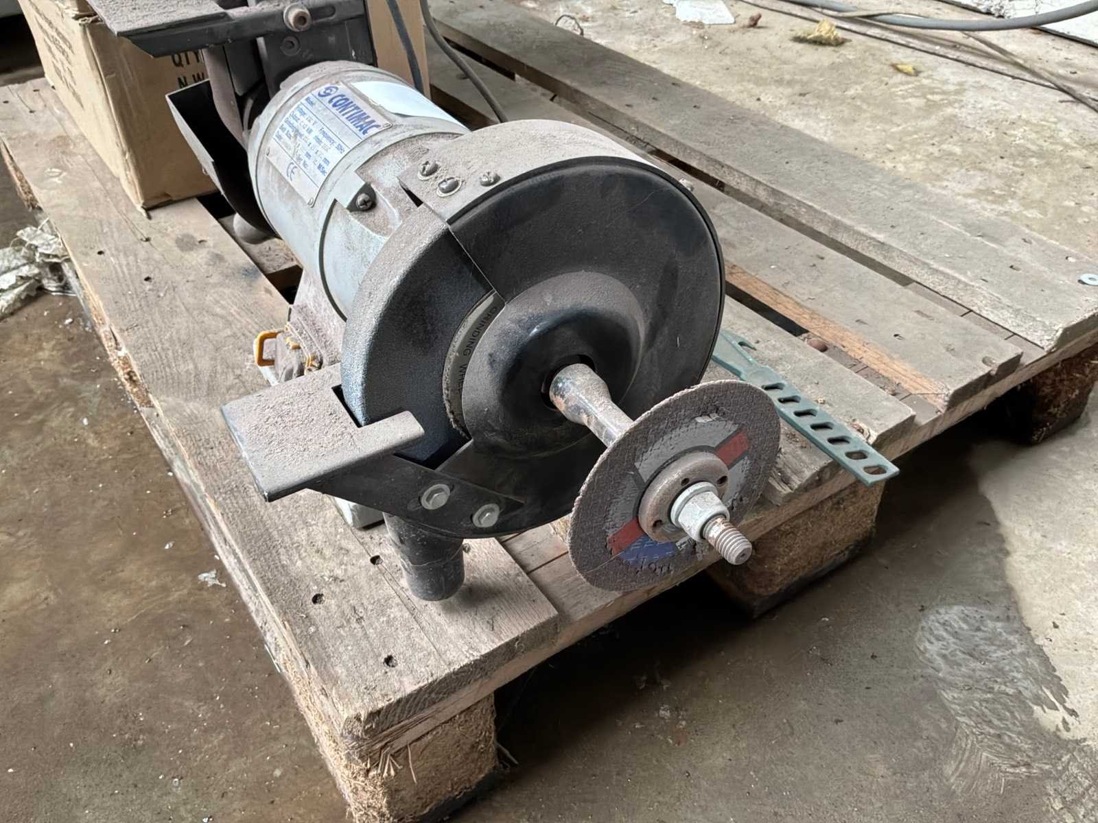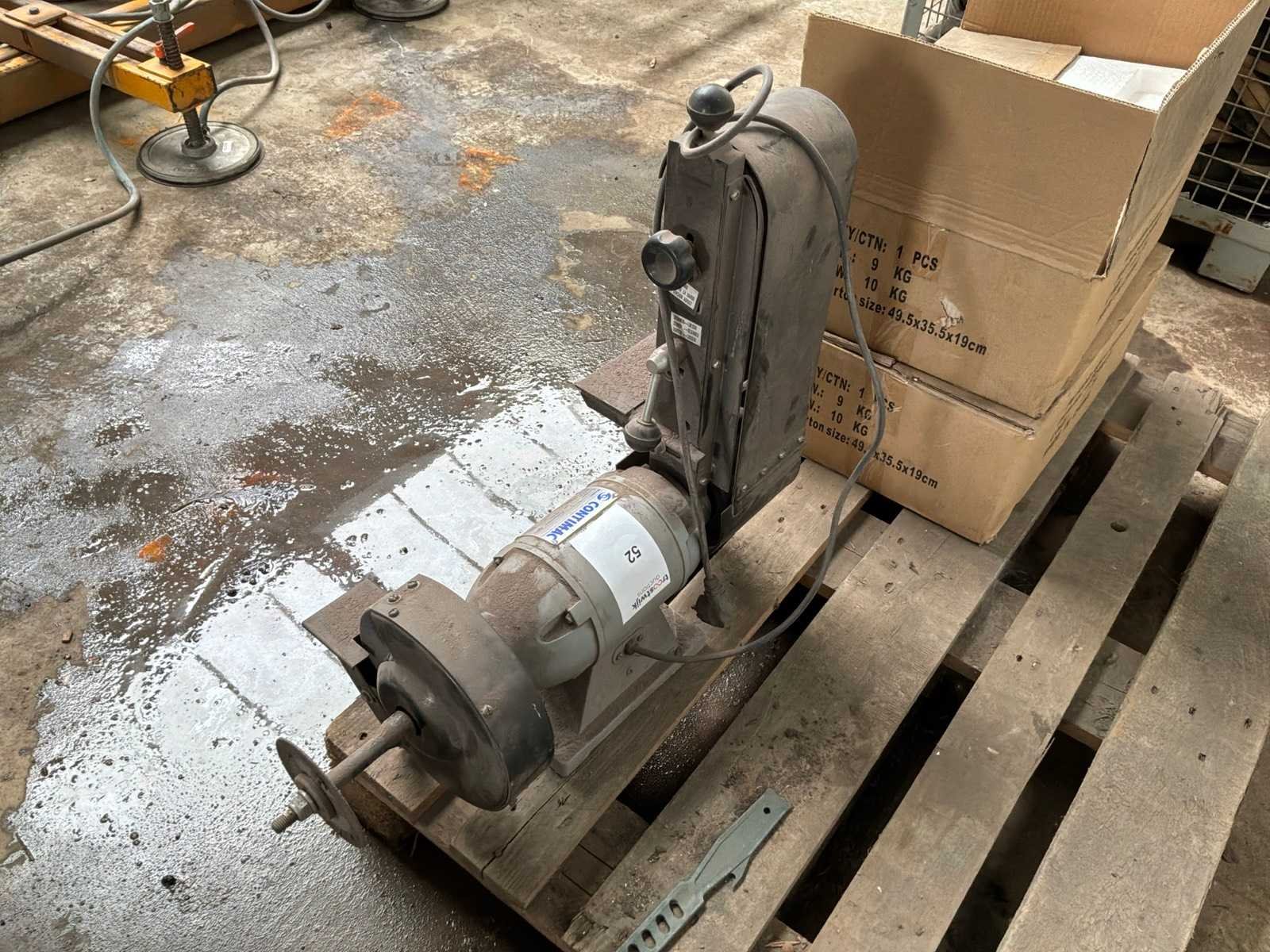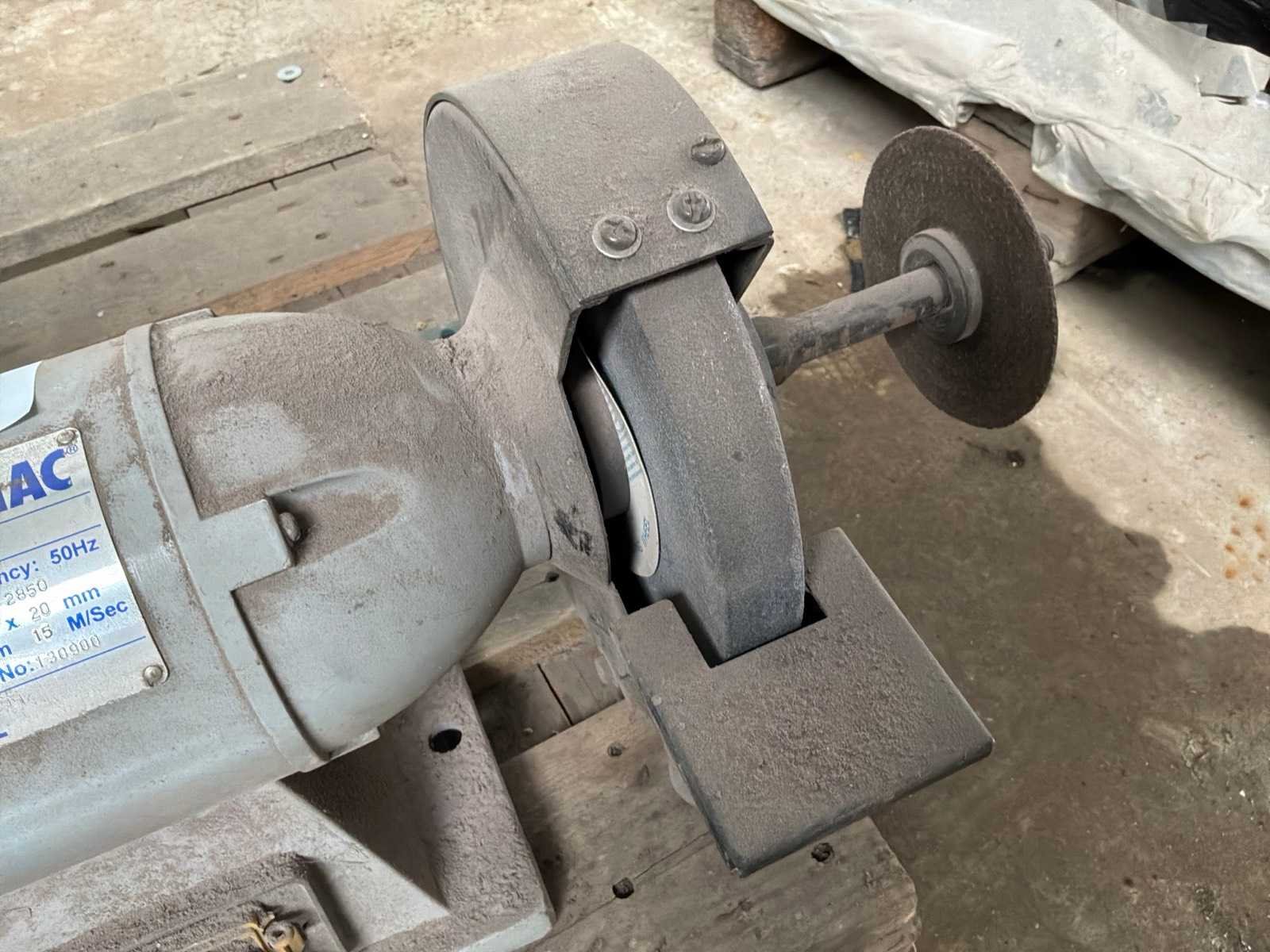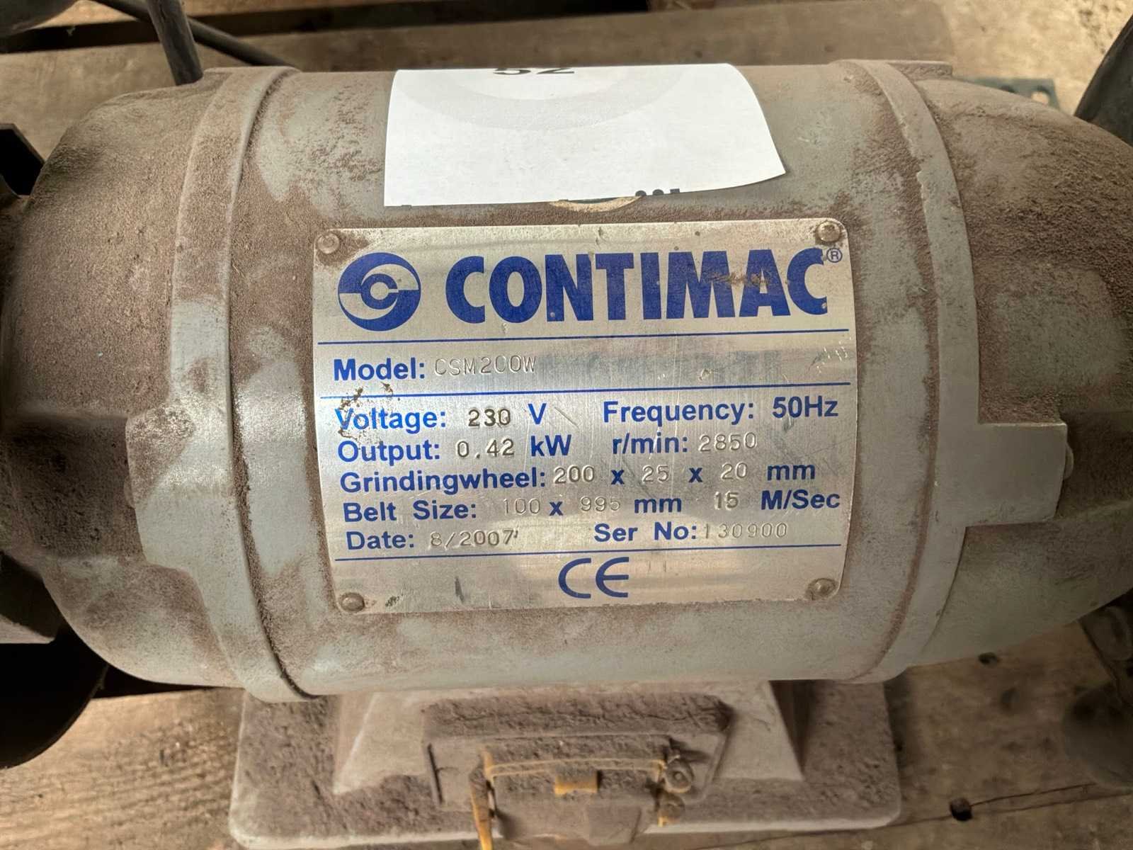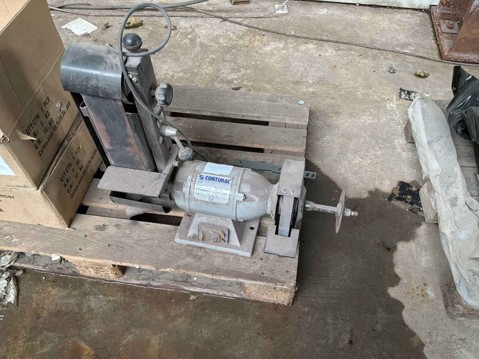 Merk: Contimac Type: CSM 200 W Serienummer: 130900 Slijpsteen dikte: 25mm Motorvermogen (kW): 0.42kW Aansluiting: 230V Afmeting b: 650mm Afmeting h: 600mm