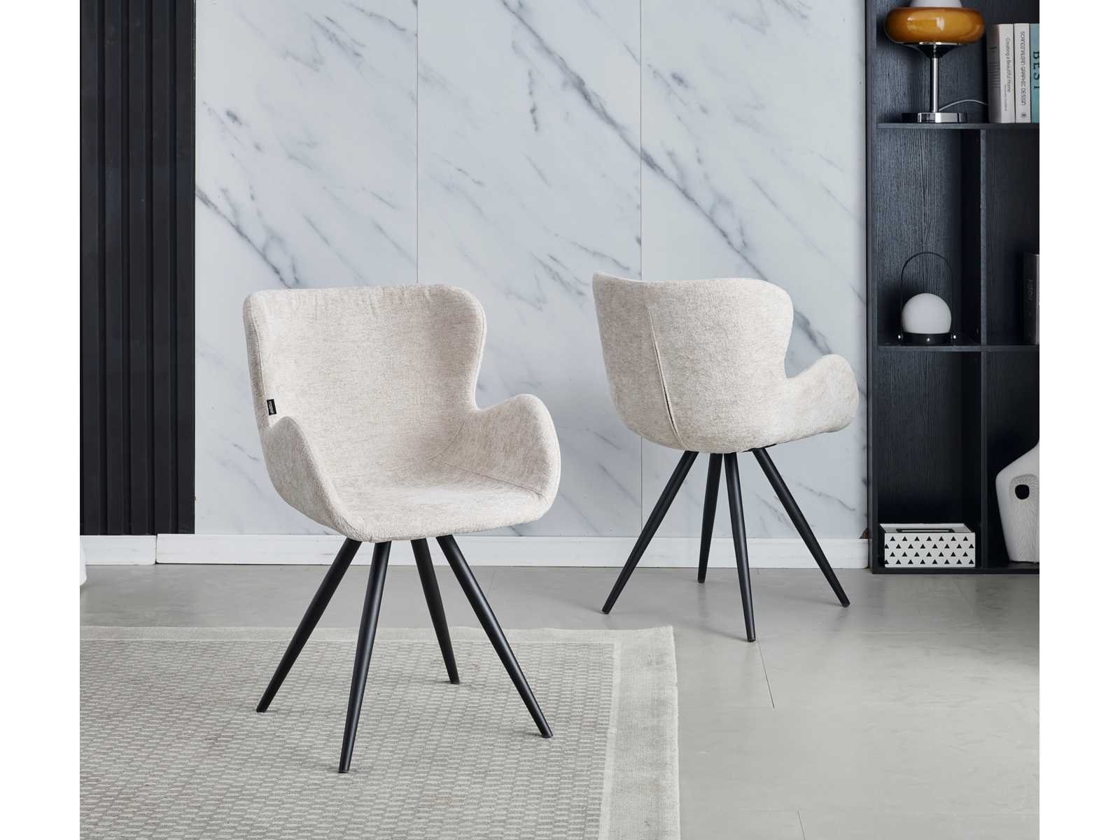 Anabella eetkamerstoel - set van 4 - beige - chenille stof - industrieel - met armleuning
