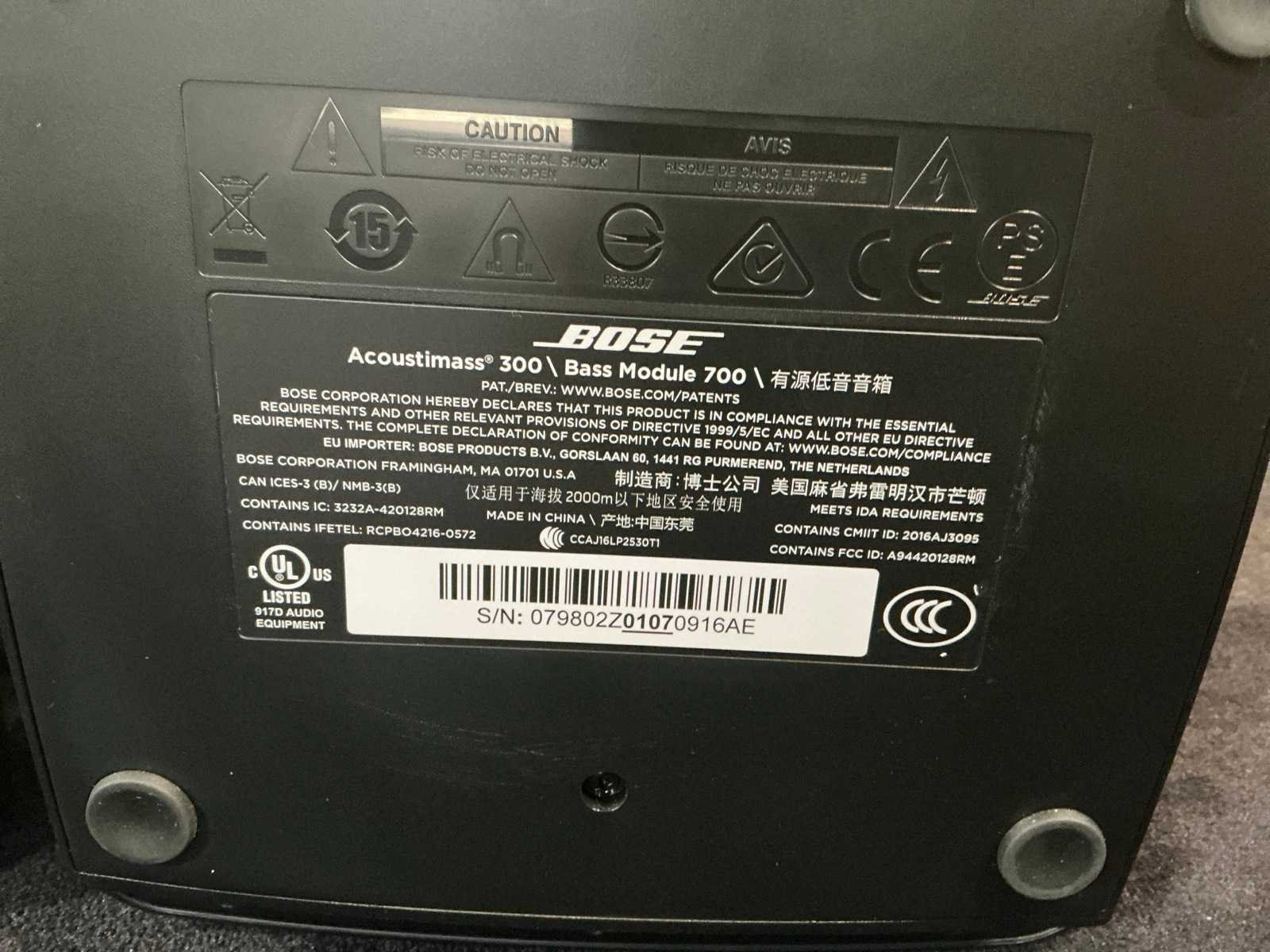 Bestaande uit acoustimass, lifestyle controle, en 4x speaker Merk: Bose