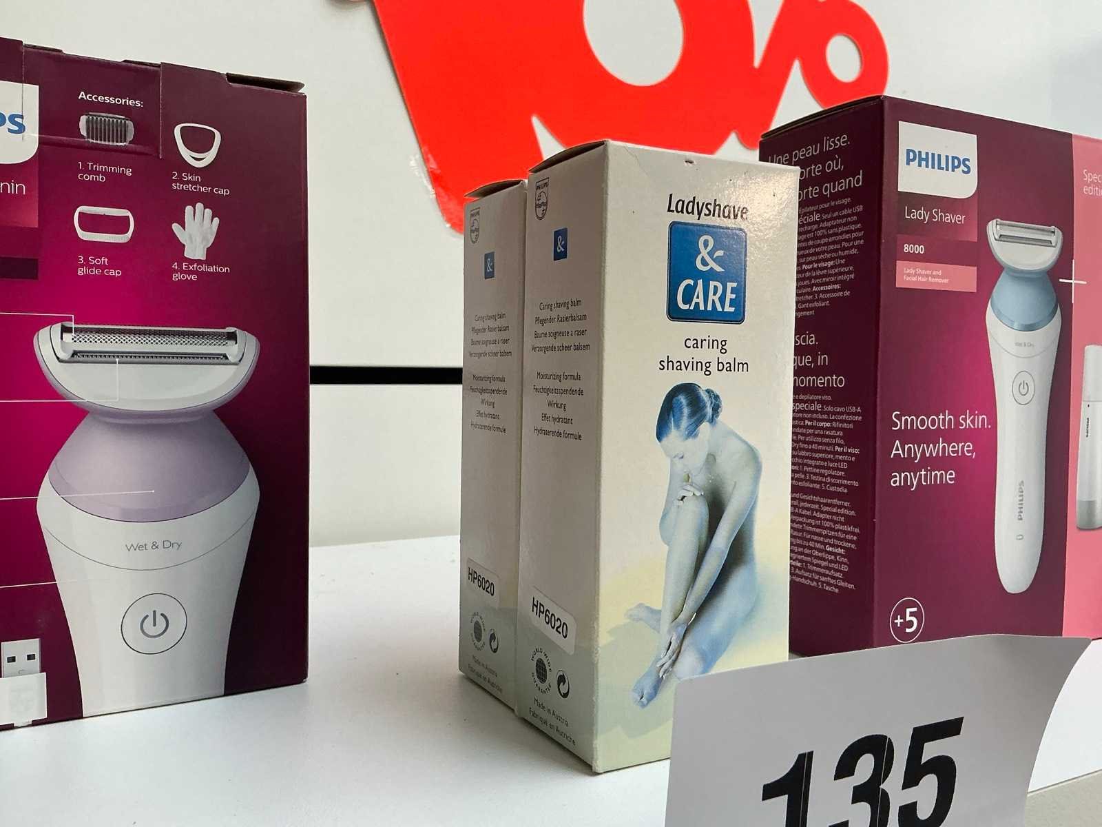 Bestaande uit 2x lady shaver PHILIPS waaronder type 6000 en 8000 compleet met 2x shaving balm