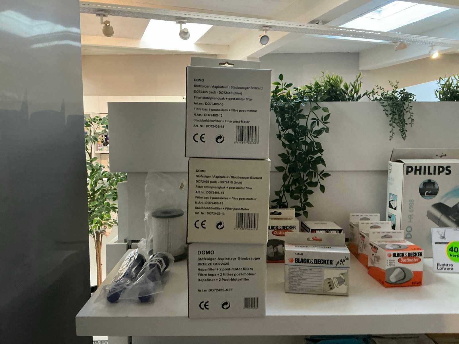 Waaronder NILFISK, WPRO, PHILIPS, DOMO, BLACK&DECKER,… bestaande uit diverse stofzakken, filters, diverse verleng en opzetstukken, enzovoort