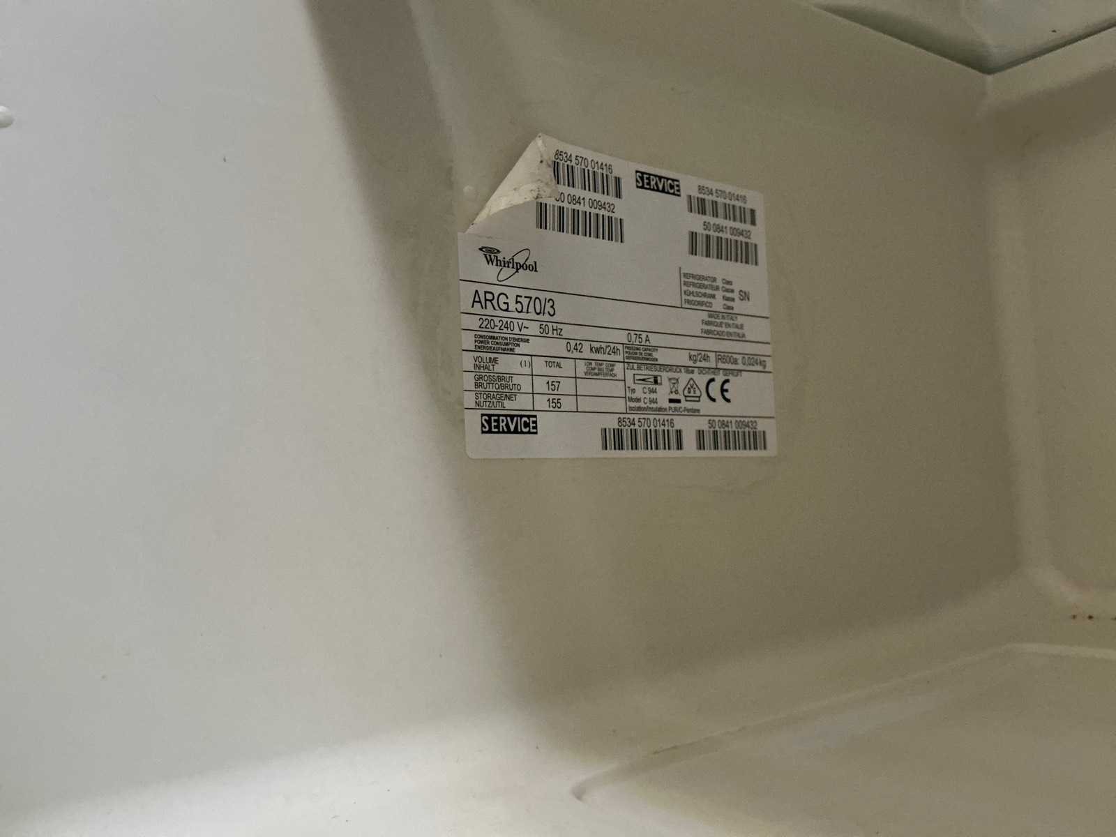 Merk: Whirlpool Model: ARG 570 Deur opent naar: Links Totaal netto inhoud: 155l