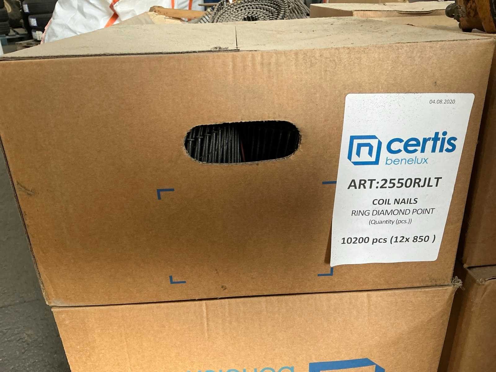 Compleet met circa 11 dozen elk inhoudende certis, Coil nails; ring diamont point, 12 x 850 pcs Merk: Bostitch Type: N58c-1